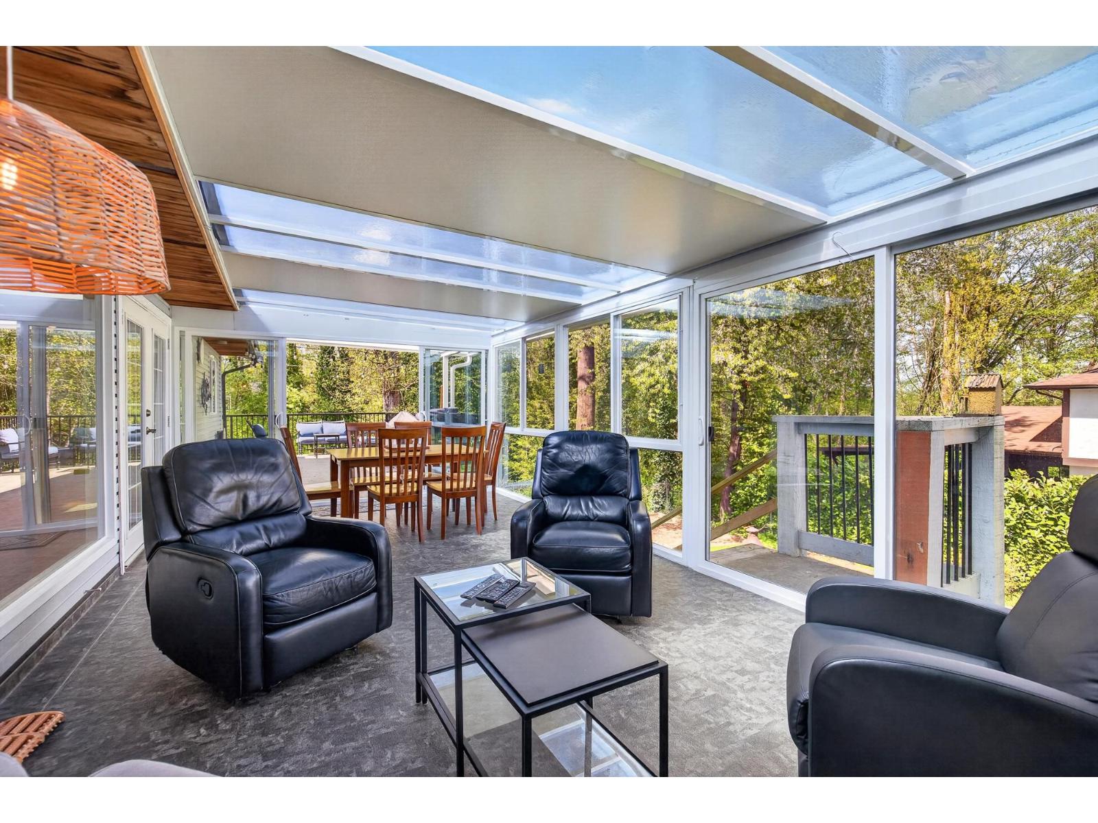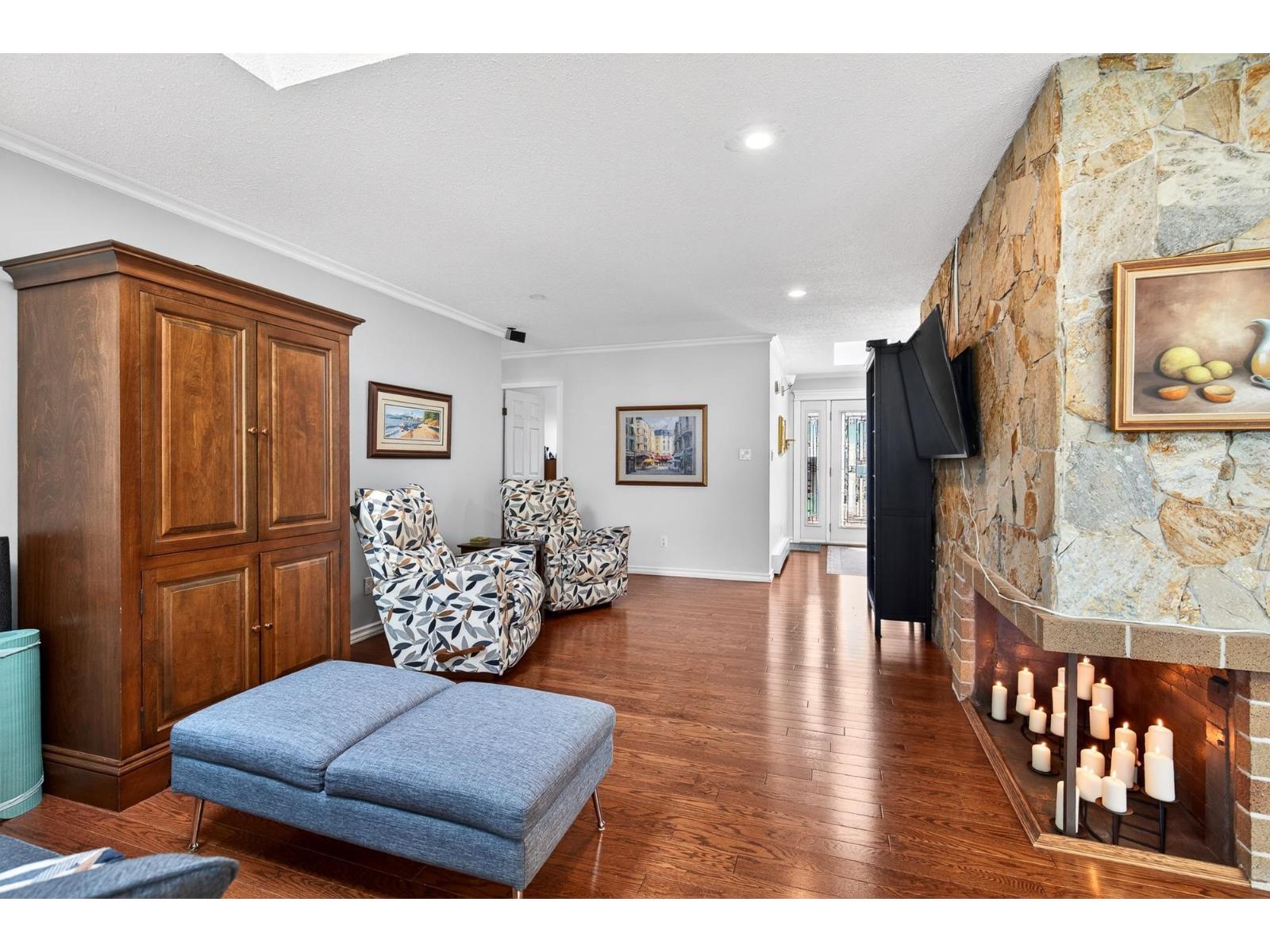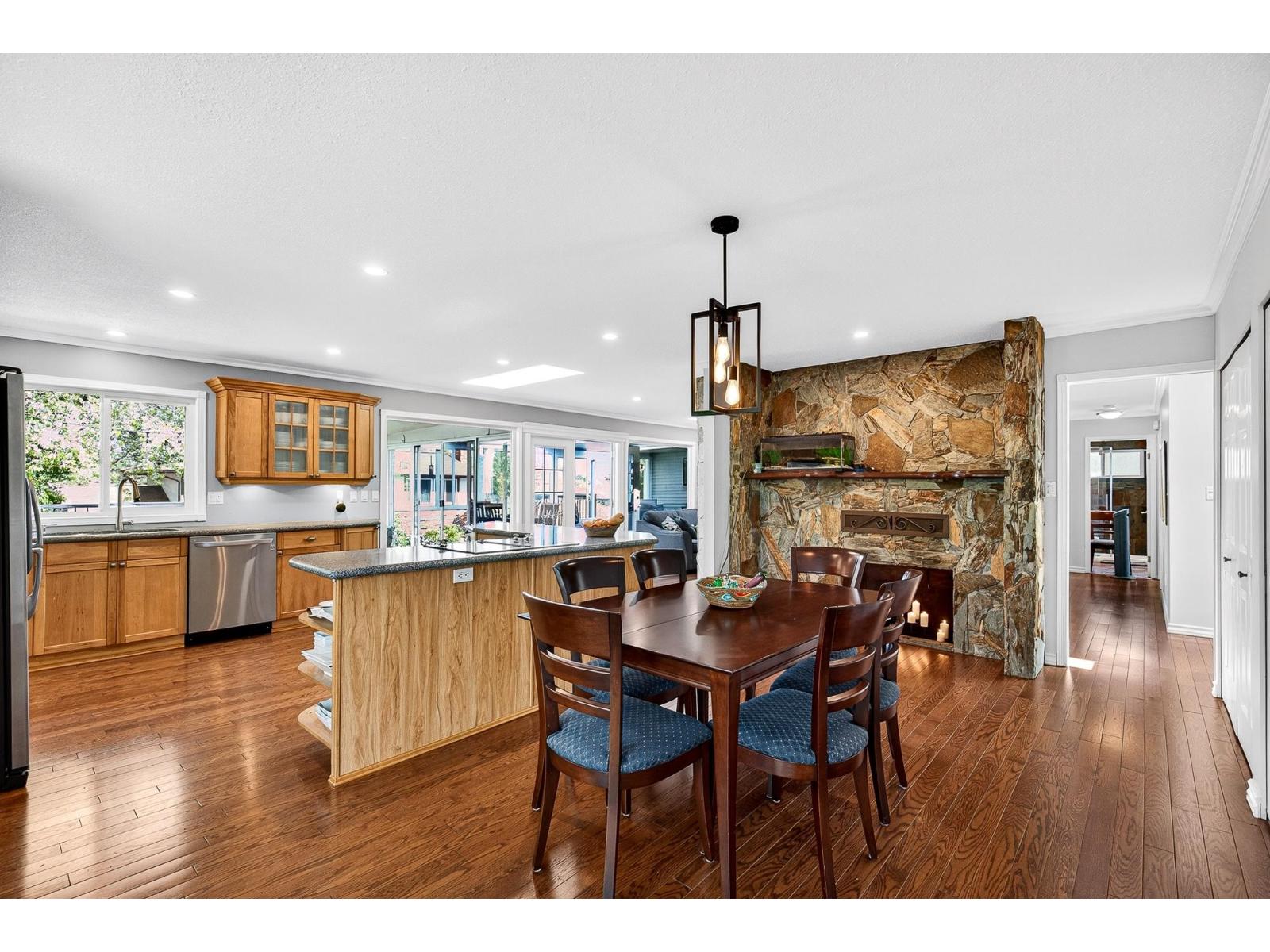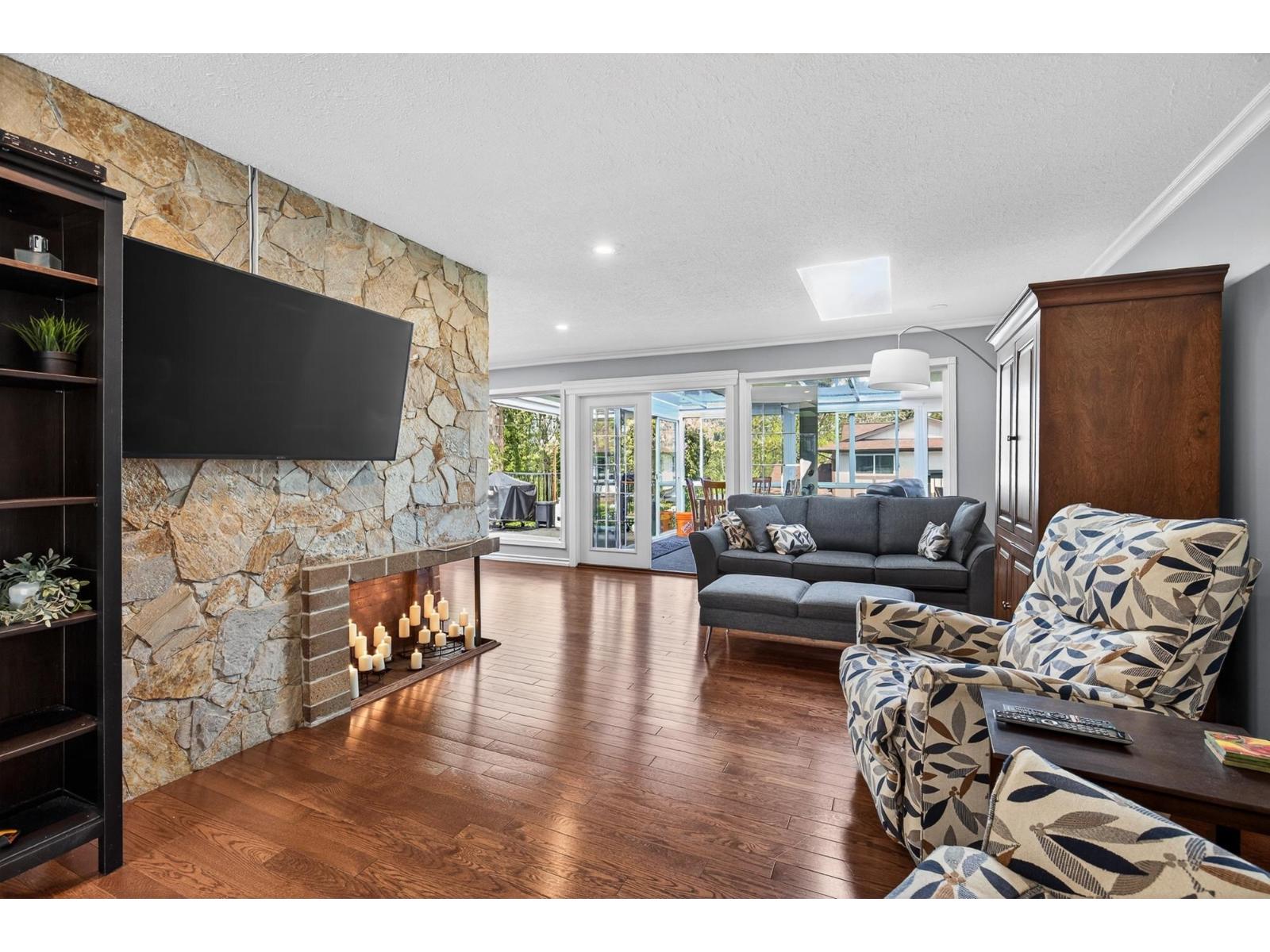 Beautiful rancher with a fully finished walkout basement offering over 3,200 sq ft of versatile living space, ideal for multigenerational living with a bright 1-bedroom suite featuring no-stair access. The main floor boasts an open-concept kitchen and great room with a striking double-sided fireplace, plus an enclosed sunroom and expansive deck for year-round use. The primary bedroom features a brand-new spa-inspired ensuite and custom closet, while downstairs also includes an additional bedroom, 2-piece bath, and storage for the main home. Upgrades include 200-amp service, two EV chargers, separate suite meter, $40K in new solar panels for low utility costs, tankless hot water, and hot water heating. Plenty of parking with room for an RV, siding onto a bird sanctuary for added privacy. **Public Open House April 25 2:00 - 4:00 PM** (id:52823)