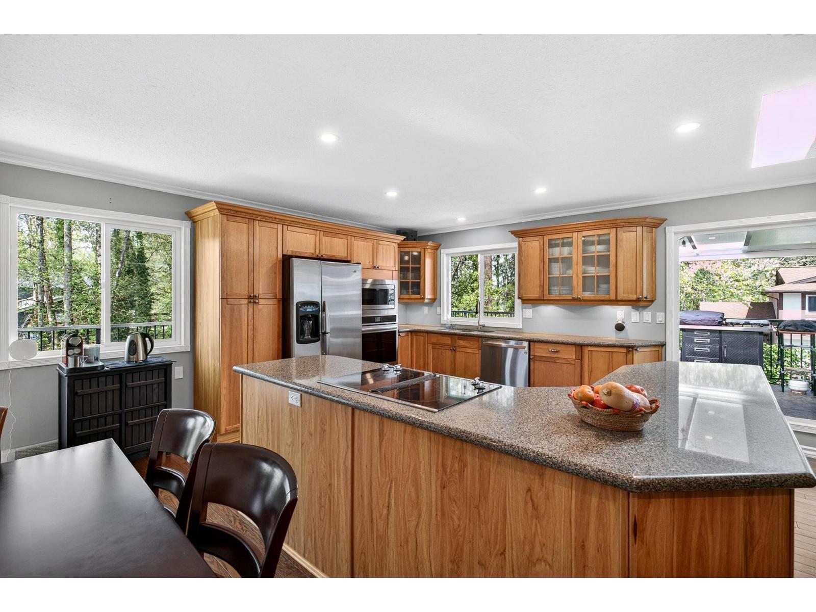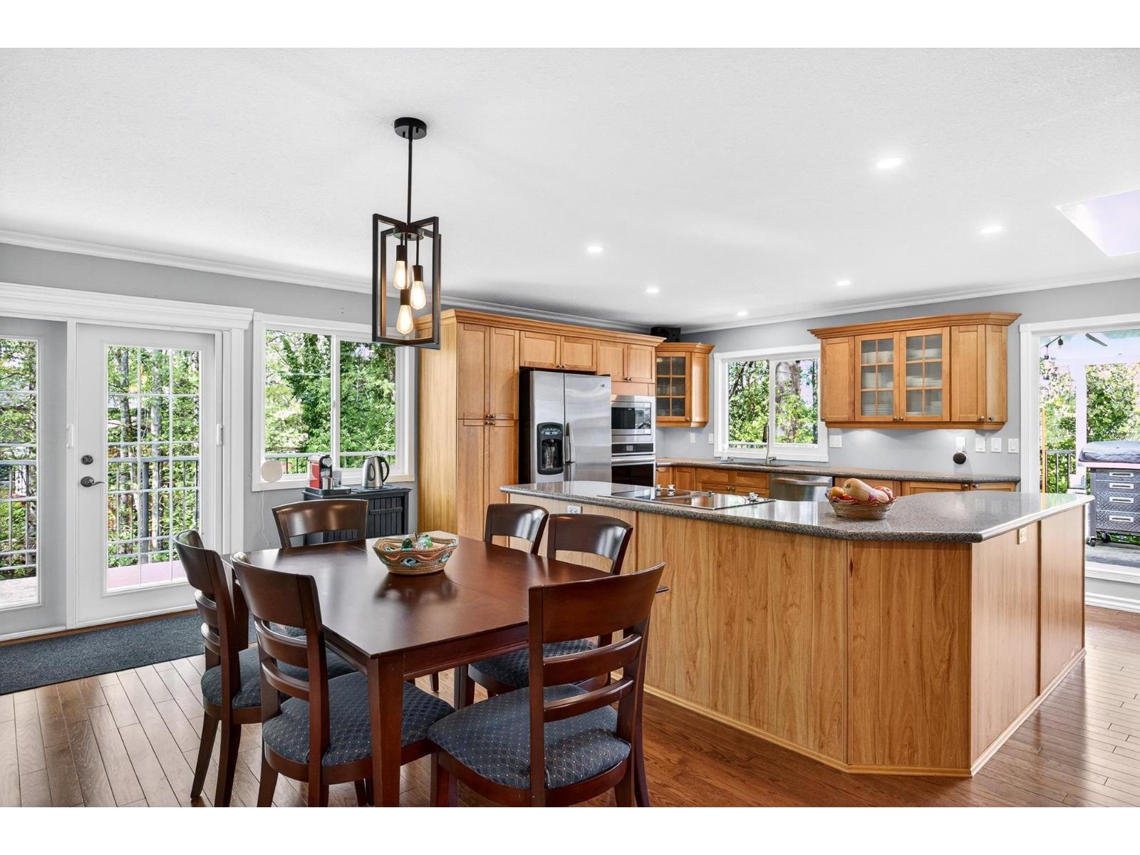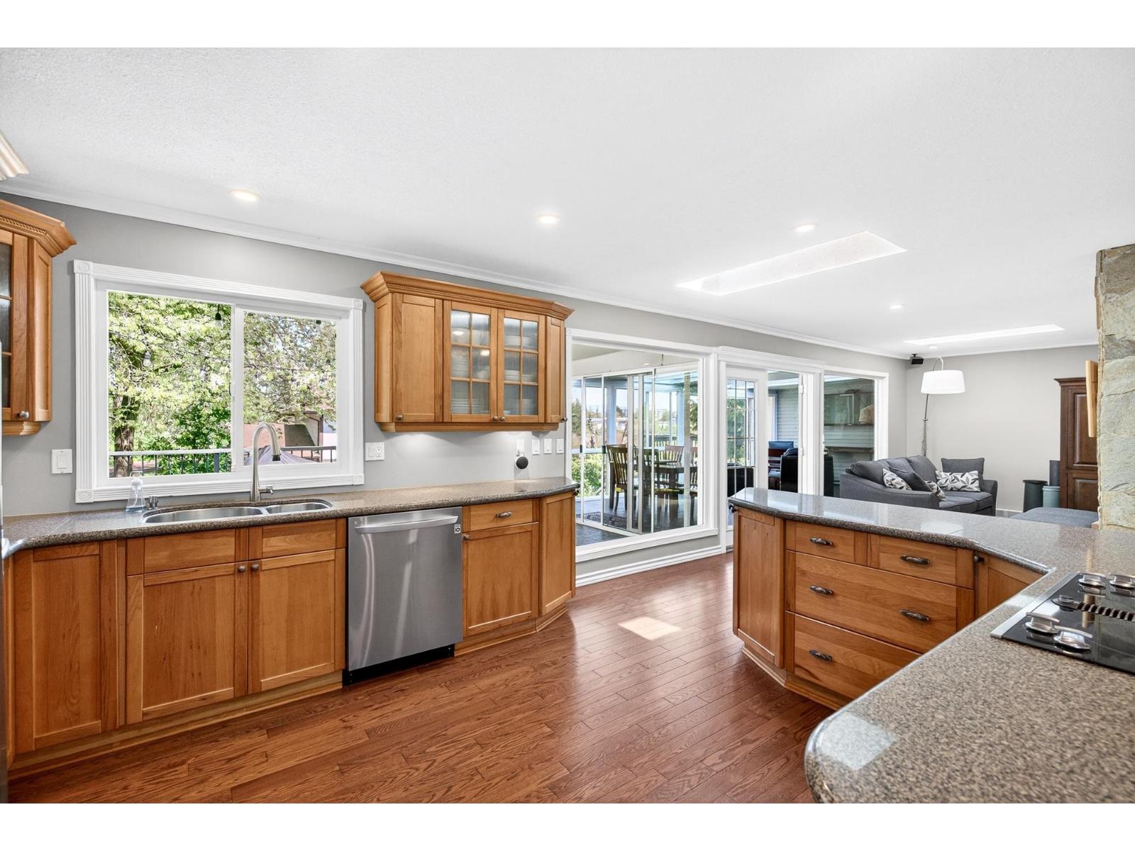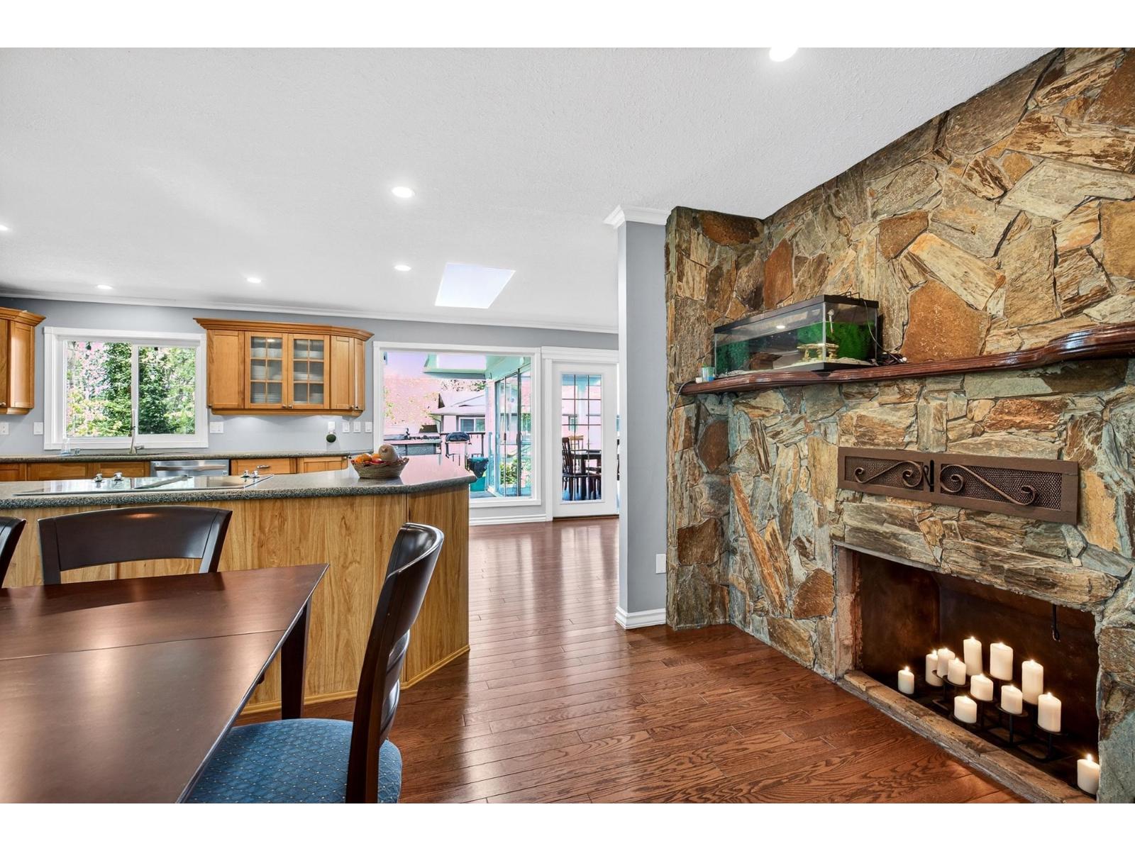 Beautiful rancher with a fully finished walkout basement offering over 3,200 sq ft of versatile living space, ideal for multigenerational living with a bright 1-bedroom suite featuring no-stair access. The main floor boasts an open-concept kitchen and great room with a striking double-sided fireplace, plus an enclosed sunroom and expansive deck for year-round use. The primary bedroom features a brand-new spa-inspired ensuite and custom closet, while downstairs also includes an additional bedroom, 2-piece bath, and storage for the main home. Upgrades include 200-amp service, two EV chargers, separate suite meter, $40K in new solar panels for low utility costs, tankless hot water, and hot water heating. Plenty of parking with room for an RV, siding onto a bird sanctuary for added privacy. **Public Open House April 25 2:00 - 4:00 PM** (id:52823)