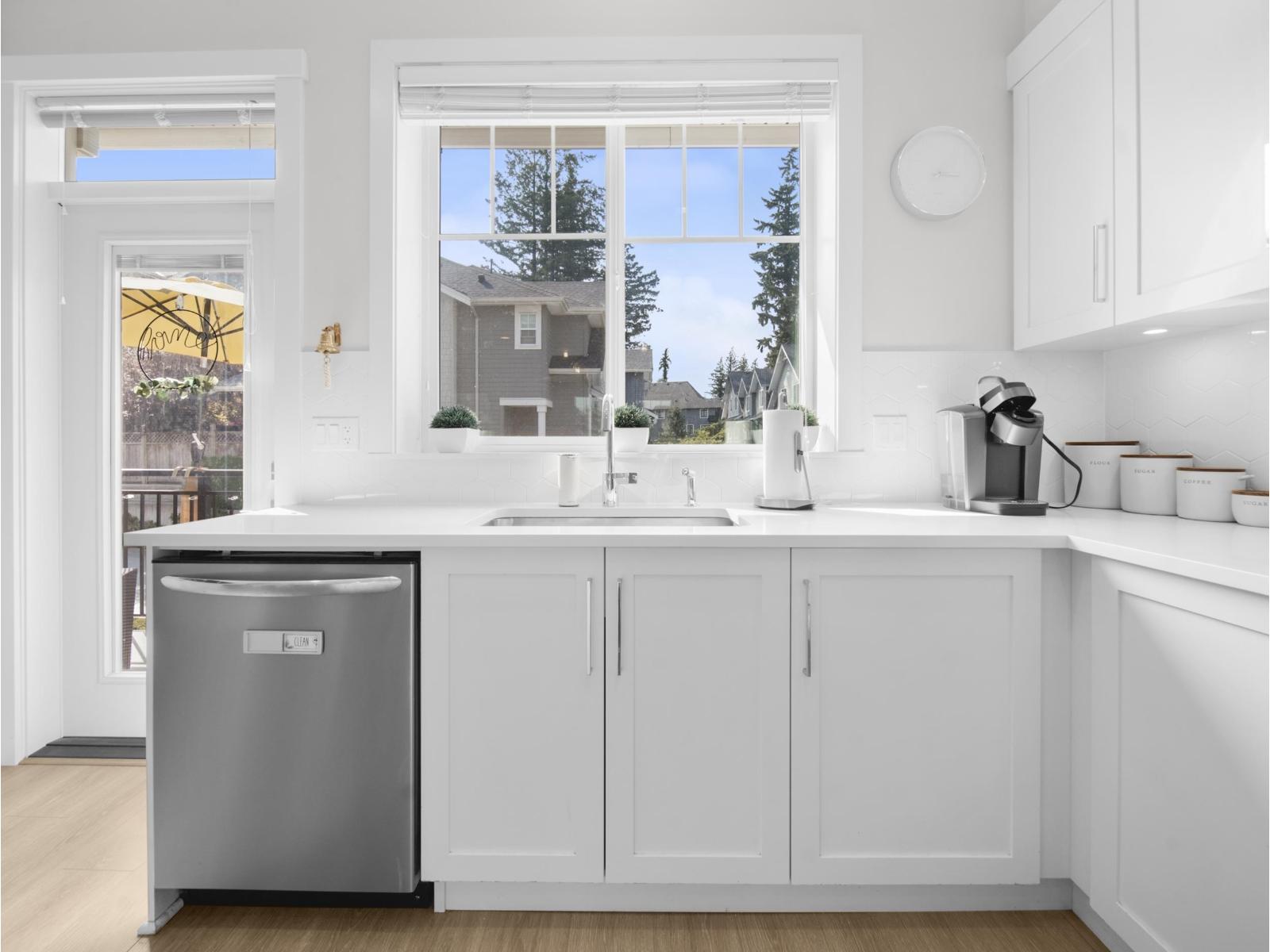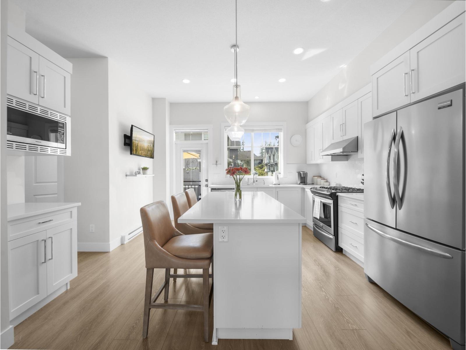 $413 MonthlyOLIVER by Woodbridge Properties - a boutique, low-density community in the heart of Grandview. This 3 bed + rec room (easily a 4th bdrm), 4 bath townhome offers nearly 1,900 sq. ft. of bright, functional living space. Main floor features 10' ceilings, oversized windows, feature wall, and a chef's kitchen with quartz island, gas range, s/s appliances, pantry, and balcony with gas BBQ hook-up right off the kitchen. Upstairs: 3 spacious bedrooms incl. primary retreat with vaulted ceilings, walk-in closet, and spa-like ensuite with double sinks and oversized walk-in shower. Lower level rec room has full bath with tub and walk-out to private fenced yard. Double side-by-side extra insulated garage fits 2 cars inside + 2 on the driveway. Watch your kids walk to Sunnyside from your living room! (id:52823)