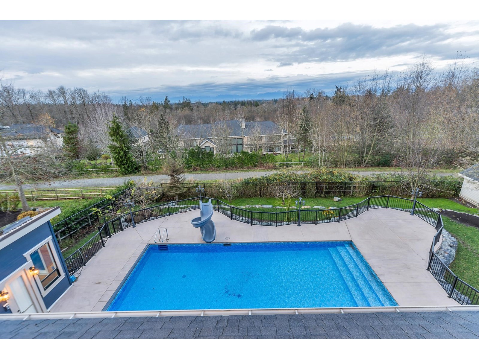 Custom-built 6 bed, 8 bath, 7,395 sqft, High Point Home! Chef's kitchen enjoys high-end SS appliances, large island + coffee bar. Double accordion doors slide open from great room & kitchen to the upper covered balcony w gas fp. 4 beds up including primary with it's own gas fp sitting area, spa style ensuite, walk-in closet and private balcony w valley + mountain views. Great recroom, 2 open office spaces, + gym above 3rd and 4th garage. Walk-out basement w large rec room with wet bar, theatre room + beautifully finished 2 bed unauthorized suite. $500k invested into the dream backyard with 20' x 40' pool, custom outdoor kitchen w Napoleon grill, dual refrigerators, premiere metal awning system, Dreamcast FP, rock wall, lighting + irrigation! New instant HW boiler + Geothermal heating! (id:52823)