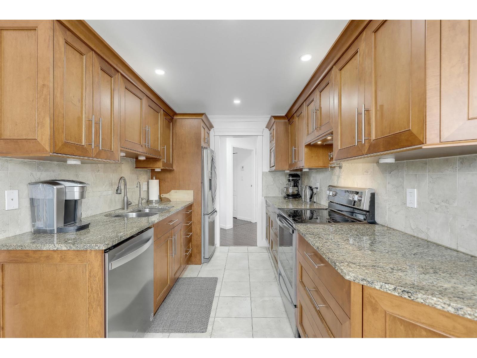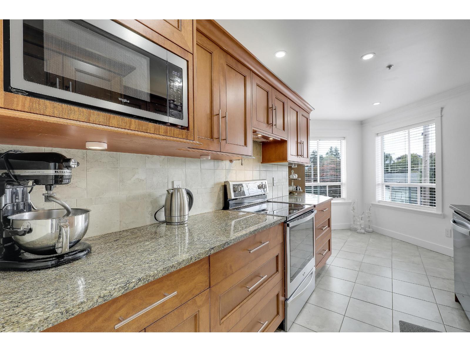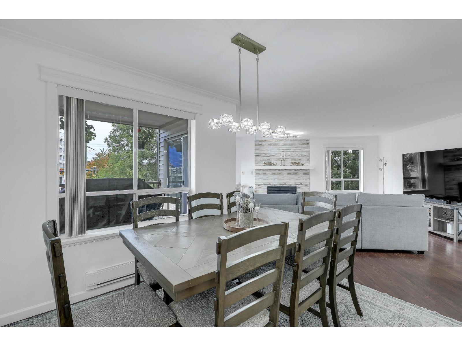 $546 MonthlyMontgomery Gate is offering one of the largest 2-bedroom, 2-bathroom units you'll find on the market for sale now. This property features an excellent floor plan and a convenient location, just an 8-minute walk from the upcoming Skytrain Station. Shopping, trails, parks, schools, a hospital, and a community center are all close by.The newer kitchen includes custom cabinets, granite counters, heated tile flooring, a filtered water system, and a hot water pot filler. Top-grade flooring runs throughout the unit, and both bedrooms have custom store-more closets. Both bathrooms are completely updated as well.Enjoy air conditioning for those hot summer nights and a cozy gas fireplace included in the strata fee for the winter months. There is also an extra soundproofing barrier for privacy. (id:52823)