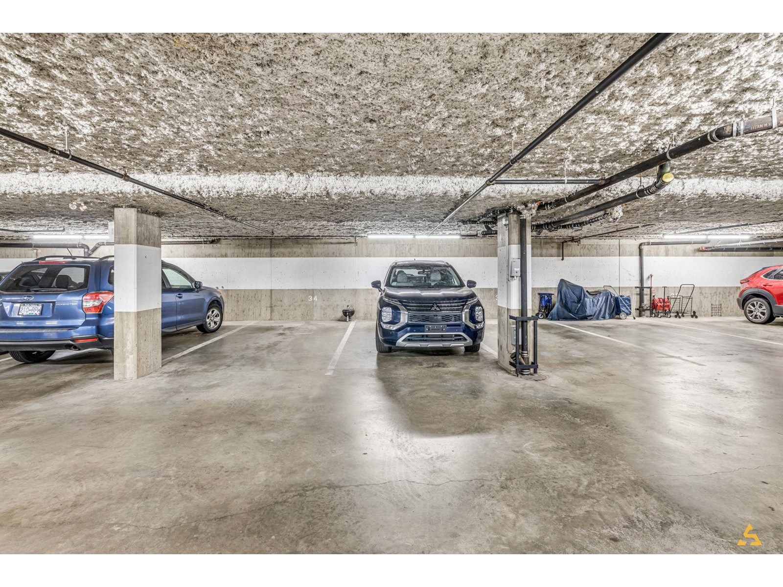 $508 MonthlyBright CORNER unit with over 1,100 sqft of living space. Offers 2 bdrms & 2 baths - bdrms are separated for privacy & both feature walk-in closets. Spacious primary w/full ensuite and soaker tub. Kitchen with eating area opens to dining & living room with gas fireplace. In-suite laundry with storage plus large same-floor storage locker. Large wraparound covered balcony with park views. Secured underground parking with 2 stalls. Complex includes workshop & amenity room. Gas and hot water included in strata fees. Walk to everything! Call today! (id:52823)