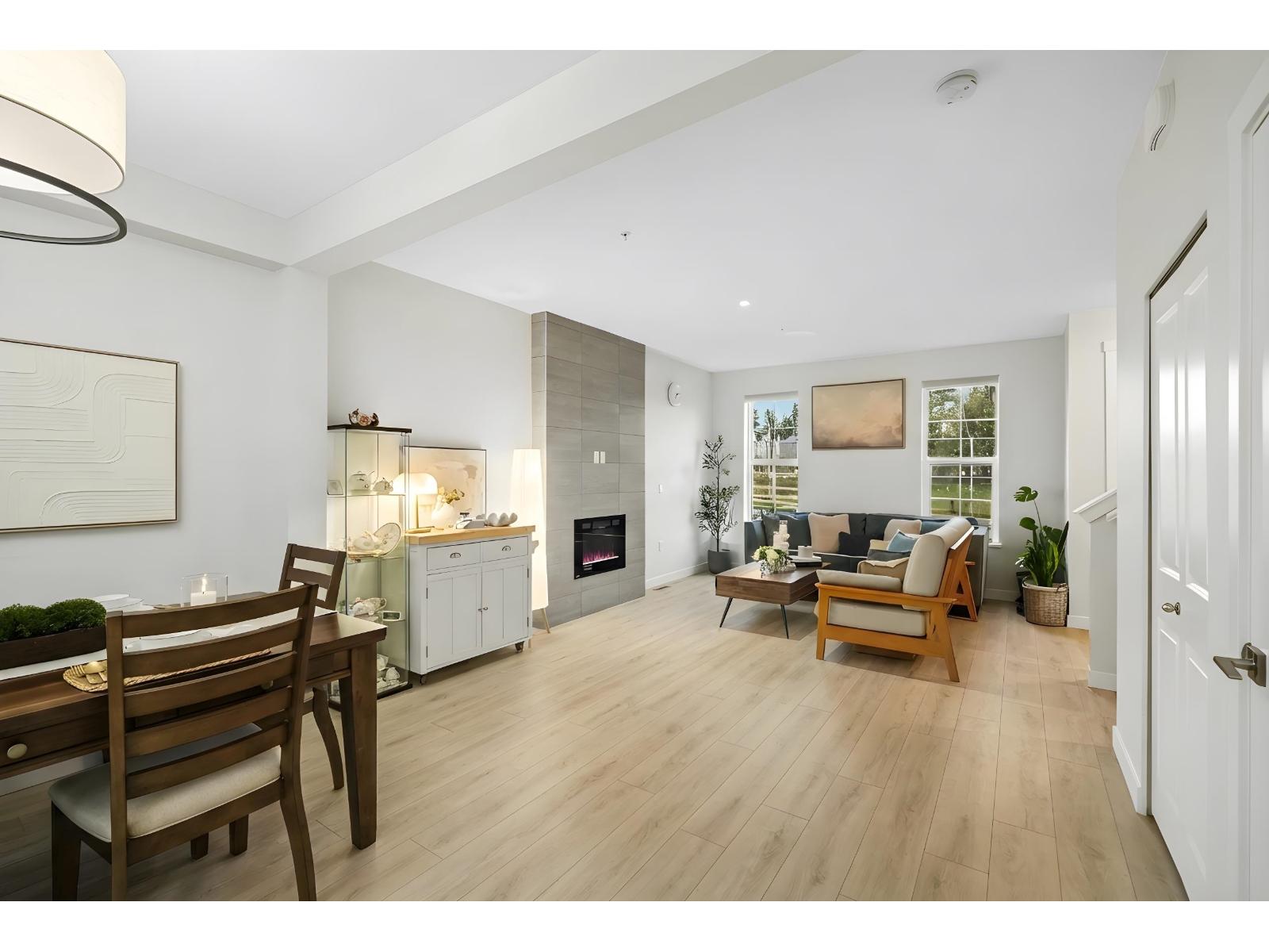 CENTRAL LOCATION! NON-STRATA ROWHOME in the heart of Willoughby by award-winning Latimer. This well-maintained family home boasts park views, a sun-filled south-facing porch, and excellent privacy with generous rear setback. Featuring a functional layout with 4 bedrooms, 3.5 bathrooms, and a fully finished basement, the home includes an open-concept main floor with a chef-inspired kitchen, stainless steel appliances, and oversized windows for abundant natural light. The lower level provides a spacious recreation area, while the private patio and generous garden offer ideal outdoor living and gardening space. Located in a quiet, friendly community close to top schools, Langley Events Centre, Carvolth Exchange, Highway 1, parks, and transit. Detached garage with extra parking pad. (id:52823)