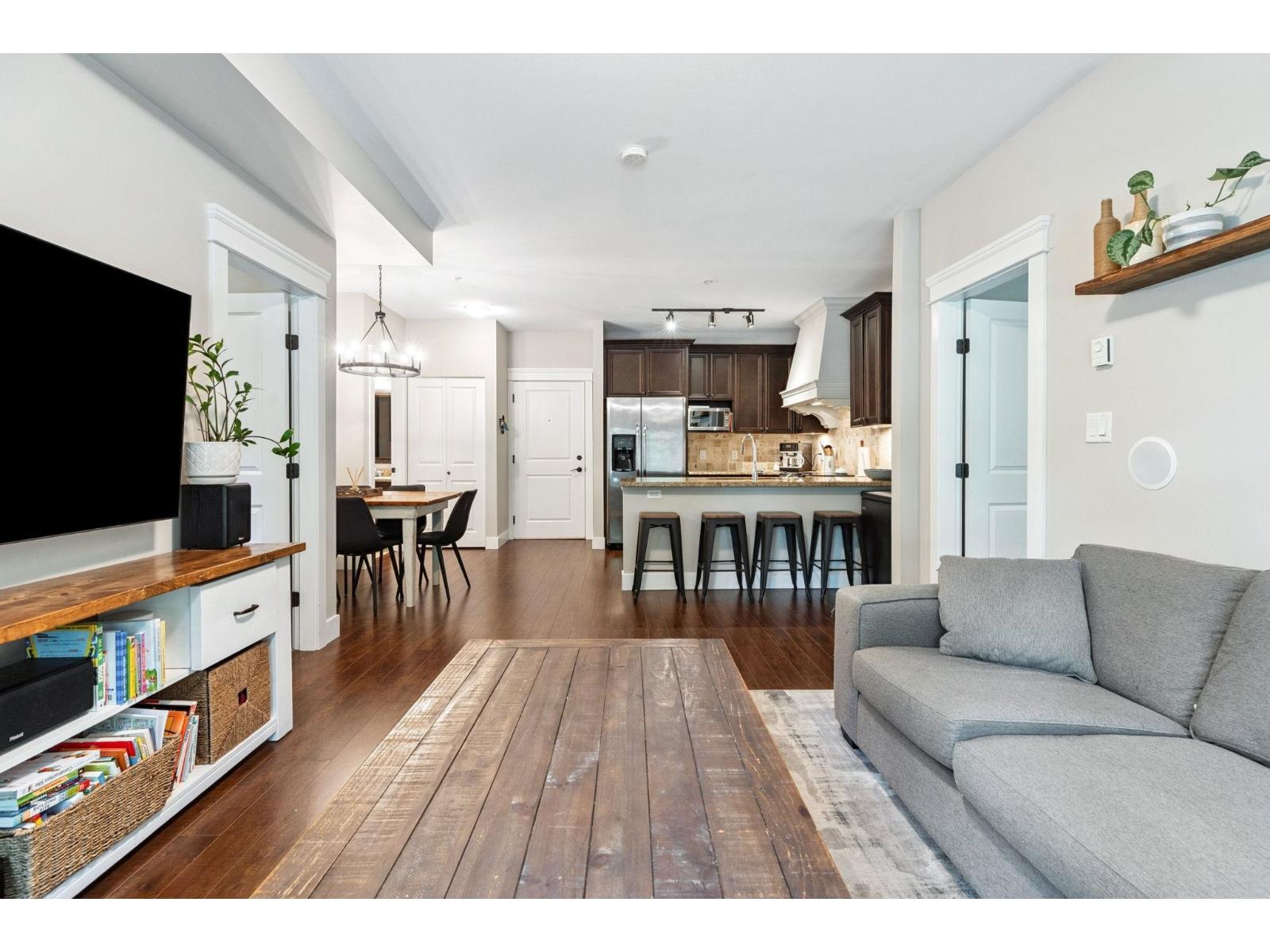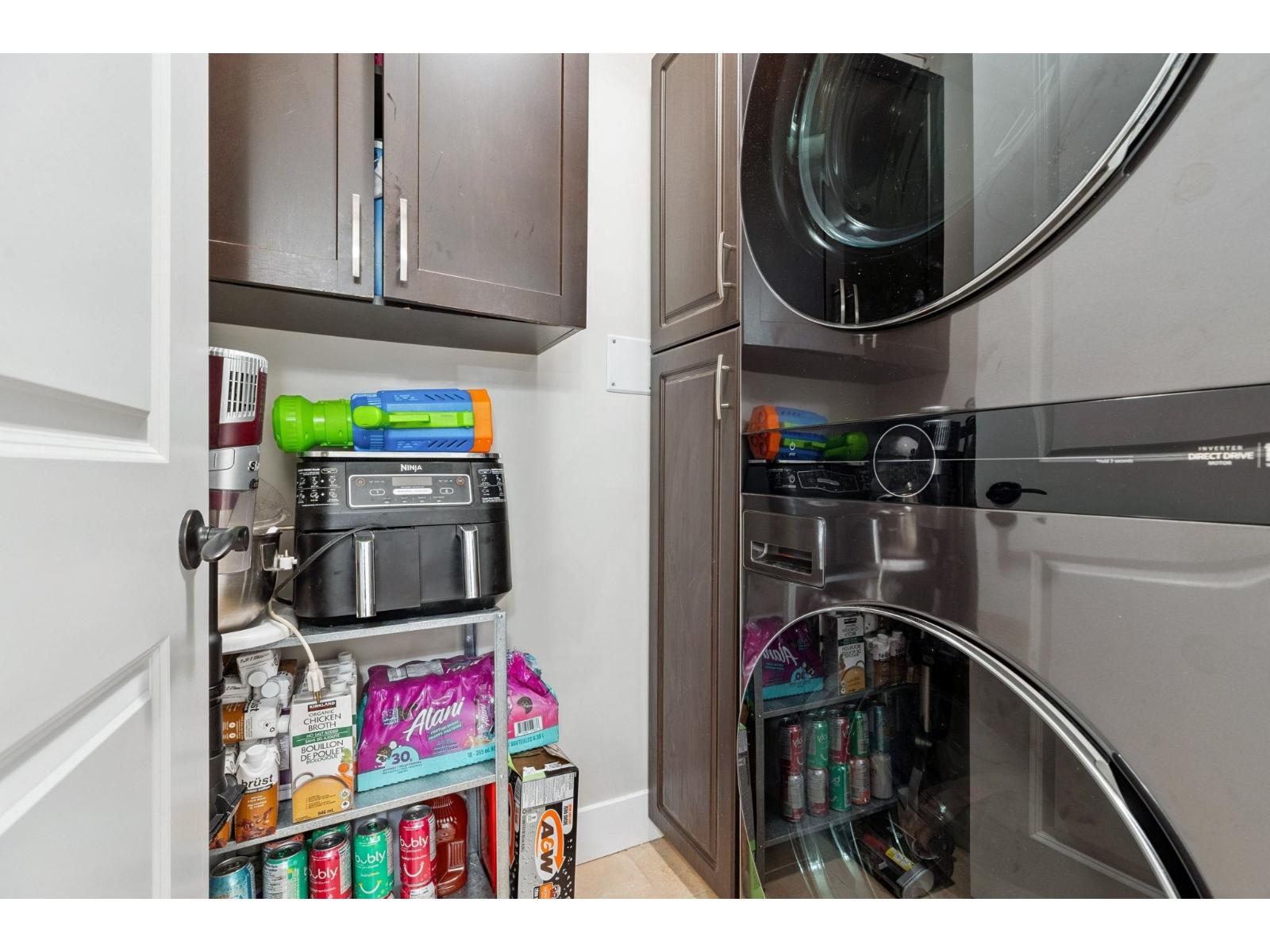 $460.27 MonthlyAlmost 1000sf at the Willow Grand, an exceptionally well run building in Clayton Heights, this 2 bed 2 bath is a great starter home with room to grow, or a fantastic rental property. An ideal layout with separated bedrooms, an immense primary bathroom with double vanity, and a large walk-in closet, and 9 ft ceilings throughout. The living area has ample room for a large dining table, with a spacious living room and attached private balcony facing a quiet pathway. Restaurants, coffee, and grocery stores are all a short walk way, as well as Willowbrook Mall, and the upcoming Skytrain extension will be just a few minutes away - making it a great long term investment. Updates include a built-in surround sound system, new paint, and new washer and dryer. Bonus: 2 parking! (id:52823)