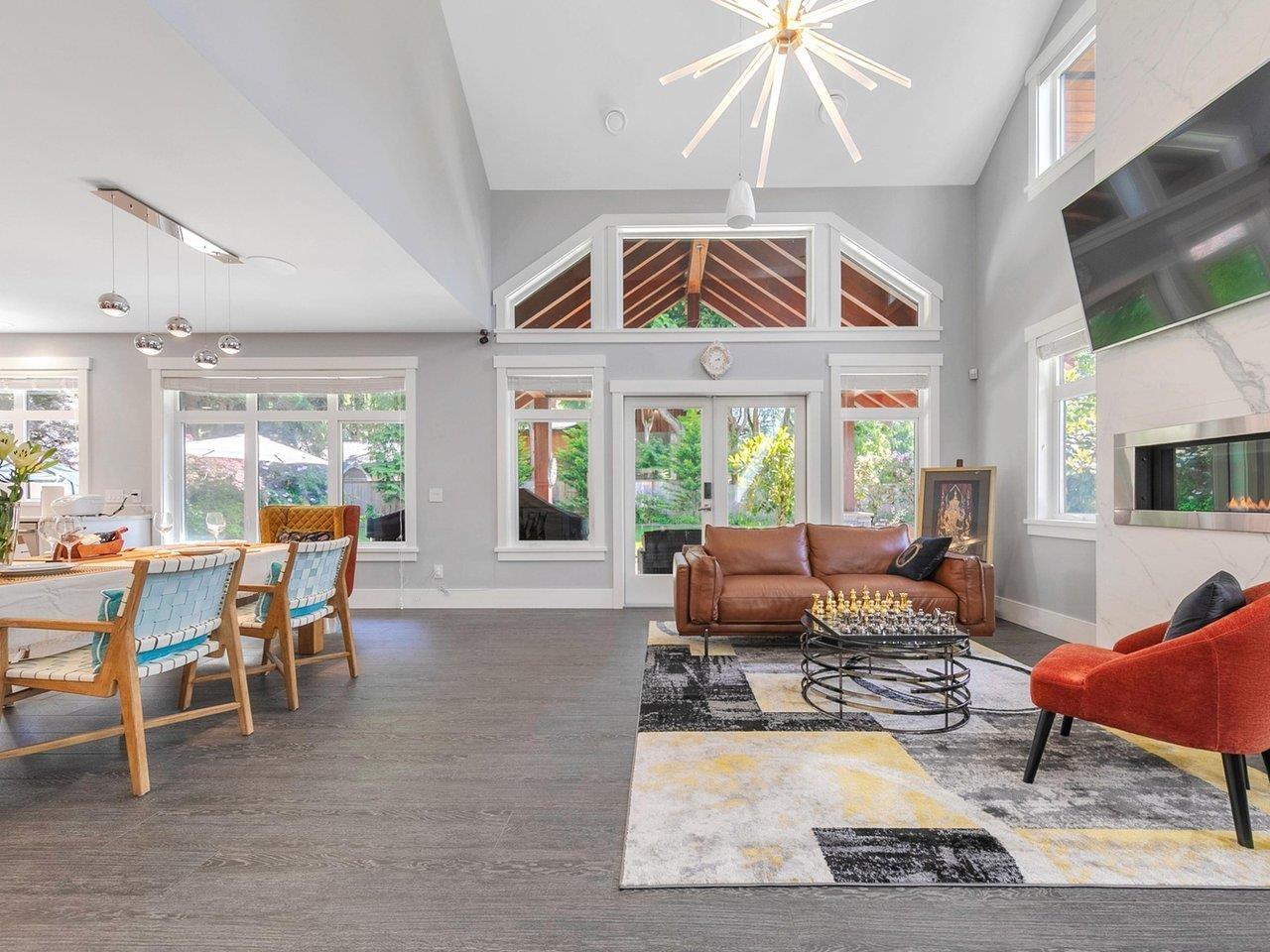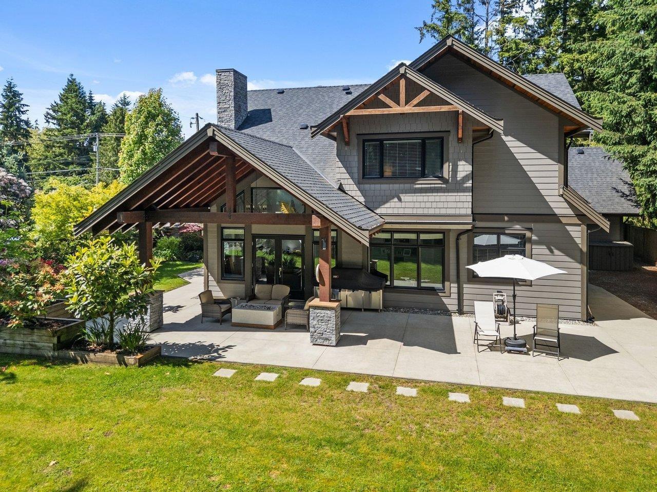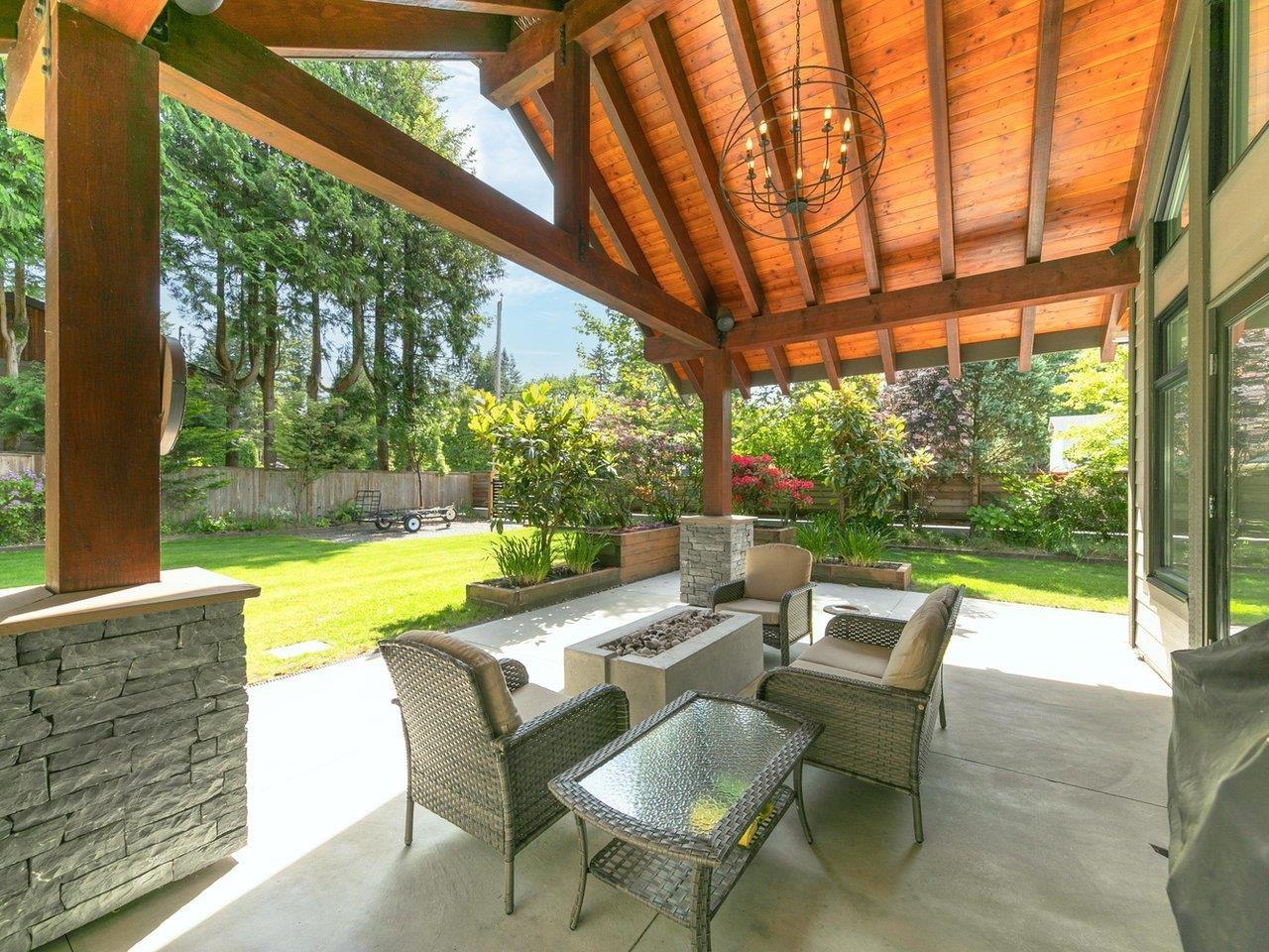 This striking architectural home sitting on a huge lot in the heart of desirable Brookswood. The distinctly characterized house is truly an entertainer's dream, featuring a gourmet kitchen with an extremely large island. Living room boasts 18 foot ceilings, walking out to a south-facing fenced backyard. The splendid landscaping engaged breathtaking tranquility & privacy. Gas fire table, hookup for BBQ & enormous patio. Upstairs features large gorgeous 5 piece bathroom & over fire table, hookup for BBQ & enormous patio. Upstairs features large gorgeous 5 piece bathroom & oversized w/i closet. Sound system throughout home & backyard. Radiant heat & AC throughout including in the garage. RV parking, electric gate, extra 3588s/q is qualified for the extension of the existing house. A 10/10! (id:52823)