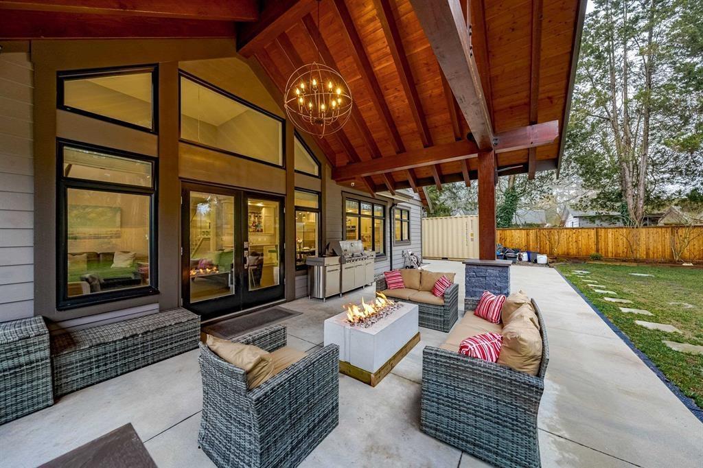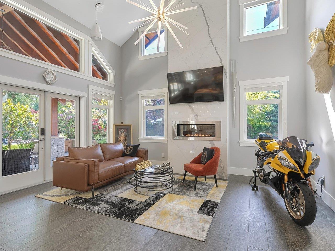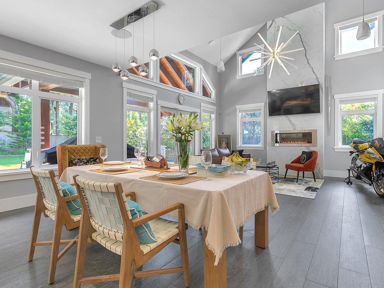 This striking architectural home sitting on a huge lot in the heart of desirable Brookswood. The distinctly characterized house is truly an entertainer's dream, featuring a gourmet kitchen with an extremely large island. Living room boasts 18 foot ceilings, walking out to a south-facing fenced backyard. The splendid landscaping engaged breathtaking tranquility & privacy. Gas fire table, hookup for BBQ & enormous patio. Upstairs features large gorgeous 5 piece bathroom & over fire table, hookup for BBQ & enormous patio. Upstairs features large gorgeous 5 piece bathroom & oversized w/i closet. Sound system throughout home & backyard. Radiant heat & AC throughout including in the garage. RV parking, electric gate, extra 3588s/q is qualified for the extension of the existing house. A 10/10! (id:52823)
