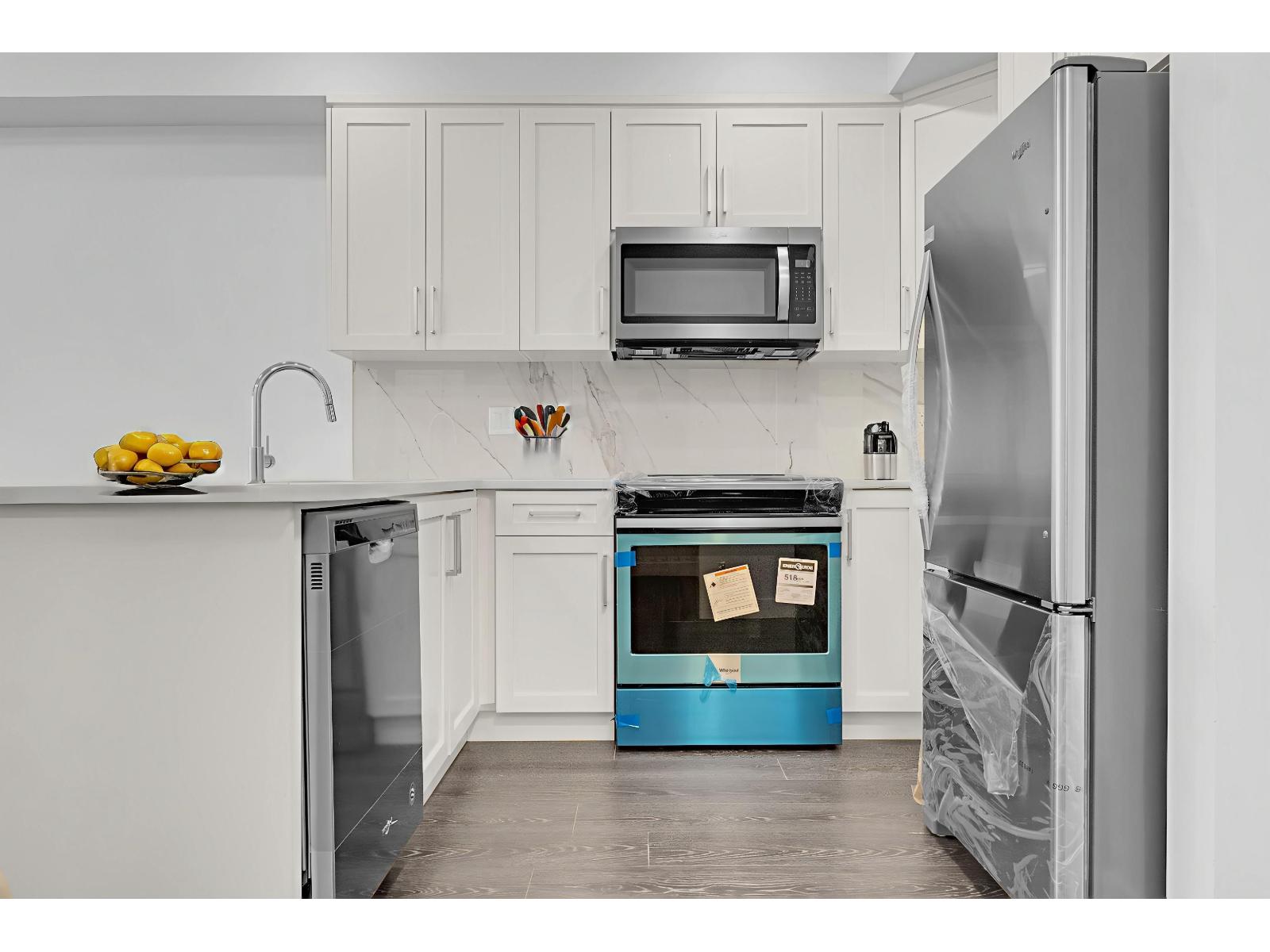 $399.19 MonthlyFEELS BRAND NEW! Welcome to this stunning 2 bed + den, 2 bath condo in the heart of Fraser Heights! Built in 2018, offers high ceilings, expansive windows, and a spacious open-concept layout. The modern kitchen boasts white cabinetry, natural quartz countertops, a marble-inspired backsplash, and premium Whirlpool stainless steel appliances. Over 1000 sq ft of living space, 2 STORAGE LOCKERS and 2 oversized balconies this unit gives you plenty of space to enjoy! Located in a highly sought-after neighborhood with top-rated schools, parks, and amenities, plus easy access to Guildford Town Centre, Langley and Vancouver. Convenient new #338 bus route nearby. (id:52823)