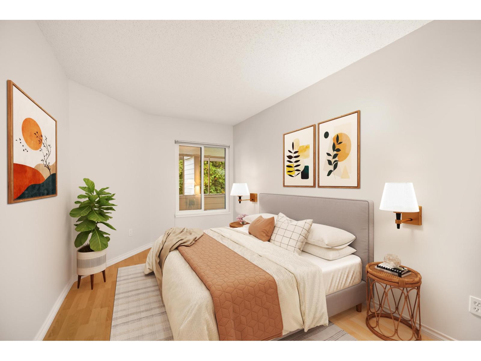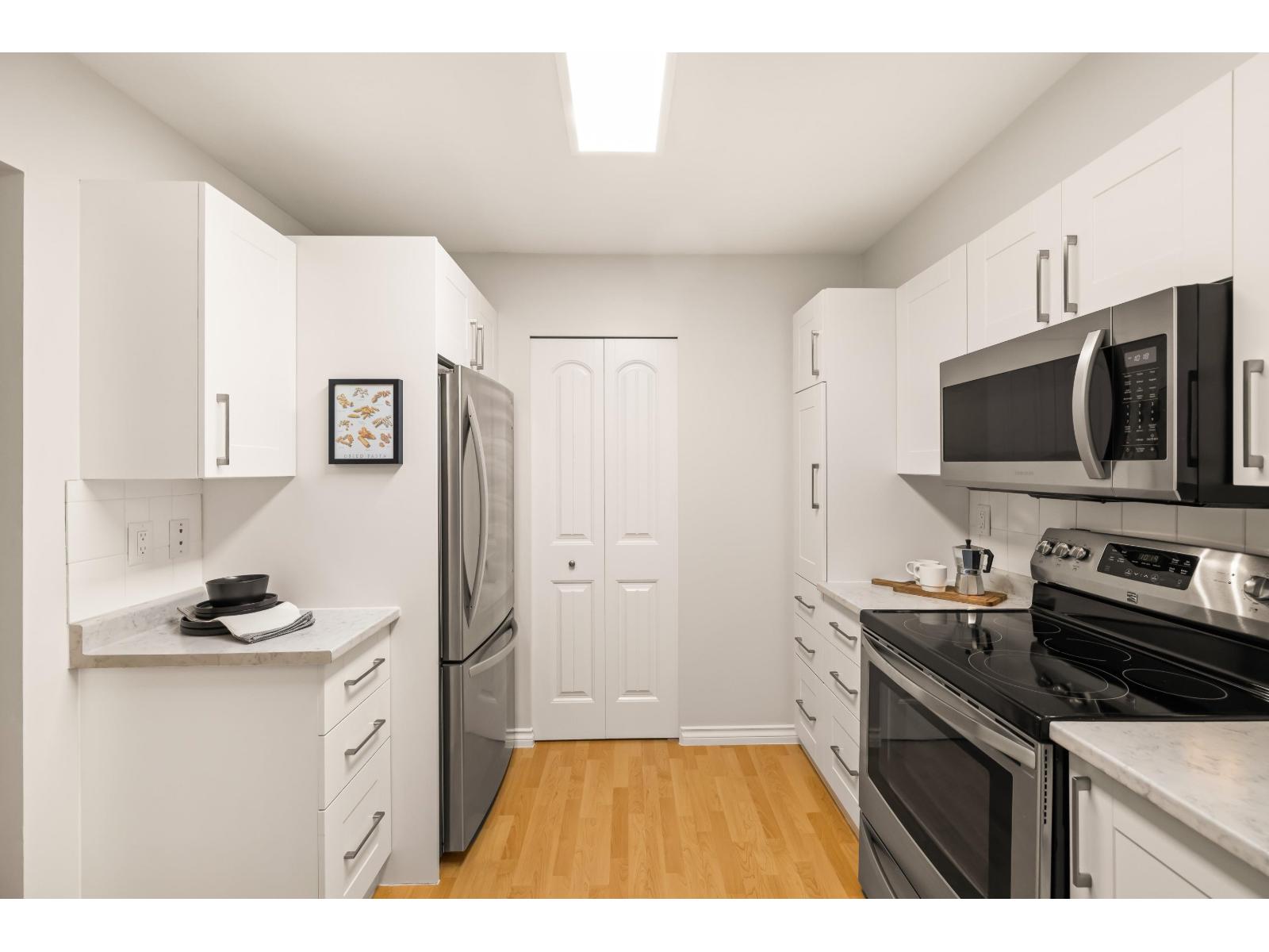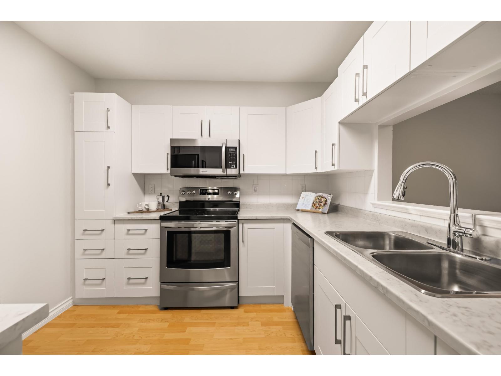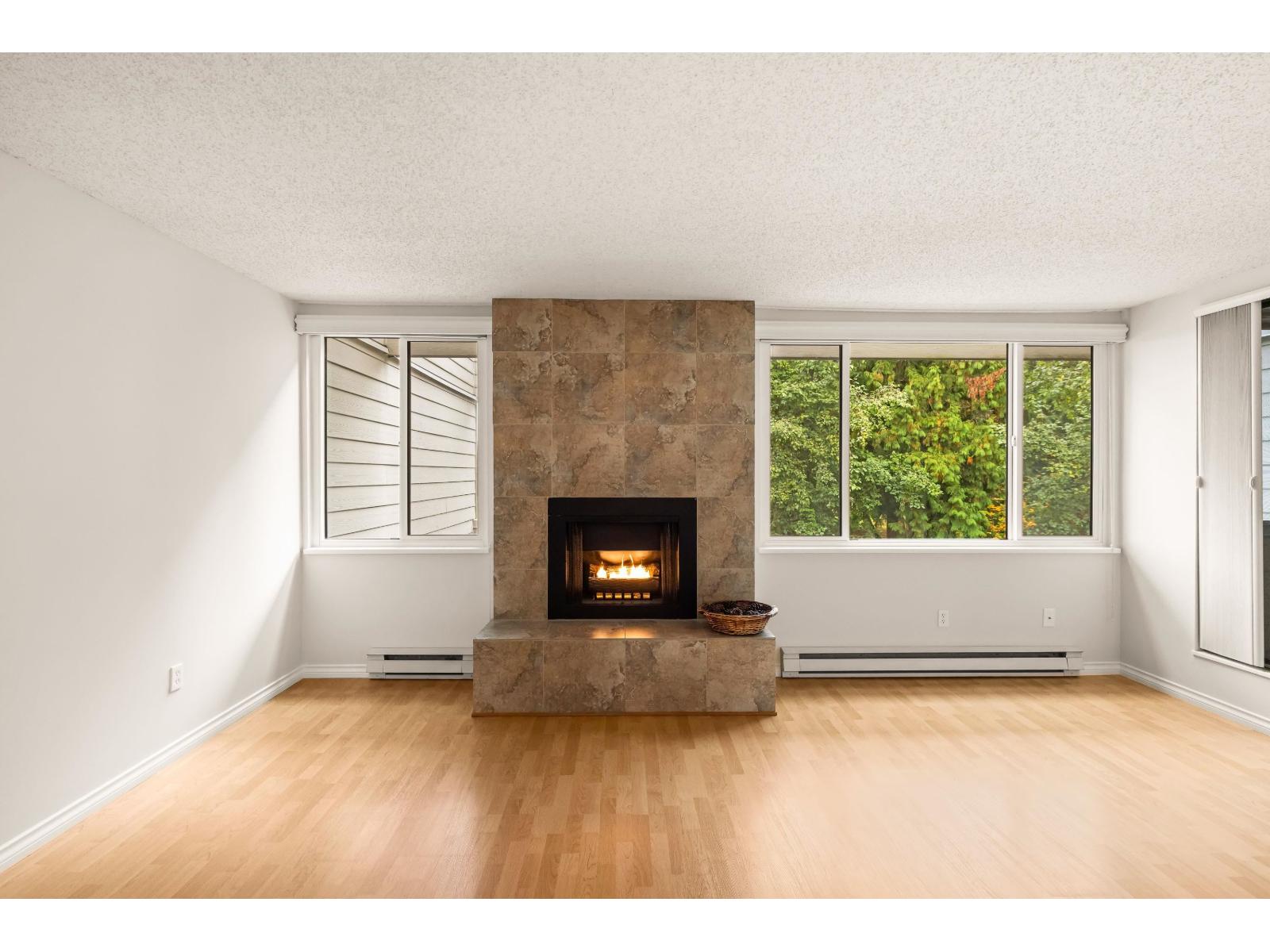 $587 MonthlyWelcome to Parkview Place! Beautifully updated and freshly painted 2 bed, 2 bath home offering 1,153 sq ft of bright, spacious living with peaceful views of Bakerview Park from every room. The open layout includes a generous dining & living area with a cozy gas fireplace. The renovated kitchen features white shaker cabinets, stainless-steel appliances & plenty of storage space. The large primary bedroom includes a private ensuite. Additional features include new vinyl windows, in-suite laundry, and tasteful modern finishes throughout this move-in-ready home. Residents enjoy access to a fitness room, sauna, lounge, and secure underground parking, all within a proactive & well-cared-for community. Centrally located beside Bakerview Park and just minutes to shopping, restaurants, and transit. (id:52823)