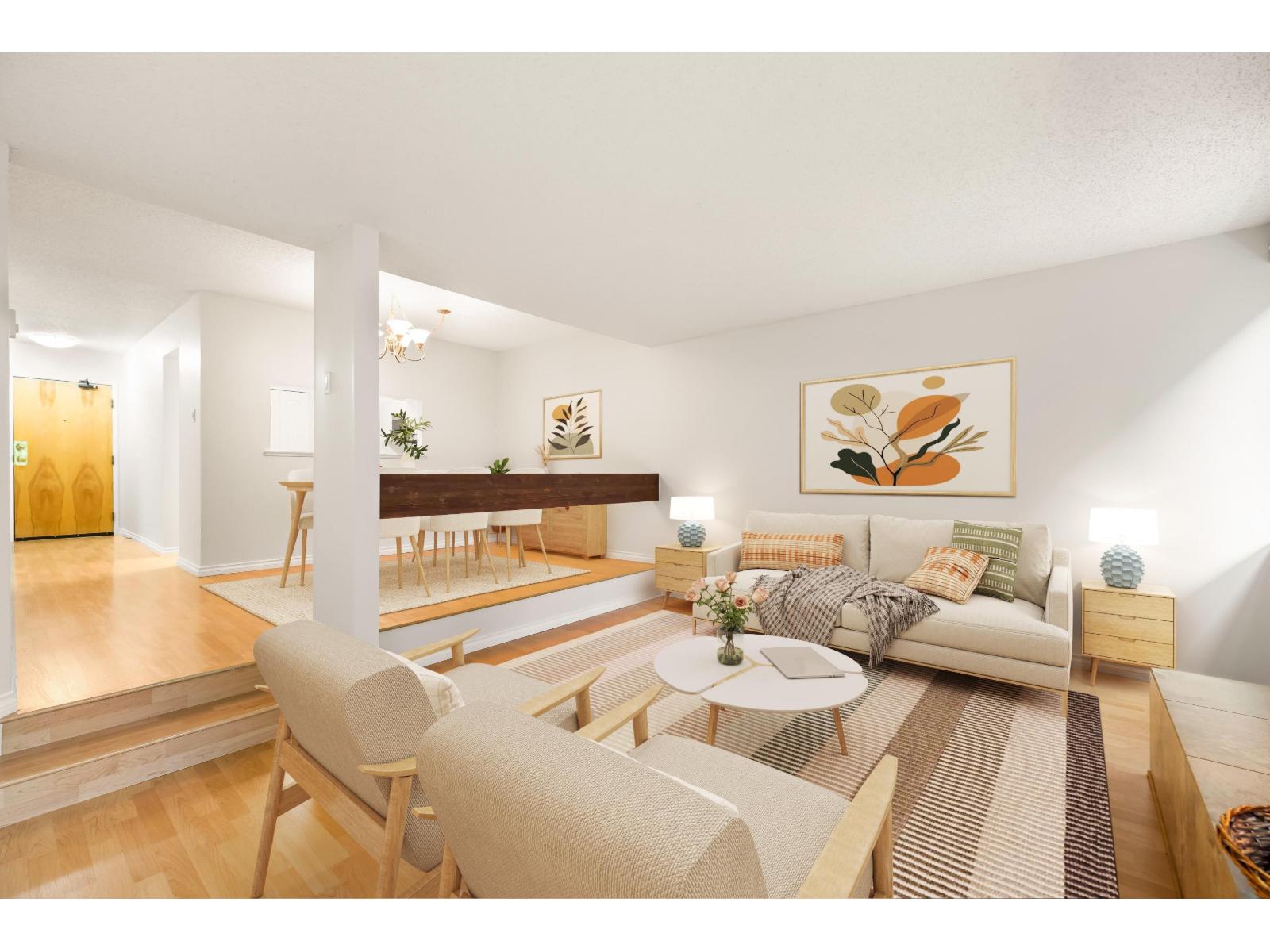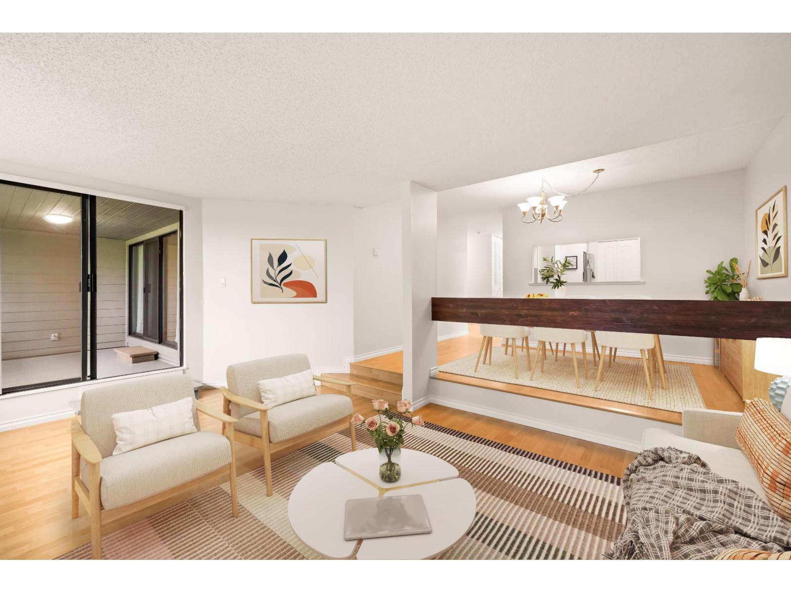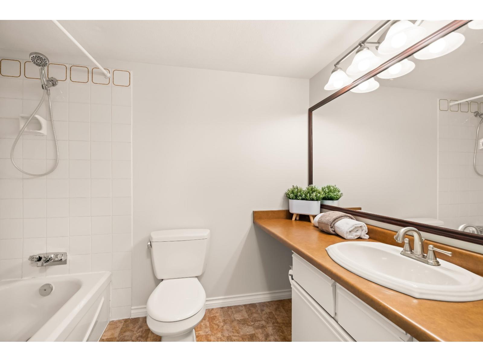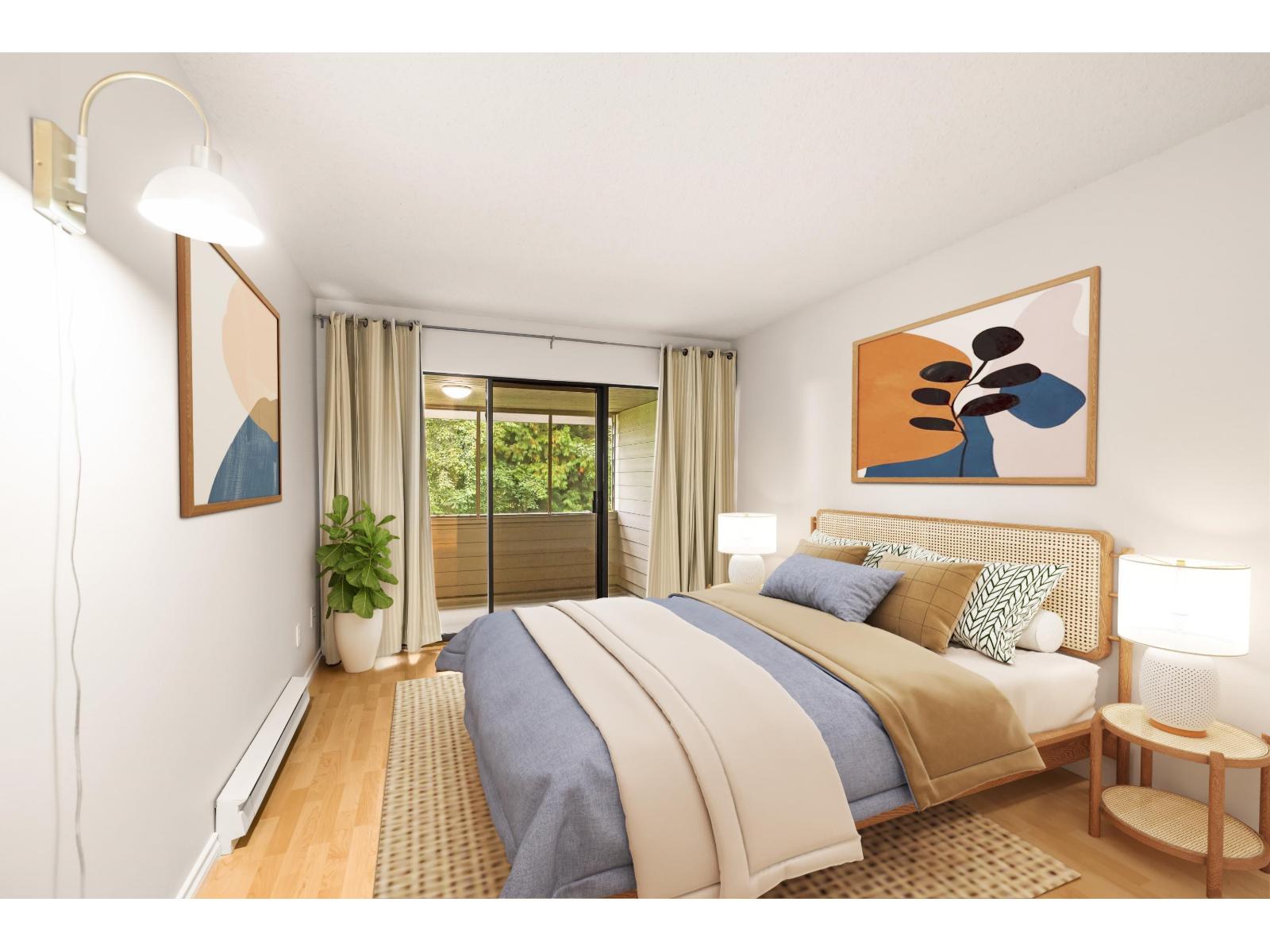 $587 MonthlyWelcome to Parkview Place! Beautifully updated and freshly painted 2 bed, 2 bath home offering 1,153 sq ft of bright, spacious living with peaceful views of Bakerview Park from every room. The open layout includes a generous dining & living area with a cozy gas fireplace. The renovated kitchen features white shaker cabinets, stainless-steel appliances & plenty of storage space. The large primary bedroom includes a private ensuite. Additional features include new vinyl windows, in-suite laundry, and tasteful modern finishes throughout this move-in-ready home. Residents enjoy access to a fitness room, sauna, lounge, and secure underground parking, all within a proactive & well-cared-for community. Centrally located beside Bakerview Park and just minutes to shopping, restaurants, and transit. (id:52823)