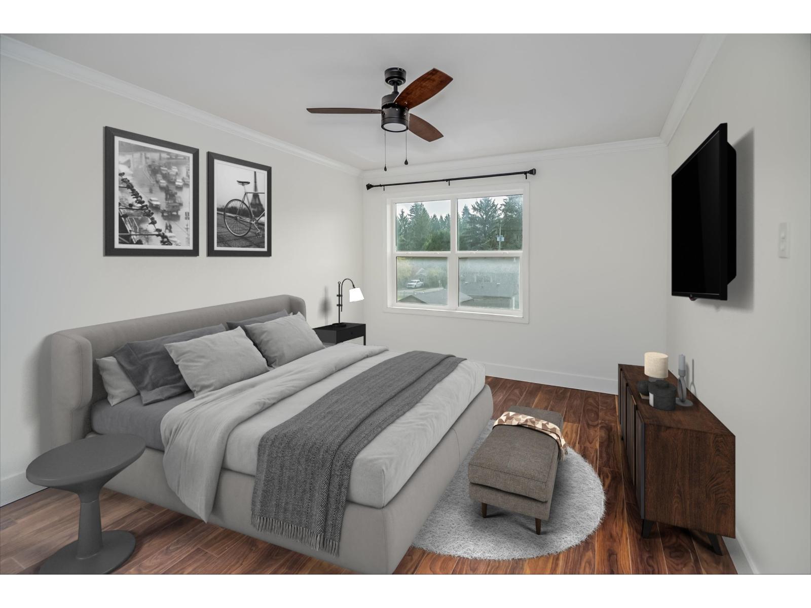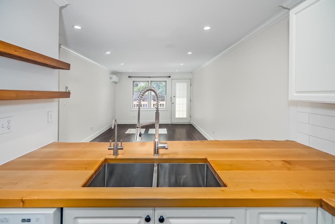 $344.47 MonthlyThe best opportunity to own in Fort Langley! A beautiful 1 bed 1 bath unit with 733 sqft of living space on the quiet side of the building! Open concept kitchen w/ live edge butcher block counters, bar seating, new back splash, great cabinet space + instant hot water tap (filtered). Fresh paint throughout! One of the only units with AC! Large living room with lots of natural light + Updated pot lights throughout! HUGE primary bedroom w/ room for king bed + more and a Walk in closet! Beautifully updated full bathroom! Laundry room with tons of storage space! 1 parking + storage locker! Great building, roof done 2021 and most piping in building replaced to pex! All of this right in the heart of Historic Fort Langley! Walk to all shops, breweries, river, trails, parks, restaurants and more! (id:52823)