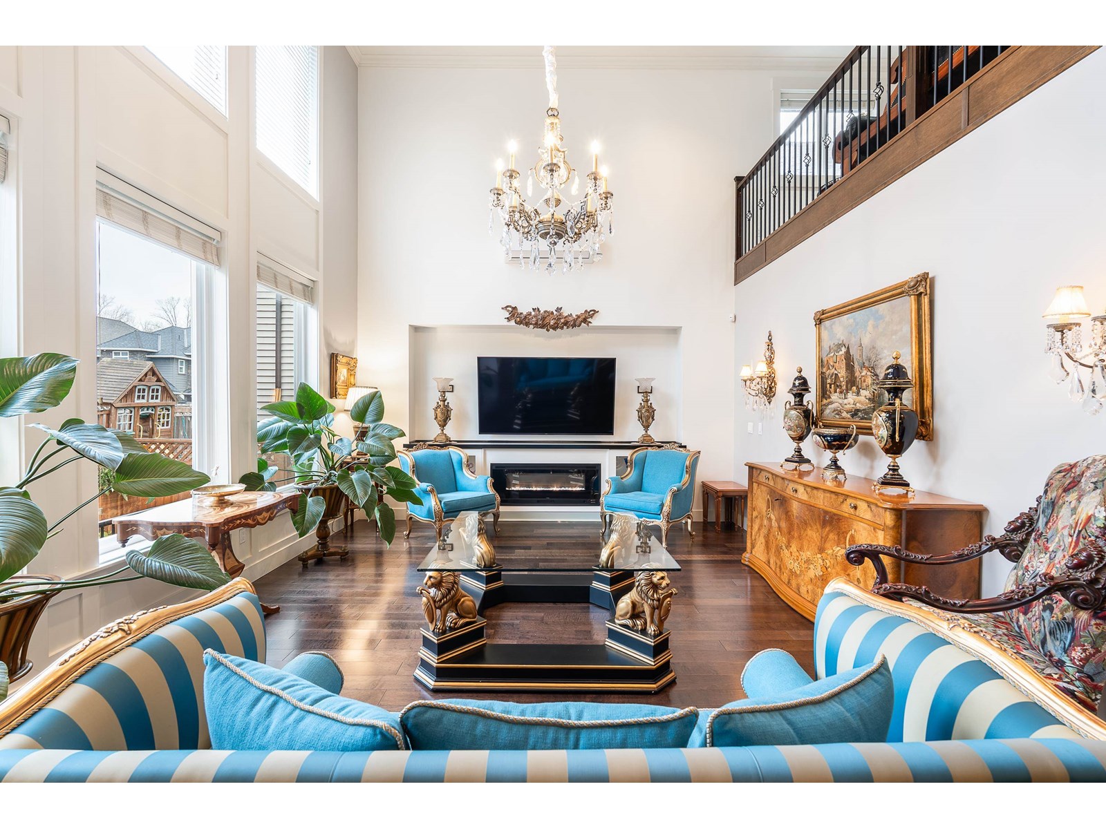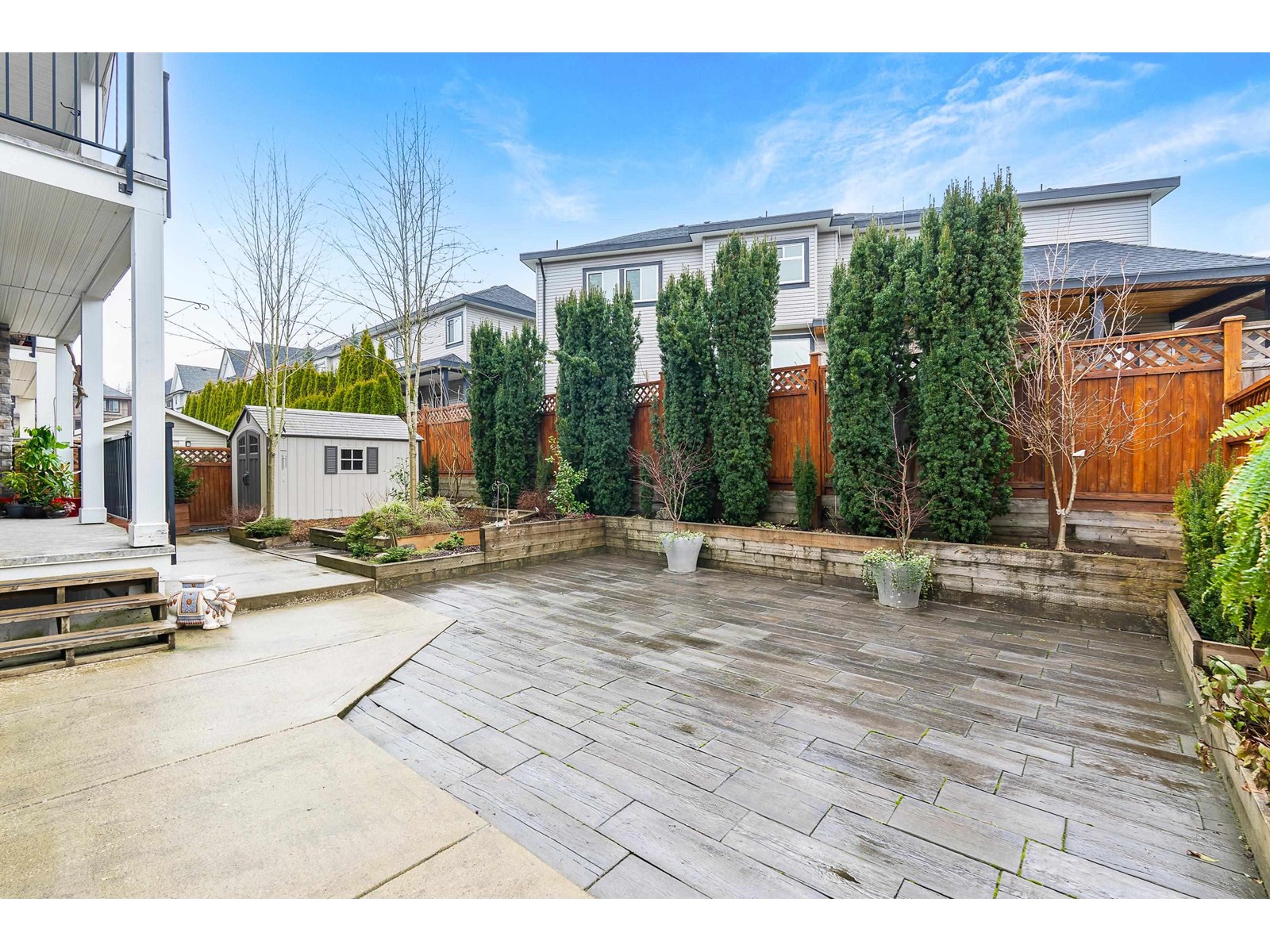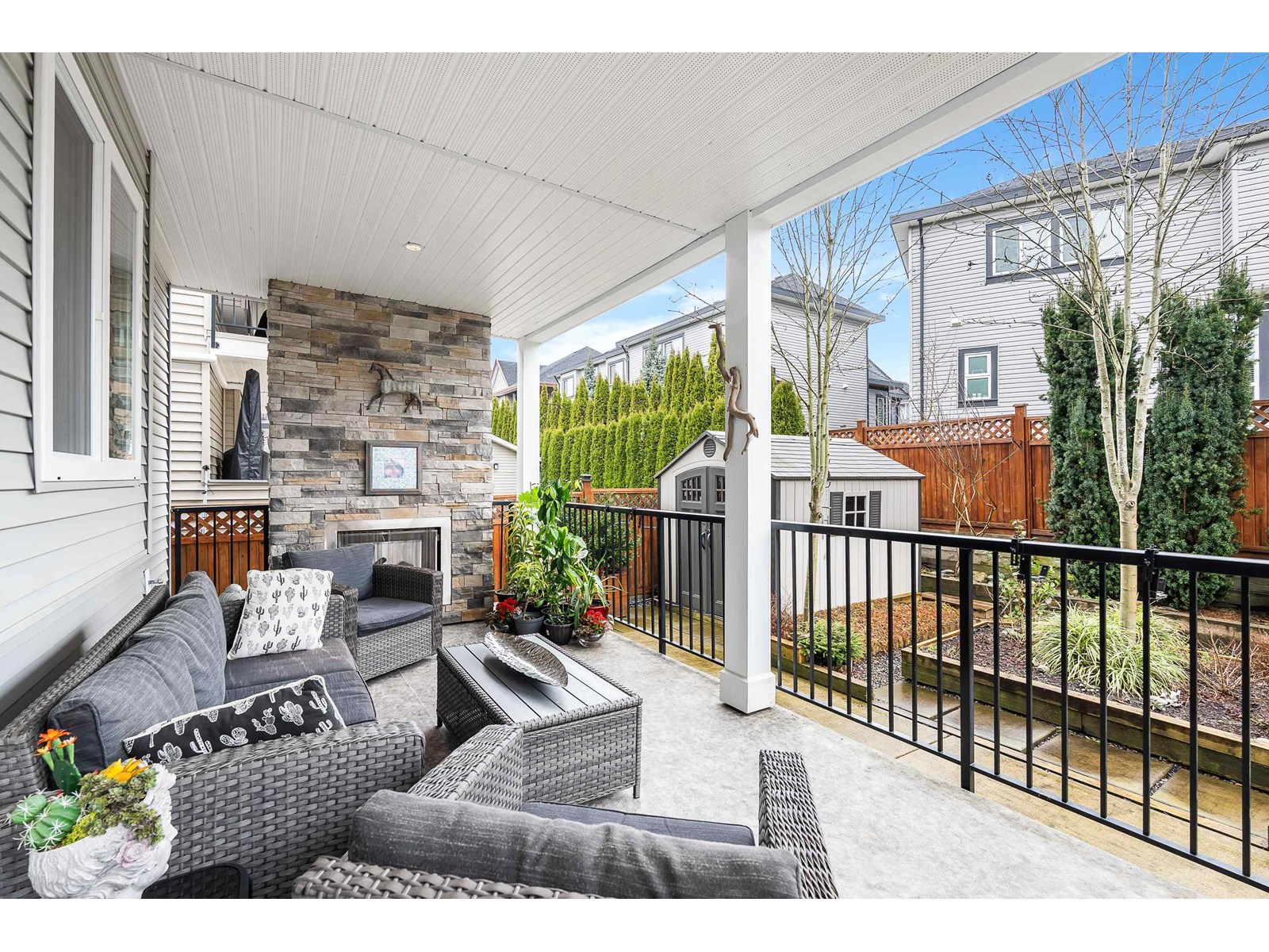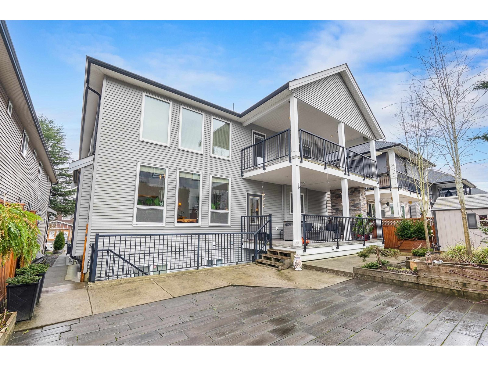 This stunning home offers 6,300+ sq. ft. of upgraded living space, including a legal 2-bedroom suite with a covered deck. The landscaped yard features a patio, pond, and shed-perfect for entertaining. The main floor boasts a grand master suite with a fireplace, walk-in closet, and spa-like ensuite. A gourmet kitchen with granite counters, gas stove, and built-in oven flows into the great room with soaring 18-ft ceilings. Upstairs has another master, two more bedrooms, and a loft. The basement offers a media room, office with built-ins, wet bar, and powder room. Updates include new A/C units, fresh paint, and EV charger, new boiler, new microwave, and new washer dryer . Pride of ownership shines throughout. Close to best Schools and all amenities. Easy Access to HW1, HW10 and Fraser HW. Close to future sky train station. OH: SUN AUG 17 2:00-4:00pm (id:52823)