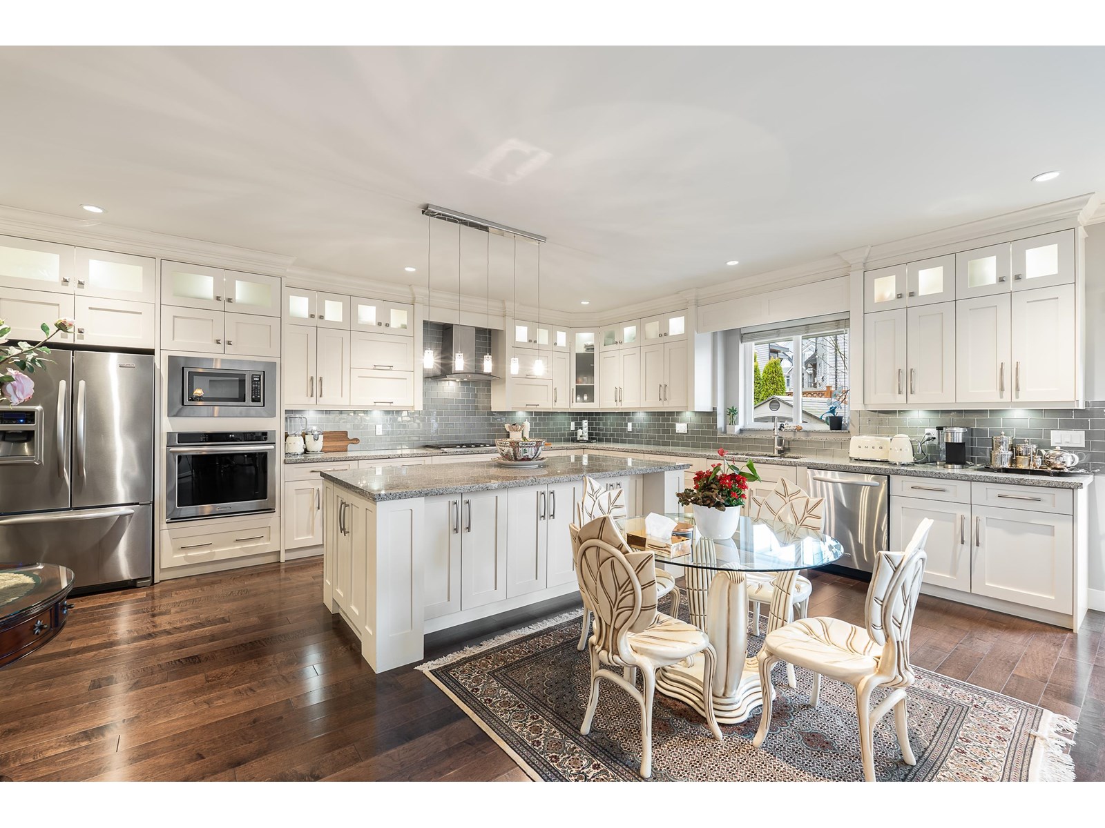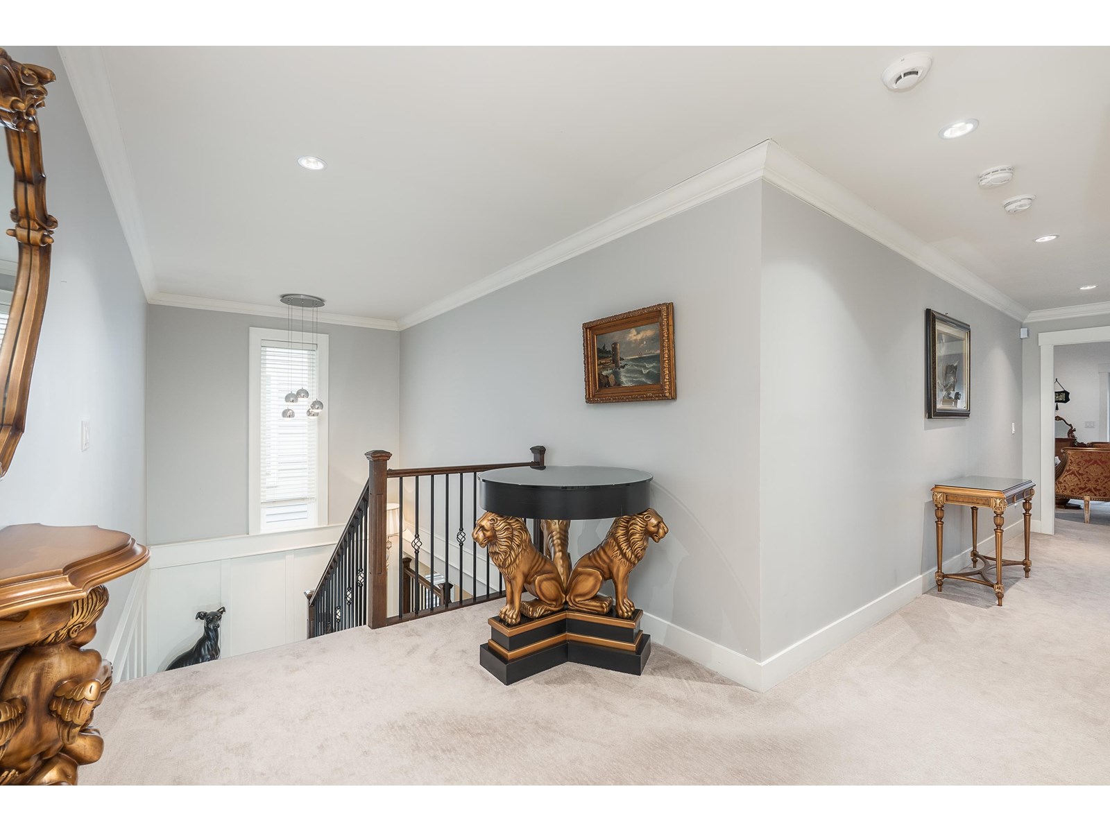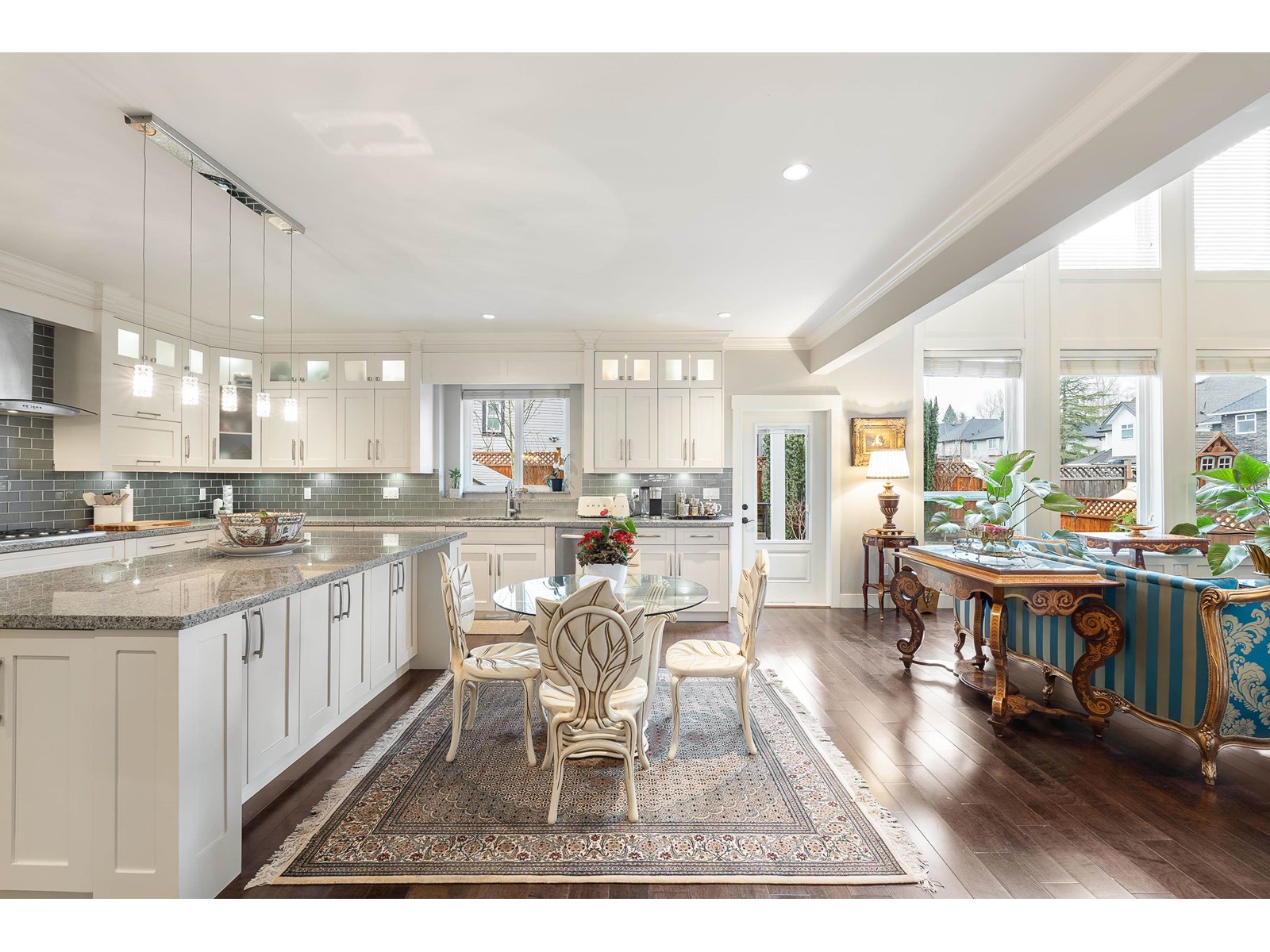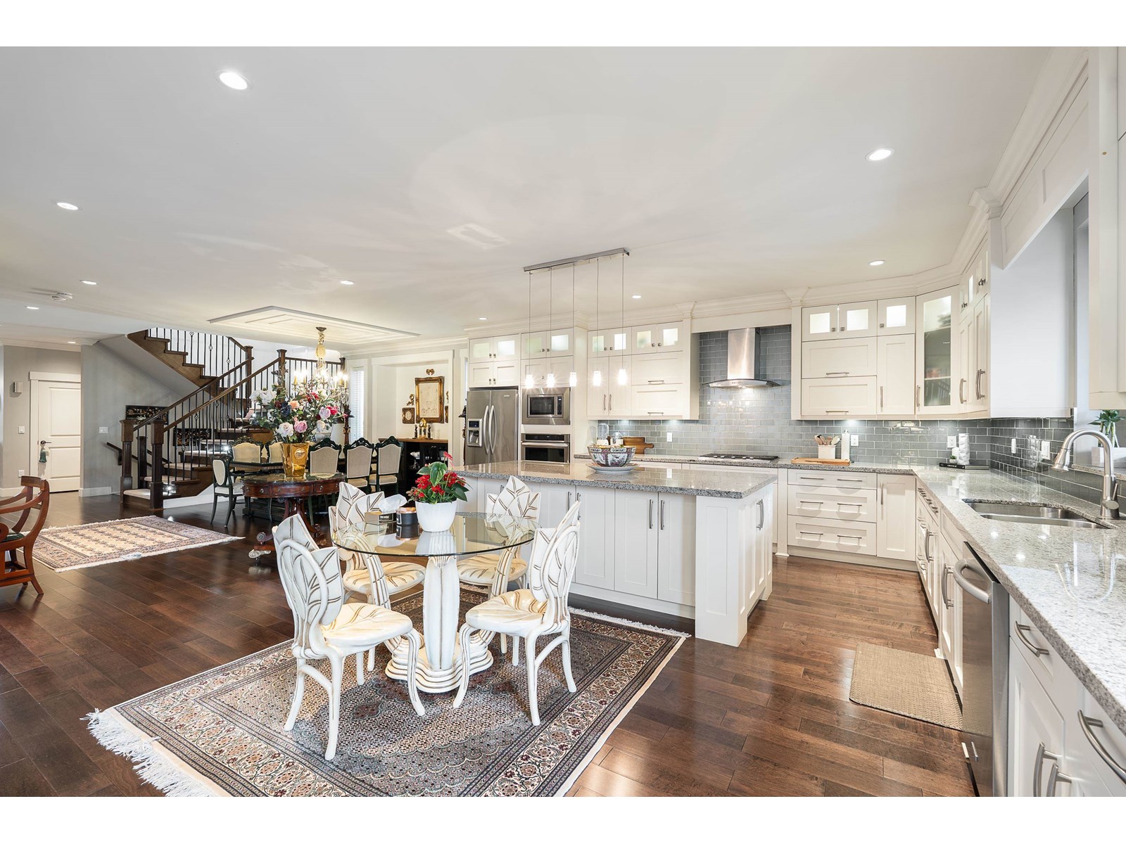 This stunning home offers 6,300+ sq. ft. of upgraded living space, including a legal 2-bedroom suite with a covered deck. The landscaped yard features a patio, pond, and shed-perfect for entertaining. The main floor boasts a grand master suite with a fireplace, walk-in closet, and spa-like ensuite. A gourmet kitchen with granite counters, gas stove, and built-in oven flows into the great room with soaring 18-ft ceilings. Upstairs has another master, two more bedrooms, and a loft. The basement offers a media room, office with built-ins, wet bar, and powder room. Updates include new A/C units, fresh paint, and EV charger, new boiler, new microwave, and new washer dryer . Pride of ownership shines throughout. Close to best Schools and all amenities. Easy Access to HW1, HW10 and Fraser HW. Close to future sky train station. OH: SUN AUG 17 2:00-4:00pm (id:52823)