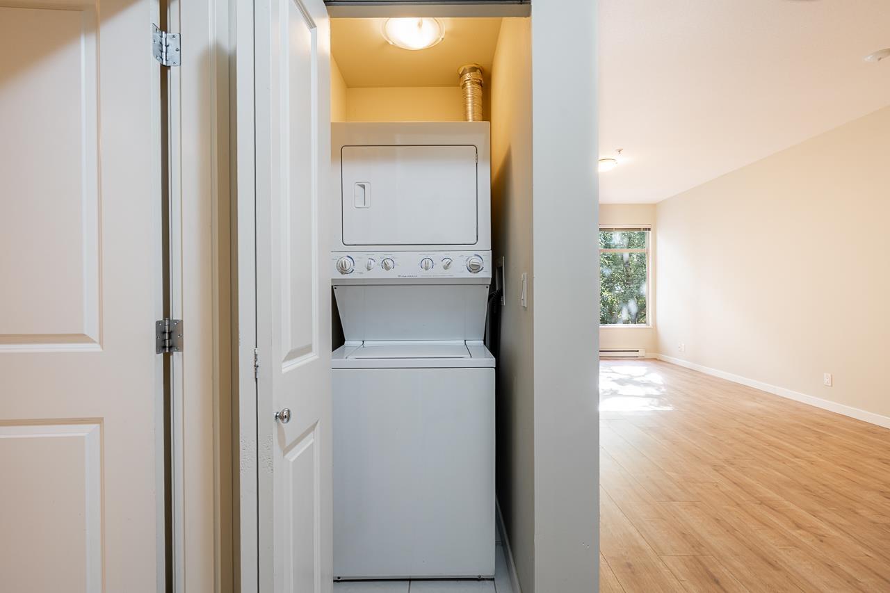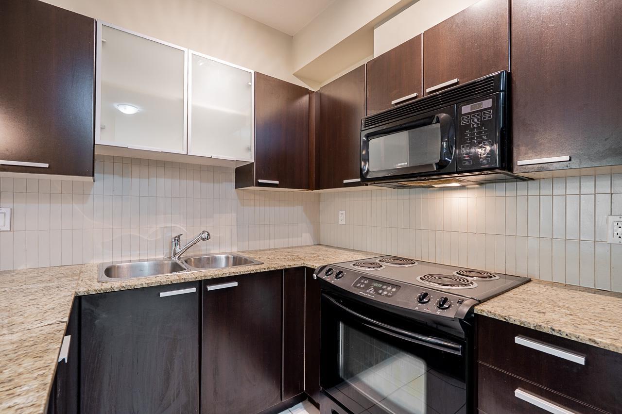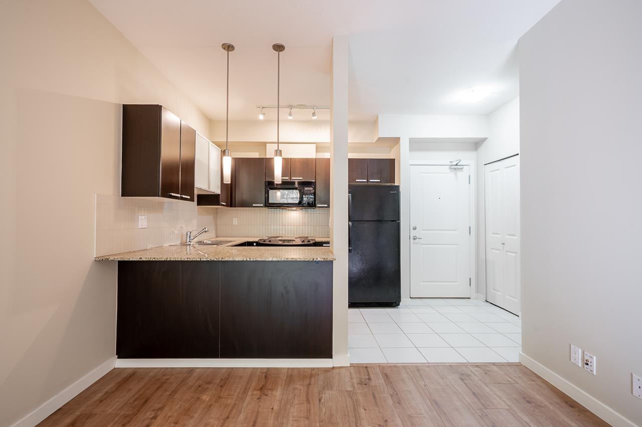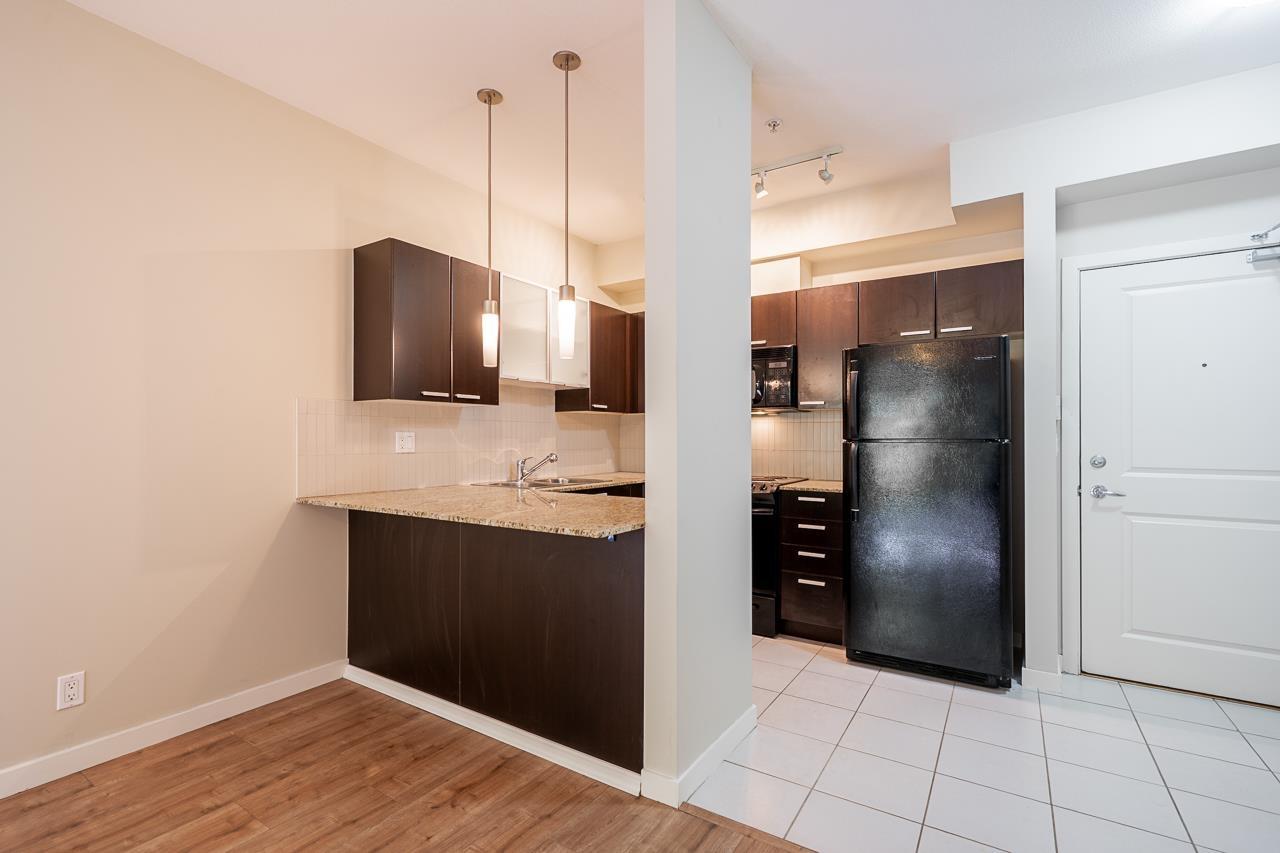 $350.17 MonthlyLocated in the popular D'Cor community of Surrey City Centre. This Spacious One bedroom, one bathroom condominium is move in ready. Freshly updated with new wide plank laminate flooring in the living and dining areas and a new coat of paint. The Kitchen features dark wood grain cabinets, black appliances, granite counter top, tile backsplash and flooring. Situated on the second floor and on the quiet side of the building with dual-access balcony. 1 parking and 1 locker. Pet-friendly (One cat or one small dog permitted - maximum 20 kgs). The Building offers Secure Gated underground parking, onsite amenity and fitness rooms. Just a short stroll to SFU, KPU, Surrey Central Skytrain, and all the shops and restaurants of Central City Mall. OPEN HOUSE 1 - 3 PM, SATURDAY OCTOBER 11. (id:52823)