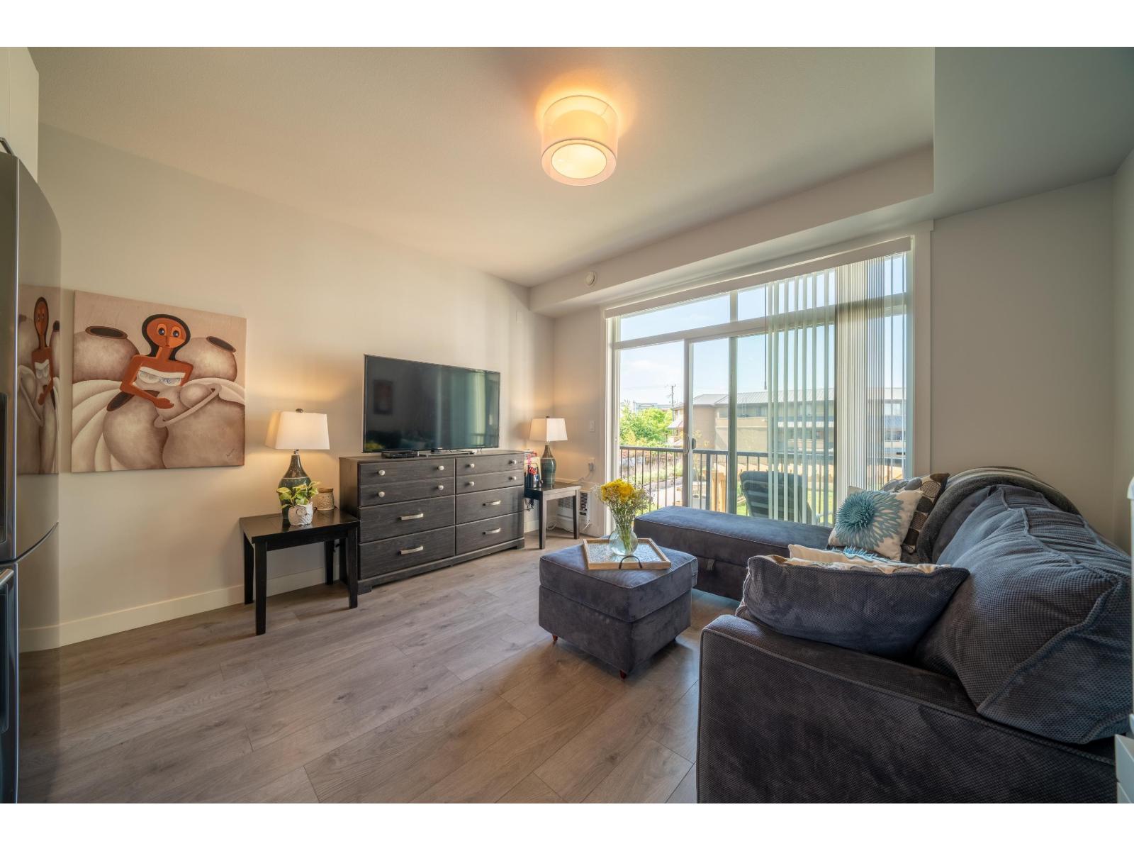 $195 MonthlyIntroducing The Georgia developed by Whitetail Homes, conveniently situated near the upcoming Langley Skytrain Station! This exquisite Jr. 1 Bed residence offers a perfect blend of elegance and functionality. The kitchen boasts granite countertops and modern s/s appliances, while the convenience of en suite laundry adds to its allure. With its lofty 9-foot ceilings and abundant windows, the living space is bathed in natural light, complemented by a covered balcony for outdoor enjoyment. The complex offers an array of outstanding amenities, including ample visitor parking, theatre room, gym, fitness rooms, and gathering areas, along with the added convenience of 1 parking spot and 1 secure storage locker. (id:52823)