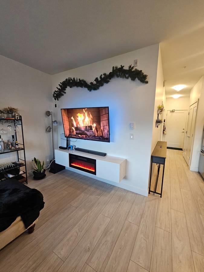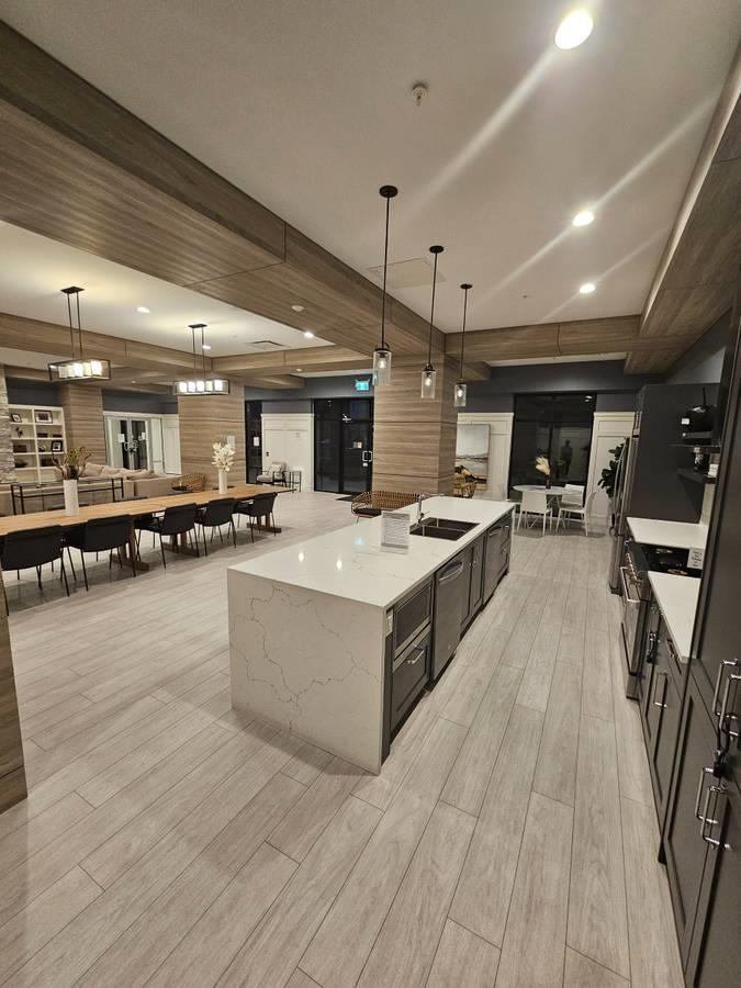 Exceptional value in this prime condition 1-bedroom, 1-bath condo in Clayton Heights offering 550 sq. ft. of comfortable living just steps from Clayton Community Centre and local shops. Located on the second floor, this bright unit features a quality kitchen with quartz countertops and modern appliances, a spacious bedroom, luxury-finished bathroom, in-suite laundry, luxury vinyl flooring, and a cozy family room. Includes one parking stall and a storage locker, with access to building amenities such as a fitness centre, party room, outdoor patio with BBQ, and playground. Ideally situated within walking distance to Clayton Park, schools, and services, this home is available with a one-year lease; no pets preferred, though a small dog or cat may be considered. (id:52823)