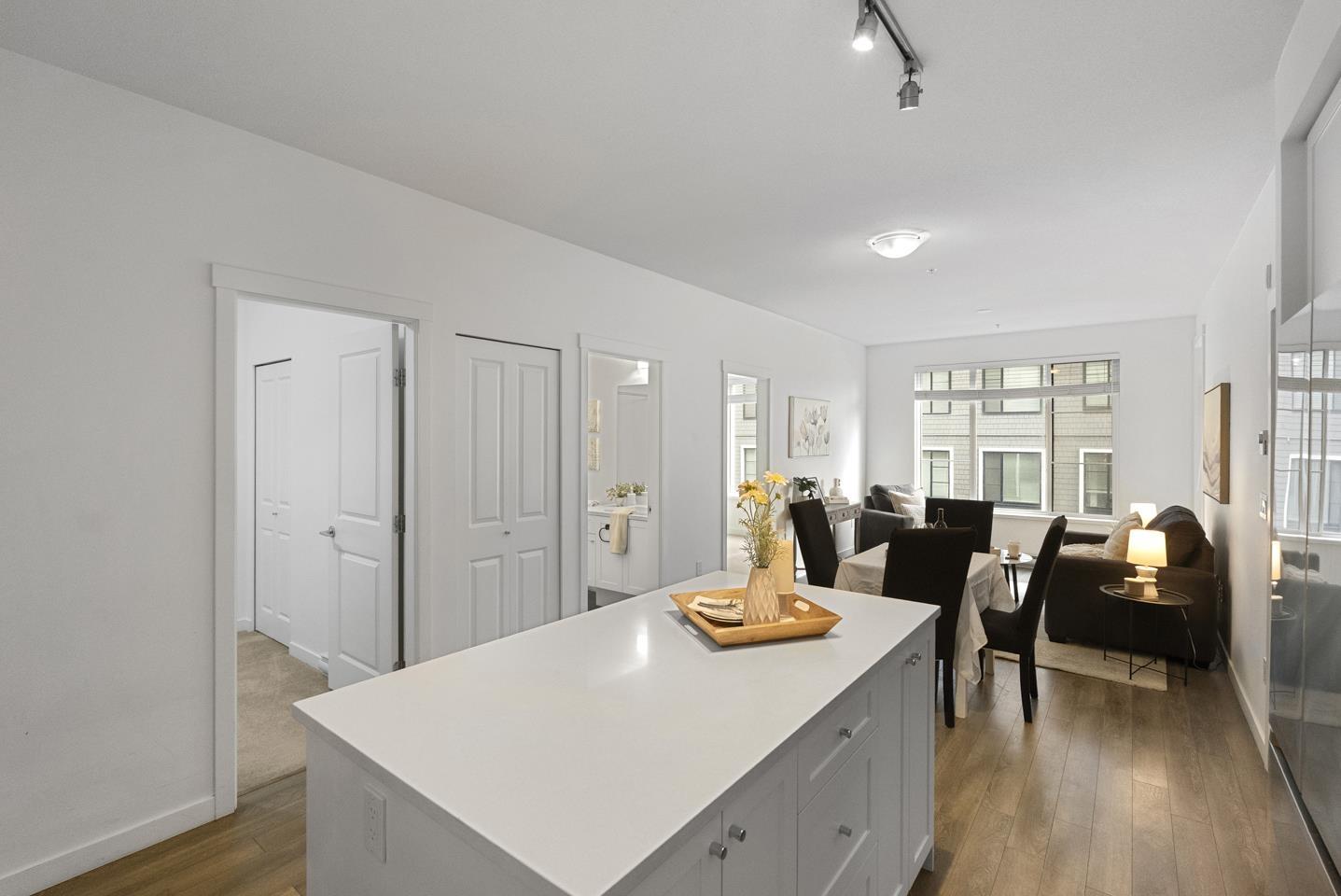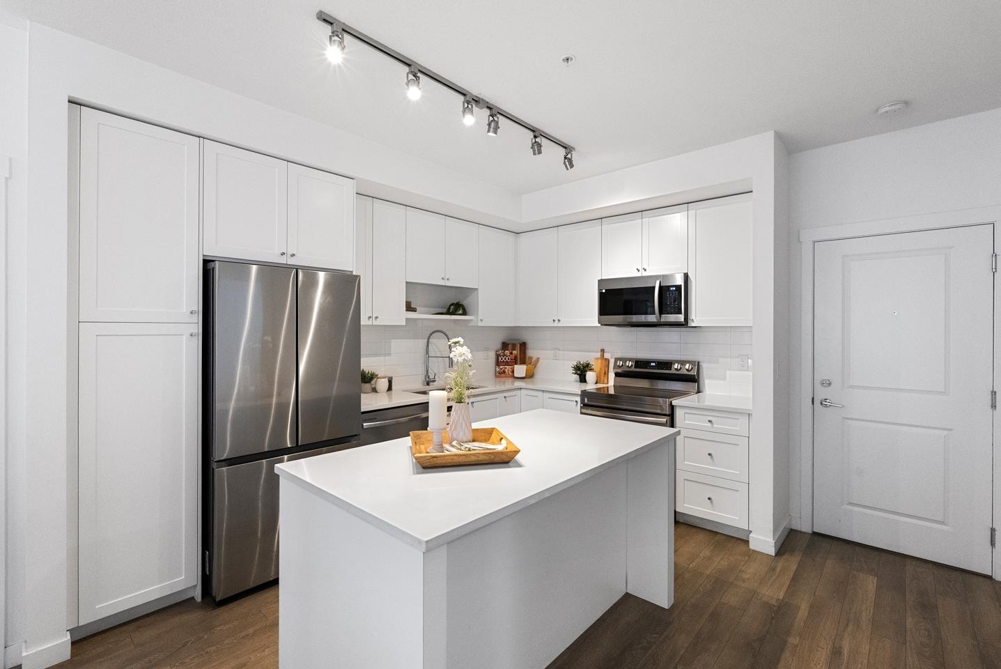 $422.99 MonthlyBuilt in 2023 by the reputable Dawson & Sawyer, this contemporary 3-bedroom, 2-bathroom residence offers 847 sq. ft. of expertly designed living space. The bright, open-concept interior features soaring ceilings and expansive windows, leading to a private, tranquil balcony overlooking the courtyard. The gourmet kitchen is a chef's delight, equipped with a large island, premium stainless steel appliances, quartz countertops, and extensive cabinetry. This home includes one secure parking stall and one storage locker for added convenience. Residents enjoy exclusive access to a gym, yoga studio, dog wash, daycare, and playground. Ideally situated near the future SkyTrain expansion, this highly walkable location combines immediate lifestyle convenience with exceptional long-term value. (id:52823)