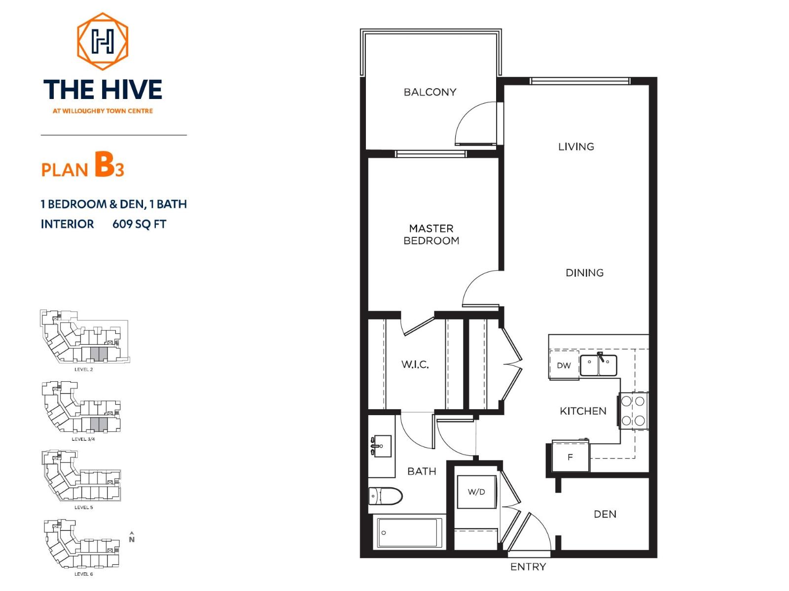 $339.78 MonthlyBrand New South-Pacing 1 Bedroom+Den at The Hive built by Apcon Group. Located in Willoughby, steps to restaurants shops and the indoor tennis centre. Great opportunity for first-time home buyer. Shared amenities with fitness centre, party room, co-working space, and BBQ area. Inspired living space built with high quality materials and modern design touches. Wide plank flooring in the living area. Contemporary roller shade blinds filter natural light. High efficiency front stacking in-suite laundry. Functional kitchen with white cabinetry, grey quartz countertops and stainless steel fridge, gas range and dishwasher. Beautiful bathroom with matte black hardware and undermount sink. Pull 2/5/10 year new home warranty. 1 parking, 1 storage and 1 bike locker. Move-in Ready! 2.5% total deposit (id:52823)