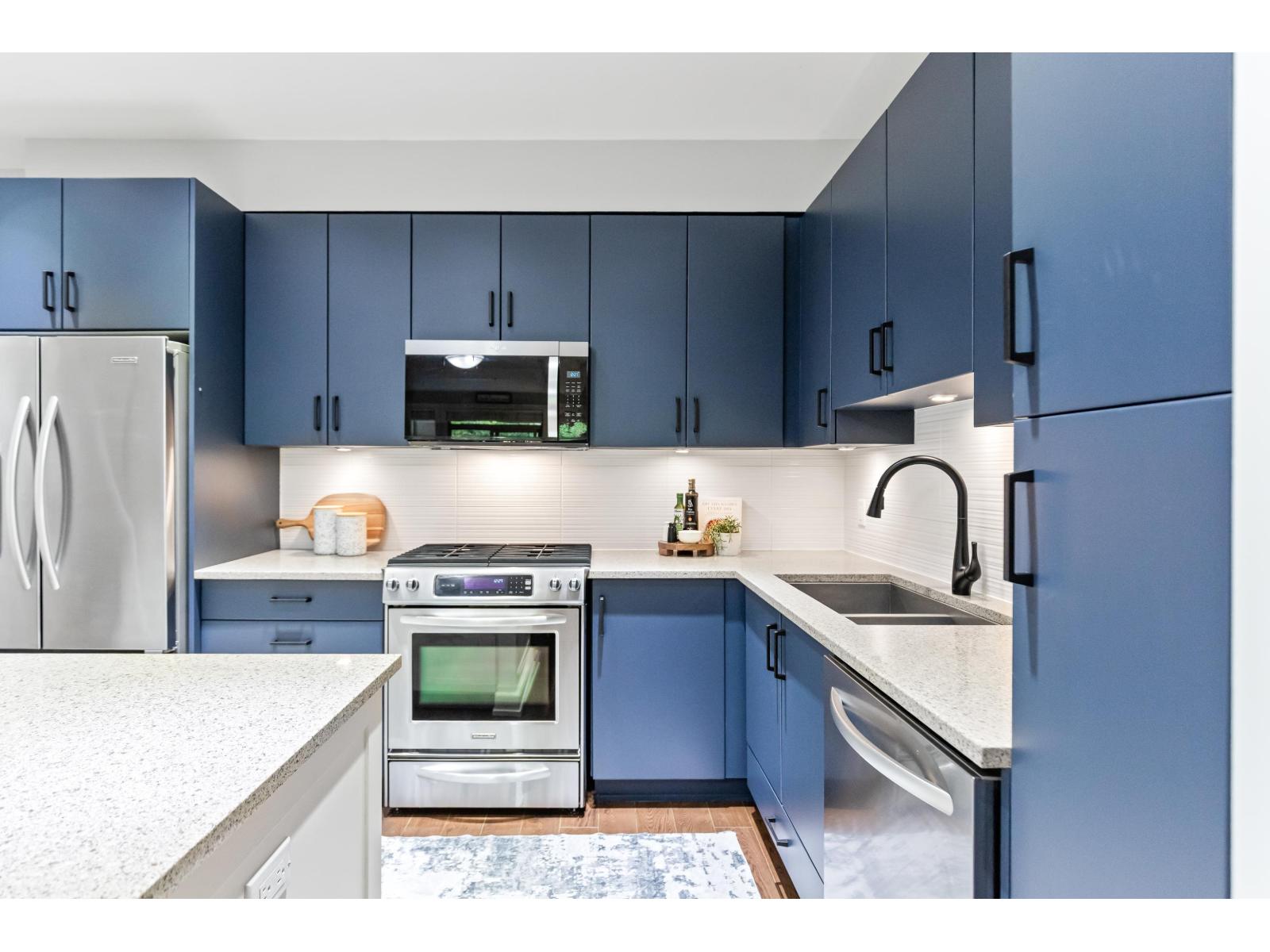 $606.53 MonthlyWelcome to Edgewater, South Surrey's premier gated resort-style community! This beautifully updated 2-bedroom, 2-bath home features bedrooms on opposite sides for privacy and a spacious living area opening to a large covered deck. Updates include fresh paint, new kitchen cabinet doors, custom inserts, hardware, fridge cabinet, and walk-in pantry. The main bath has new counters, sink, and hardware, while the ensuite boasts a stunning walk-in shower with glass barn door plus refreshed cabinetry and laundry closet. A rebuilt floor-to-ceiling shiplap fireplace with modern mantle and electric insert completes the stylish space. Enjoy resort amenities-pool, hot tub, gym, theatre, guest suite-close to shops, golf, and major routes. (id:52823)