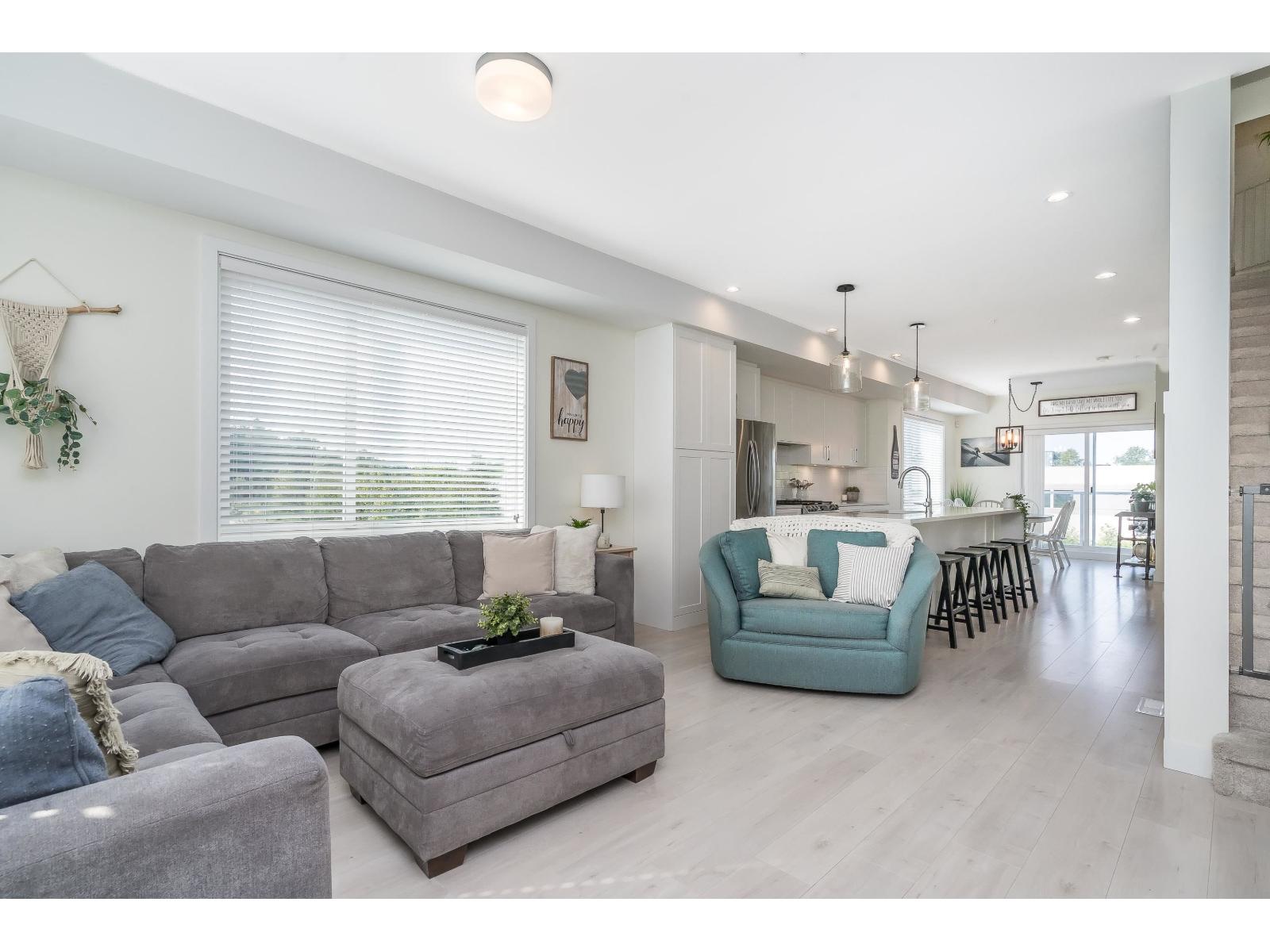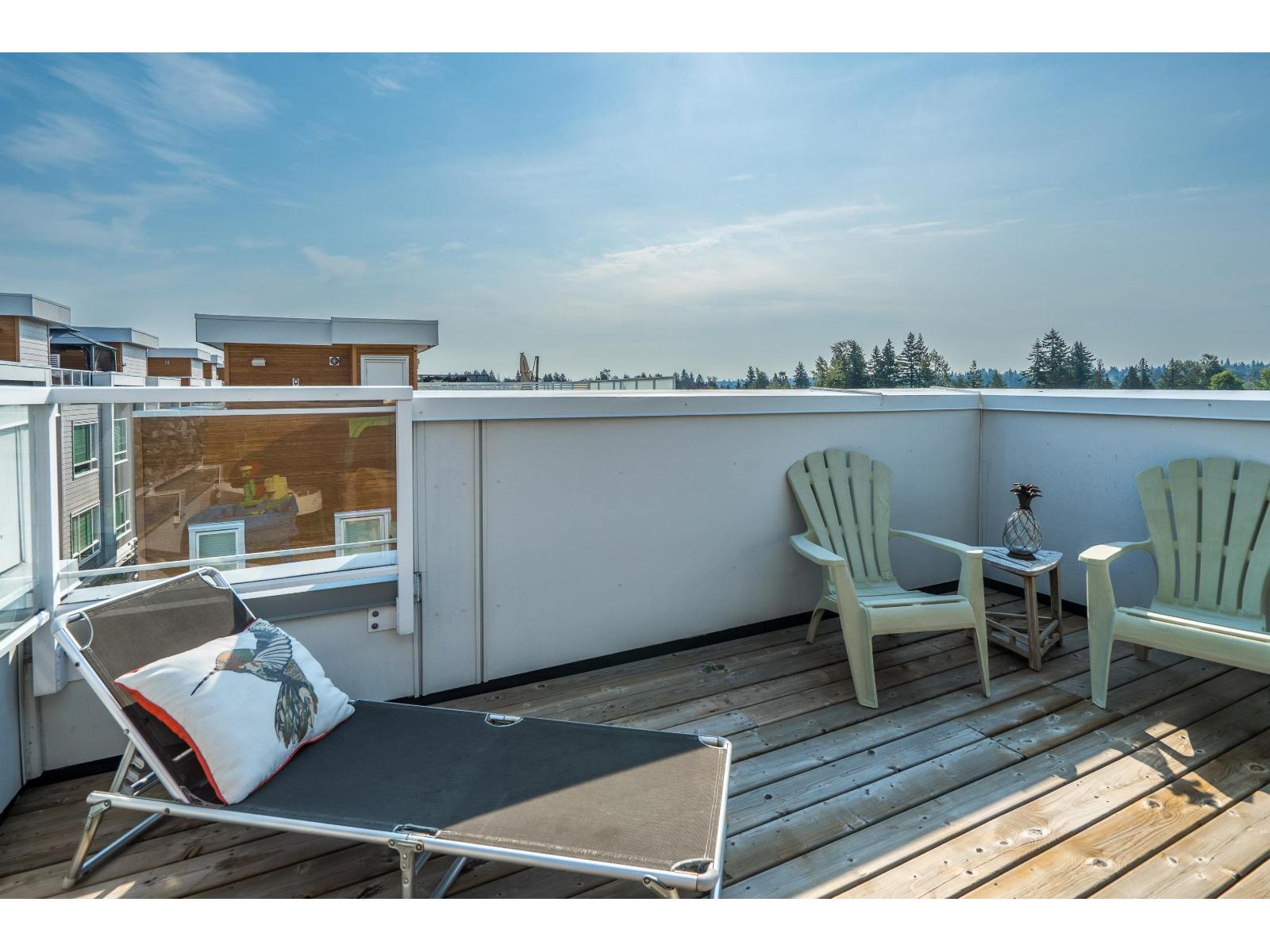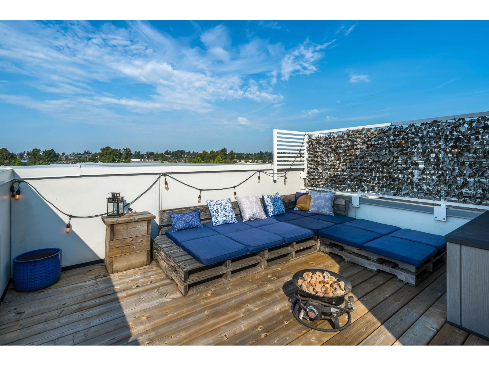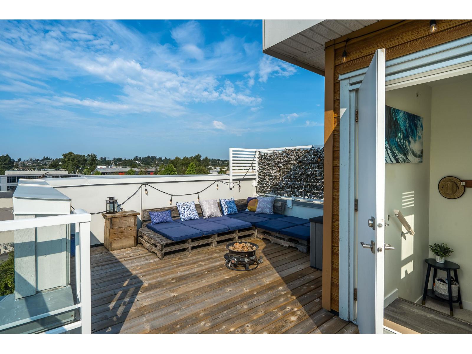 $406.21 MonthlyLIFT Rooftop Townhome - End Unit. This stunning 1,525 sq. ft. home features a full rooftop deck with 360° views of the North Shore Mountains, Mt. Baker, Golden Ears, and Brydon Nature Reserve. The main floor offers an ultra-modern layout with premium laminate flooring, gas range, stainless steel Samsung appliances, island sink with waterfall quartz counters, a powder room, built-in vac, Nest smart thermostat, Telus Smart security system, stylish pendant lighting, and end-unit bump-out with windows for extra natural light. Enjoy a walk-out west-facing deck plus a full heat pump A/C system. Both decks are BBQ-ready with quick-connect natural gas. Long tandem garage, visitor parking next door. 10-min walk to the future SkyTrain station. A luxury home that won't disappoint. 1cat & 1dog ok (id:52823)