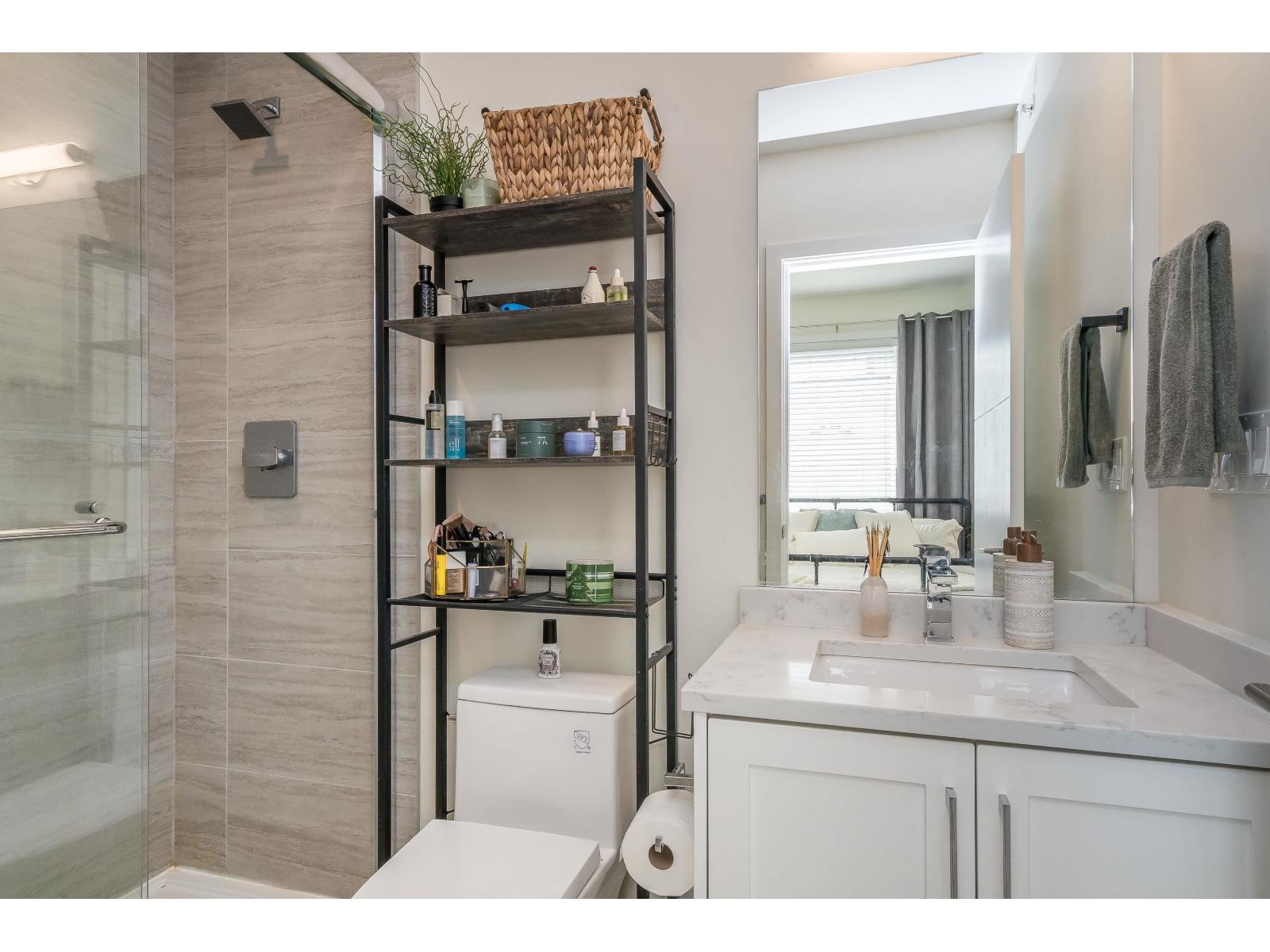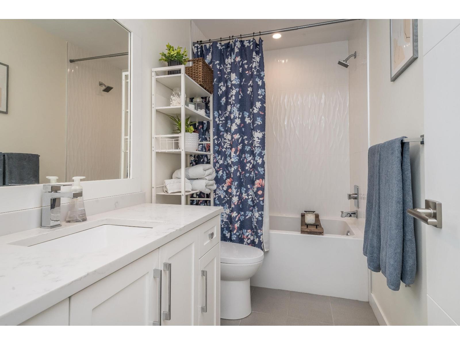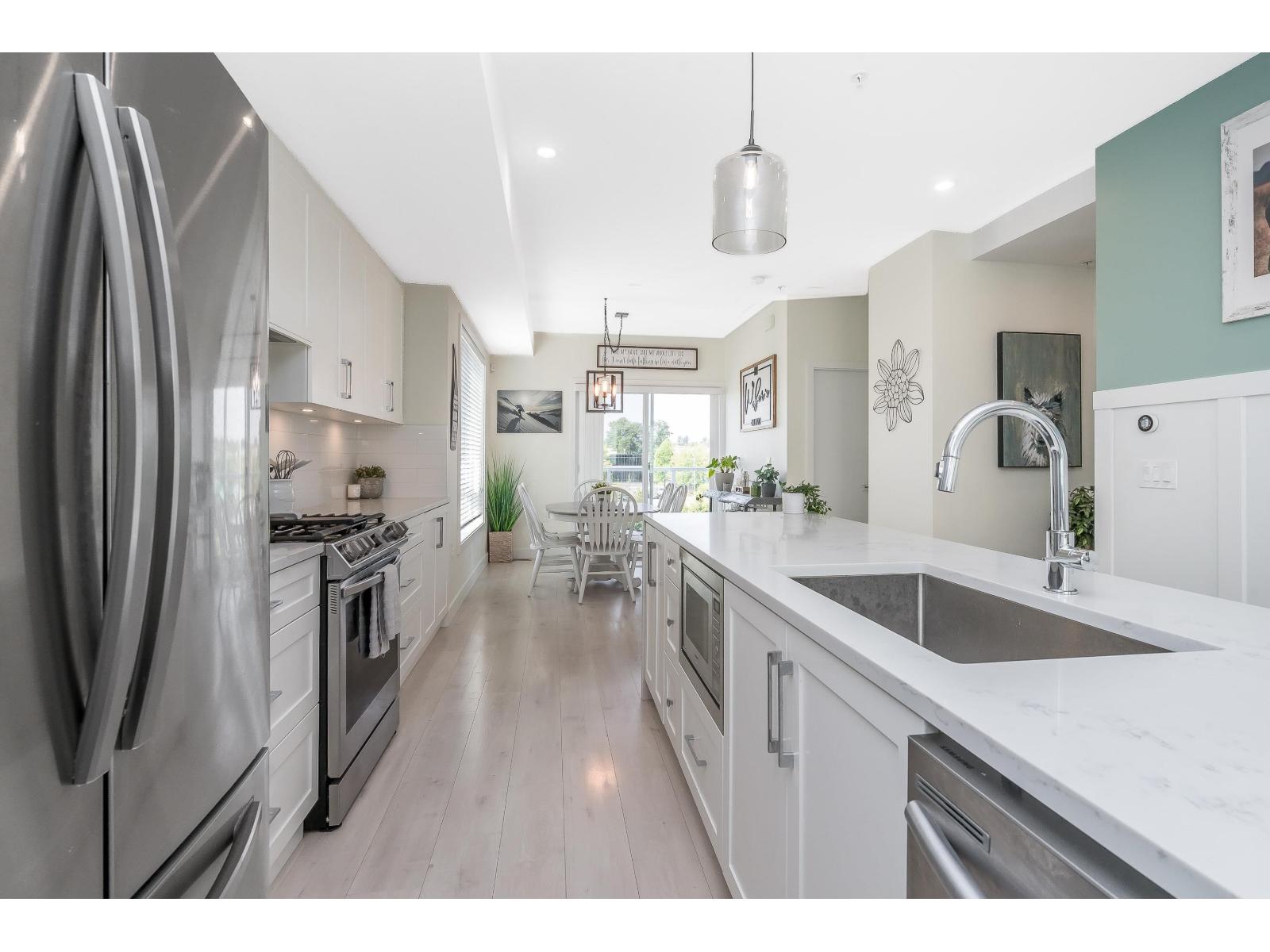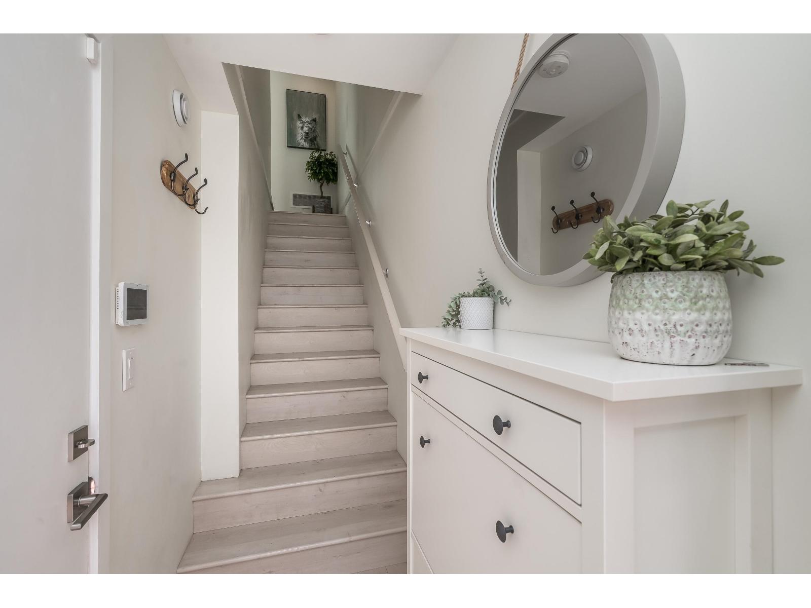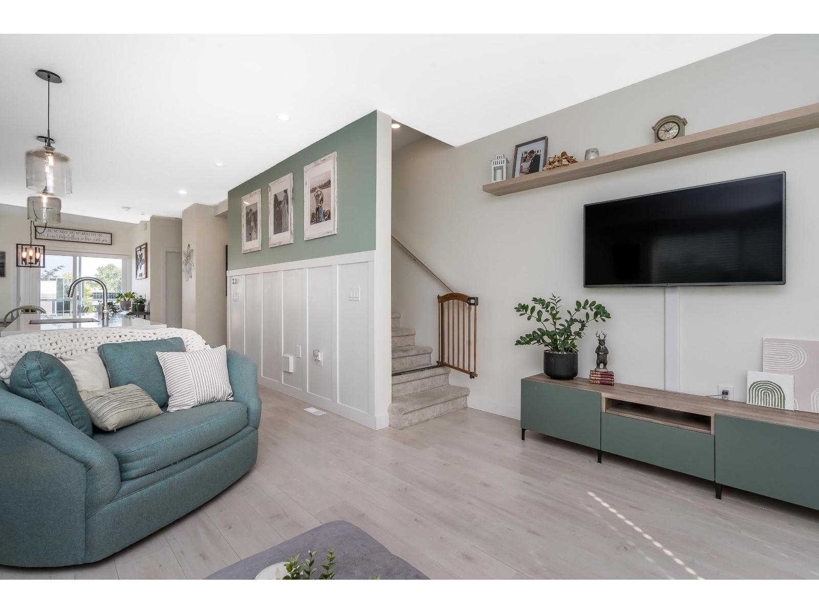 $406.21 MonthlyLIFT Rooftop Townhome - End Unit. This stunning 1,525 sq. ft. home features a full rooftop deck with 360° views of the North Shore Mountains, Mt. Baker, Golden Ears, and Brydon Nature Reserve. The main floor offers an ultra-modern layout with premium laminate flooring, gas range, stainless steel Samsung appliances, island sink with waterfall quartz counters, a powder room, built-in vac, Nest smart thermostat, Telus Smart security system, stylish pendant lighting, and end-unit bump-out with windows for extra natural light. Enjoy a walk-out west-facing deck plus a full heat pump A/C system. Both decks are BBQ-ready with quick-connect natural gas. Long tandem garage, visitor parking next door. 10-min walk to the future SkyTrain station. A luxury home that won't disappoint. 1cat & 1dog ok (id:52823)