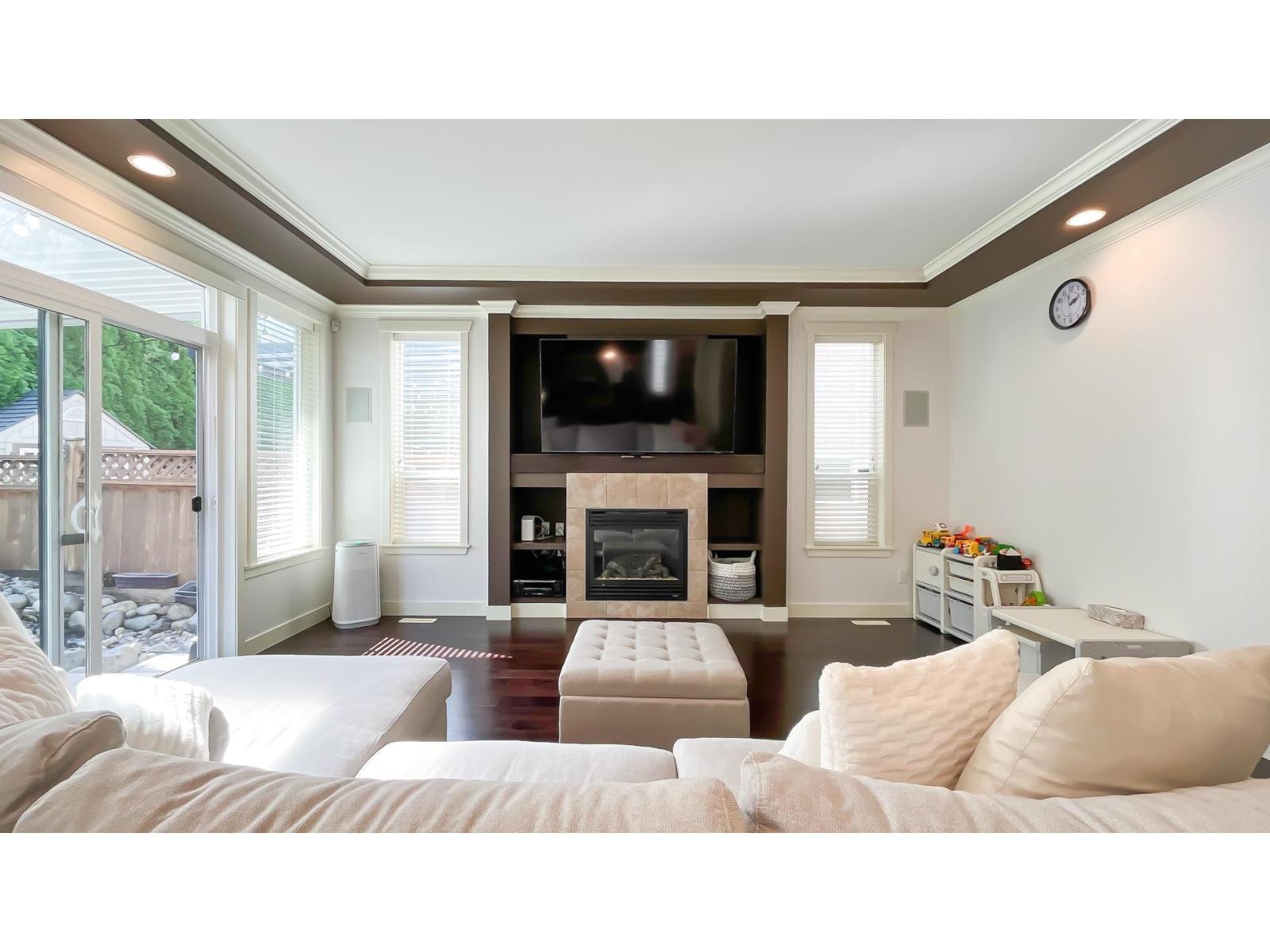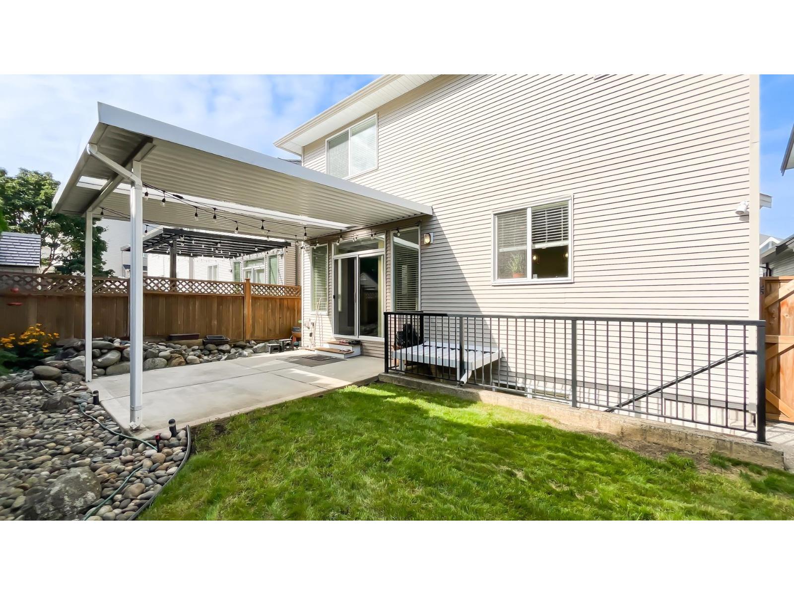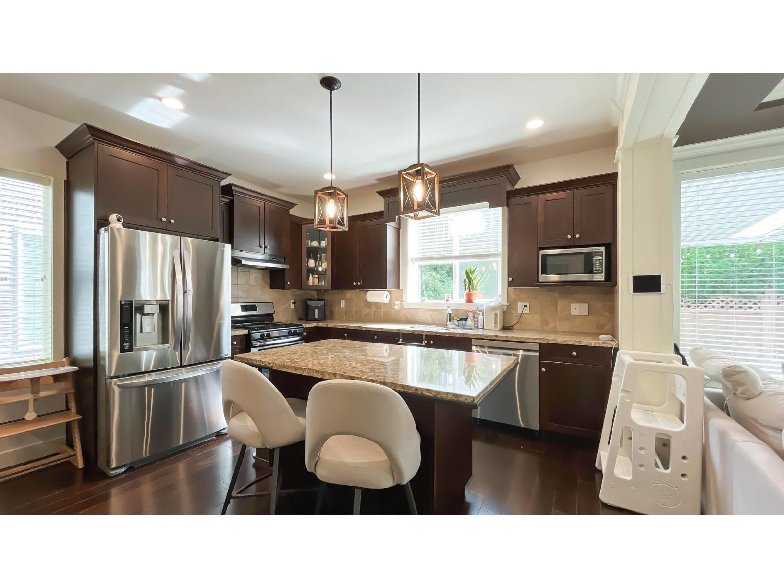 Beautiful Yorkson Home in the heart of Willoughby Heights. This meticulously maintained 4-bed, 4-bath home offers nearly 3,000 sq ft of elegant living across three levels, including a legal 1-bedroom suite with its own entrance-perfec for extended family or rental income. Step into a grand foyer that opens to a spacious den and an open-concept main floor, featuring a chef's kitchen with granite counters, a gas stove, stainless appliances, and a large island. The great room boasts coffered ceilings, gas fireplace, built-in surround sound, and flows to a backyard oasis with covered patio, water feature, gas BBQ hookup, and two Level 2 EV charger outlets in the garage and A/C keeps you cool all summer. Packed with premium upgrades take this home's style and performance to the next level. (id:52823)