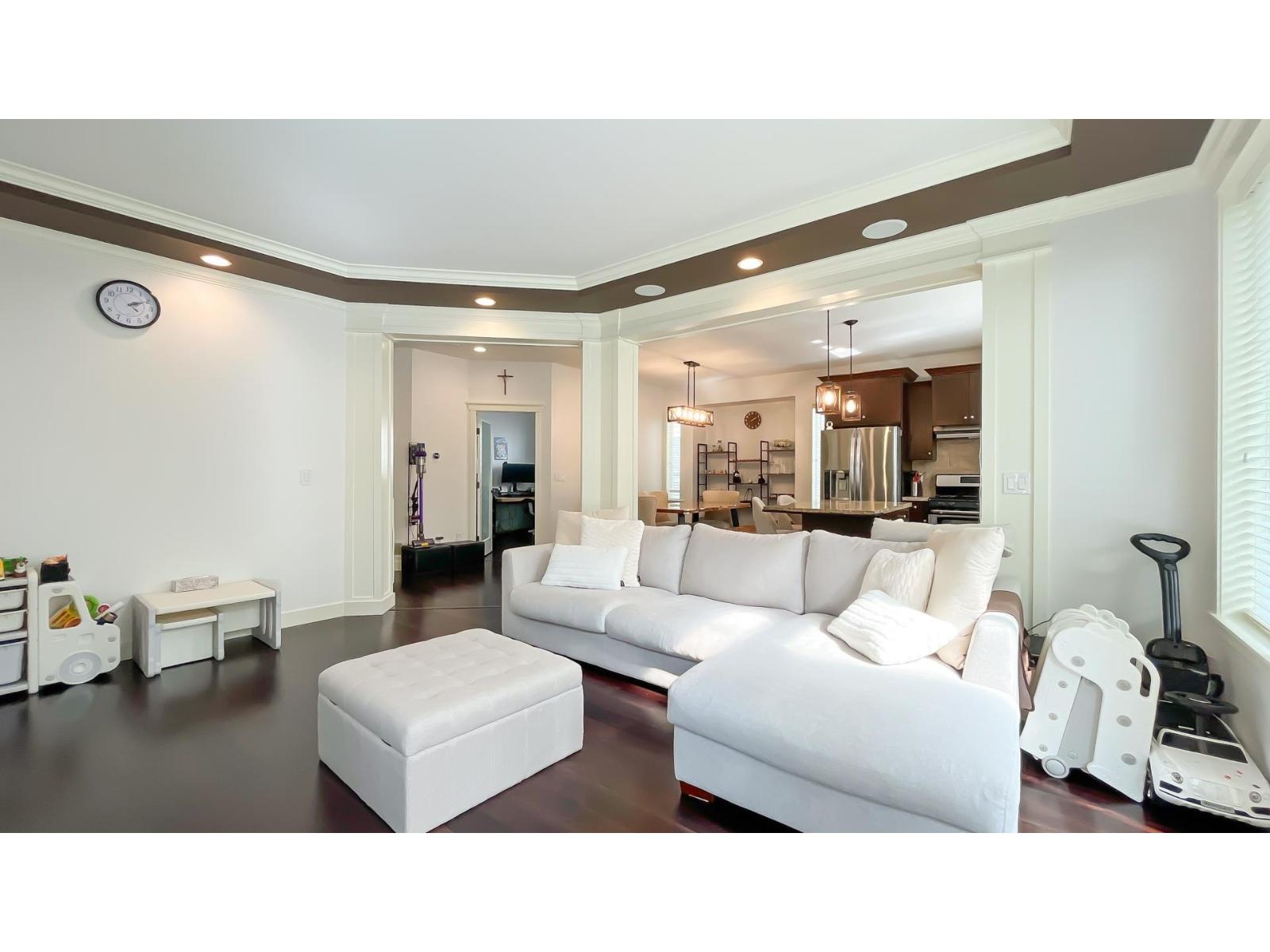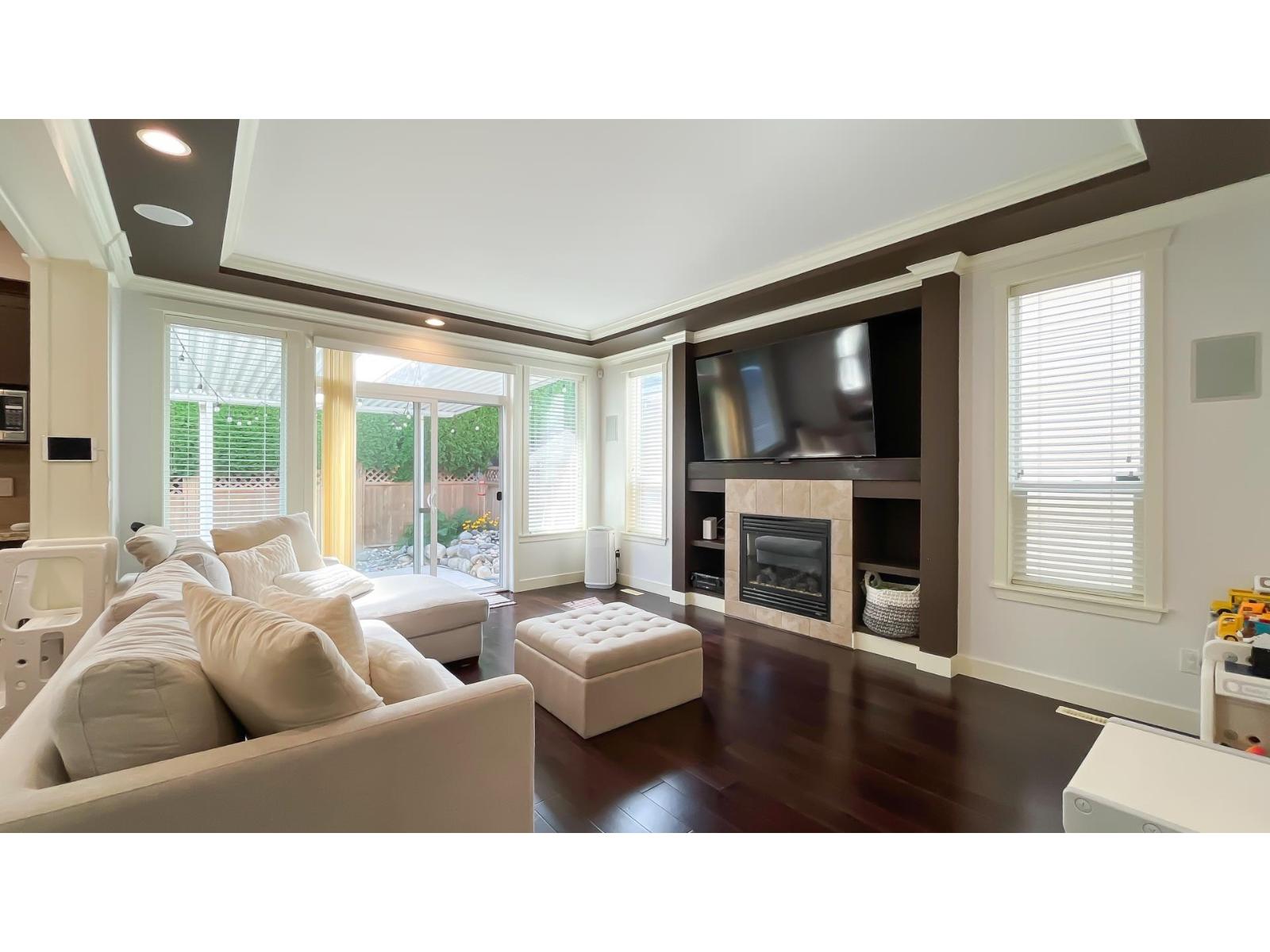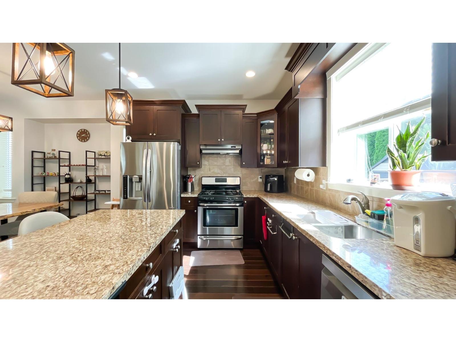 Beautiful Yorkson Home in the heart of Willoughby Heights. This meticulously maintained 4-bed, 4-bath home offers nearly 3,000 sq ft of elegant living across three levels, including a legal 1-bedroom suite with its own entrance-perfec for extended family or rental income. Step into a grand foyer that opens to a spacious den and an open-concept main floor, featuring a chef's kitchen with granite counters, a gas stove, stainless appliances, and a large island. The great room boasts coffered ceilings, gas fireplace, built-in surround sound, and flows to a backyard oasis with covered patio, water feature, gas BBQ hookup, and two Level 2 EV charger outlets in the garage and A/C keeps you cool all summer. Packed with premium upgrades take this home's style and performance to the next level. (id:52823)