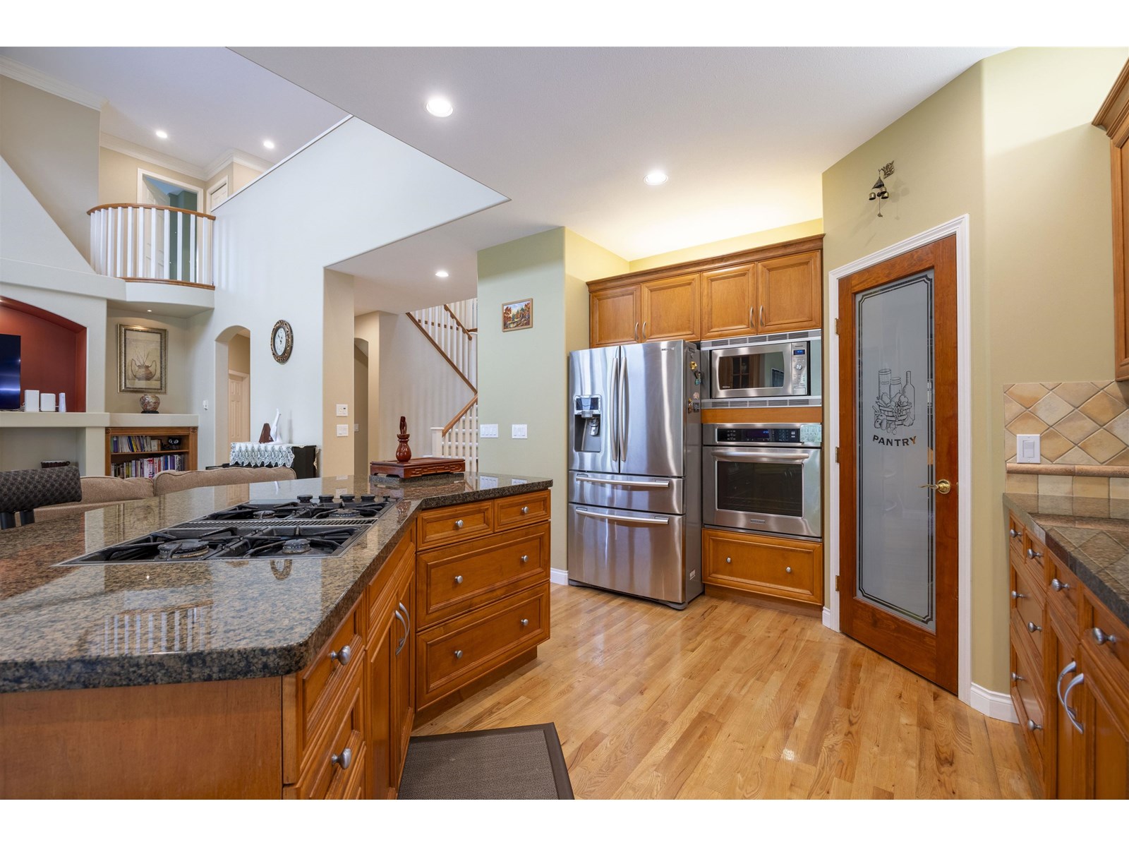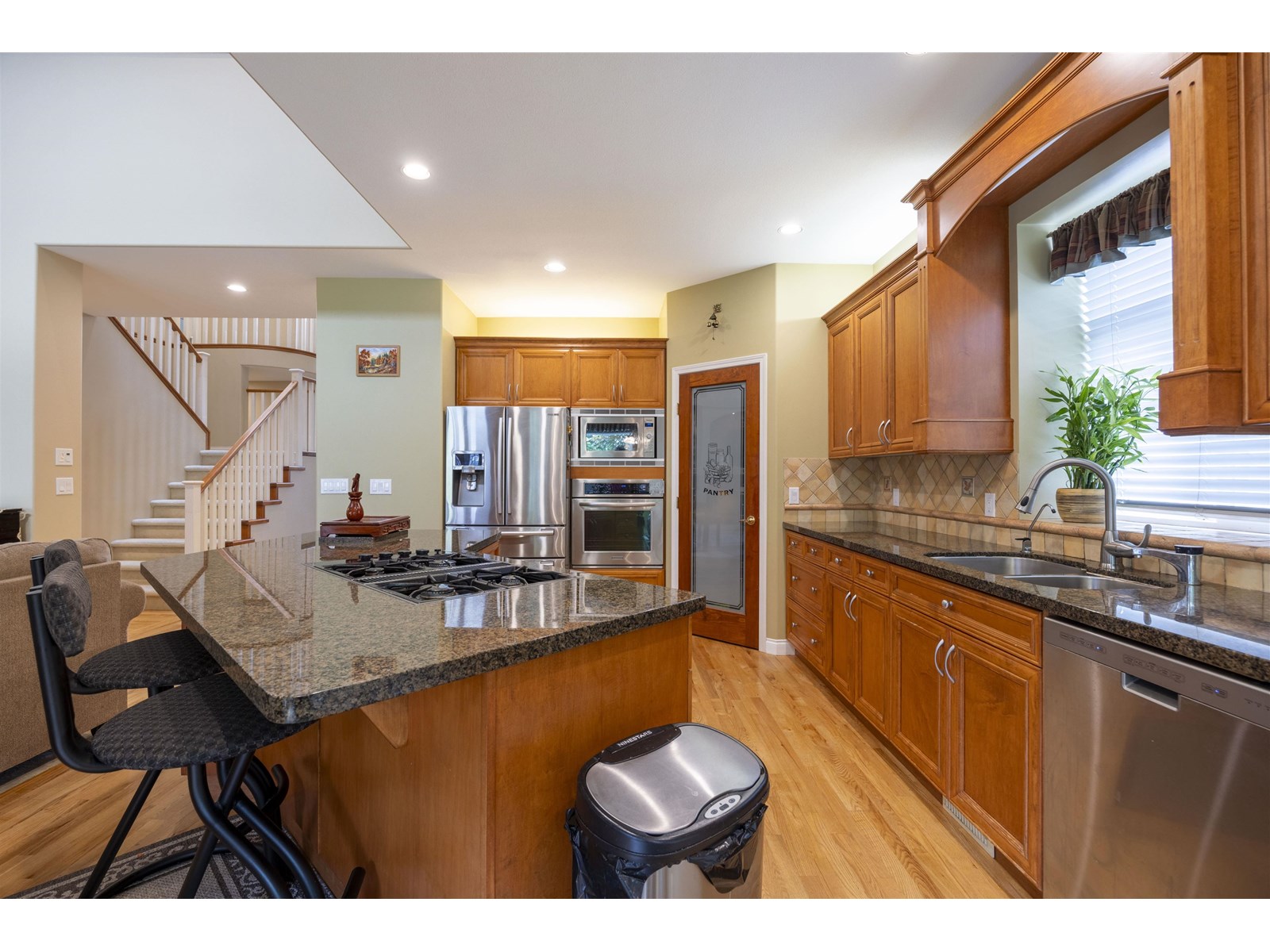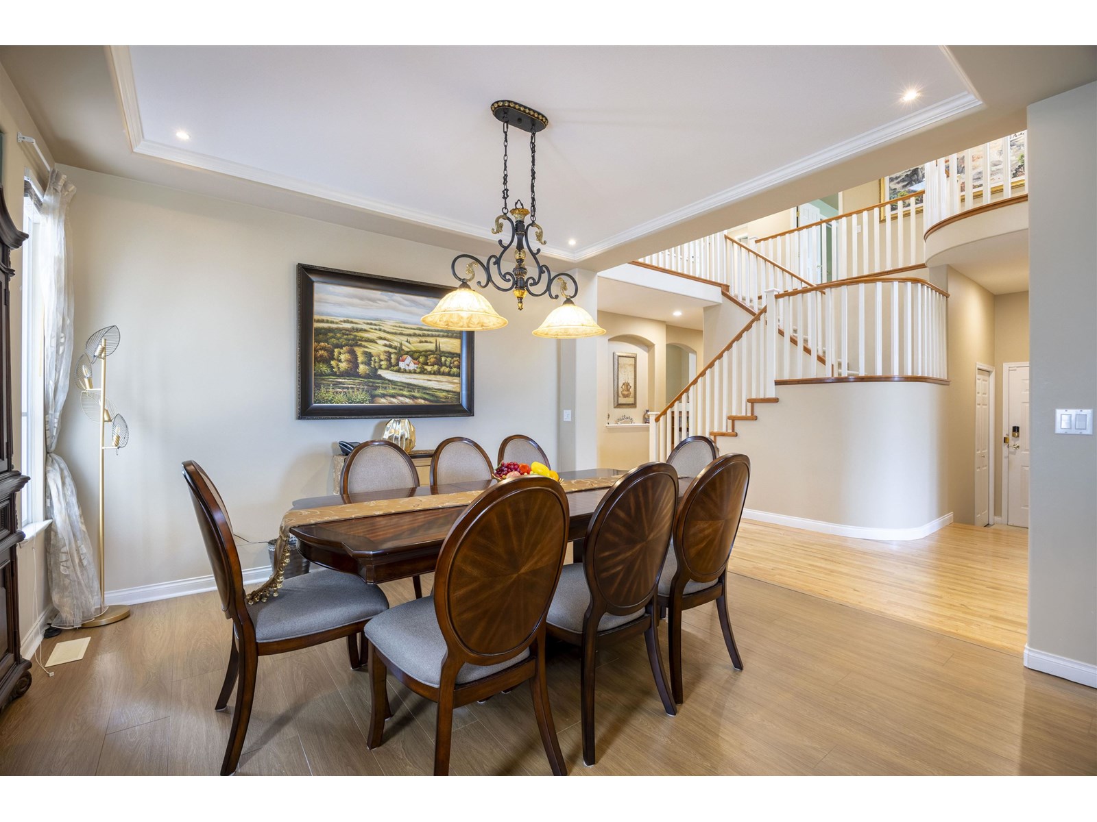 Stunning executive home in Manor Park, one of Walnut Grove's most coveted neighborhoods! Boasting nearly 4,700 sqft of living space, this meticulously maintained home features 5 bedrooms, 5 bathrooms, and a LEGAL 1-bed + den basement suite - perfect for extended family or rental income. The main floor offers a grand foyer, formal living & dining rooms, 17' vaulted ceilings, and a bright, open-concept kitchen and family room with large windows that flood the space with natural light. Primary bedroom on the main includes a spa-like 5-pc ensuite. Upstairs features 3 spacious bedrooms, cheater ensuite, and private balcony. Downstairs includes a bright walk-out 1 BEDROOM +DEN LEGAL suite w/separate entrance & laundry, rec room, full bathroom, and abundant storage. Top Ranking schools... No pres (id:52823)