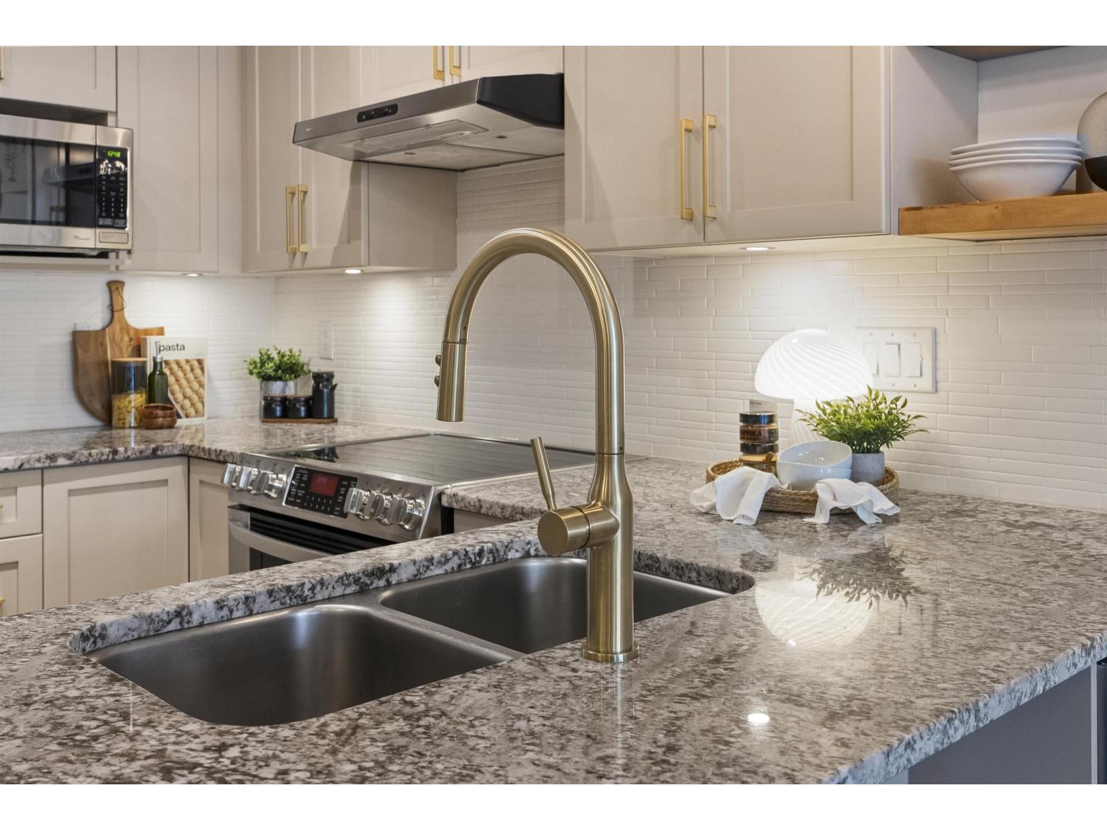 $324.98 MonthlySTUNNING 1 bed, 1 bath condo in sought-after Waterstone! Tucked into a quiet central location in the complex, this home offers gorgeous updates throughout. New wide-plank luxury vinyl floors, 9 ft ceilings and oversized windows flood the space with natural light. This kitchen pops with refinished cabinets, new hardware, stainless appliances, updated fixtures, and a built in wine fridge. Enjoy the walk-in closet in the primary bedroom and the comfort of luxurious heated floors in the bathroom. Full-sized washer & dryer included. Comes with 1 parking stall and a roll-up storage locker right behind it for easy access.. Pet friendly up to 2 (combined weight of 44 lbs). Stylish, move-in ready living with incredible amenities at your doorstep including gym, pool, hot tub, sauna, theatre & more! (id:52823)
