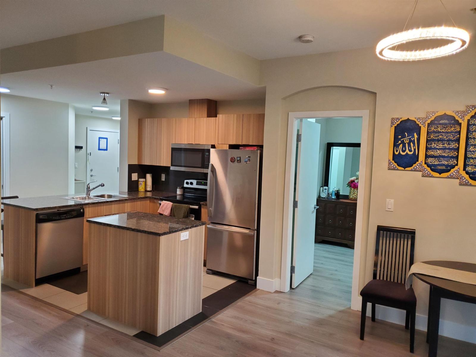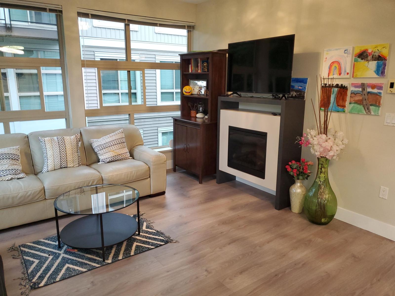 $528.72 MonthlySHOWINGS BY APPOINTMENT . PLEASE HAVE YOUR AGENT MAKE THE APPOINTMENT FOR YOU. Quiet side of building facing inner courtyard, this spacious 3 bedroom 2 full bathroom corner unit is waiting for you and your family. BRAND NEW KITCHEN CABINETS, SS APPLIANCES & LAMINATE FLOORING THROUGHOUT. Large laundry room with pantry, 2 parking stalls and a storage locker. Enjoy the Hotel like ameneties at the Salus Aqua Club; full-out fitness centre, recreation room and lounge, Yoga room , steam room, sauna, outdoor pool, rooftop with BBQ. Centrally located and minutes to schools. Scottsdale Mall, Strawberry Hill Mall, Home Depot, Walmart, banks and a multitude of restaurants. Easy access to public transportation , Highway 91 and 99. Pets allowed. Don't let this one slip by. (id:52823)