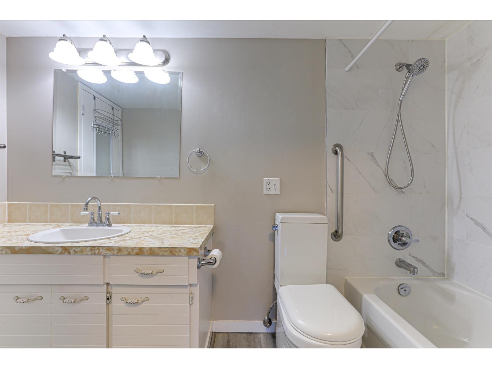 $537.21 MonthlyNice clean unit in well managed building in the heart of White Rock. Walking distance to shopping, park, bus and other amenities. Large master bedroom with ensuite. Bathroom has new tub, surround and toilet. New laminate throughout with waterproof laminate in kitchen and bathroom. Bay window off dining area gives lots of light to suite. Large amenities room has pool table. Beautiful outdoor pool has a secure fence around to keep out unwanted guests. Open House Sept 13 2-4pm, Sept 14 3-5pm. (id:52823)