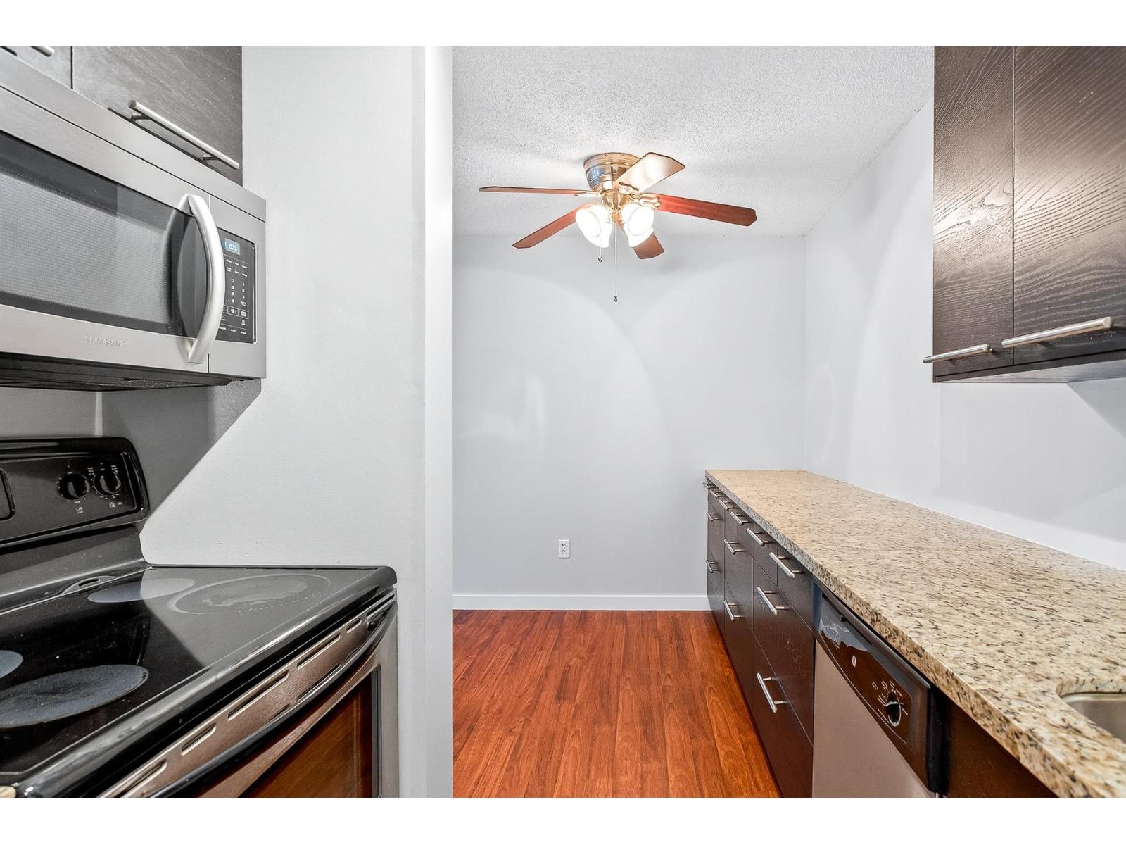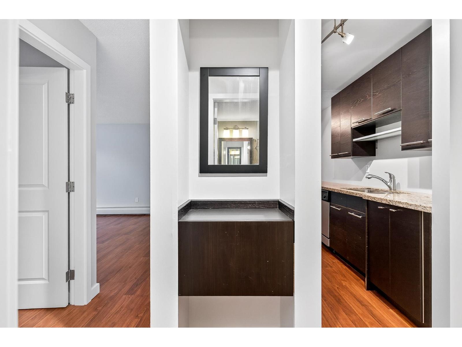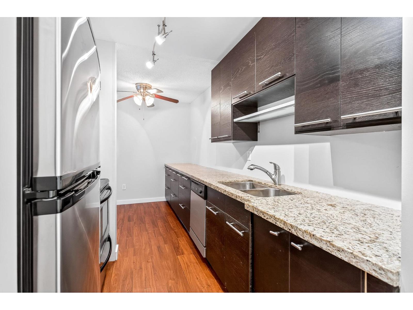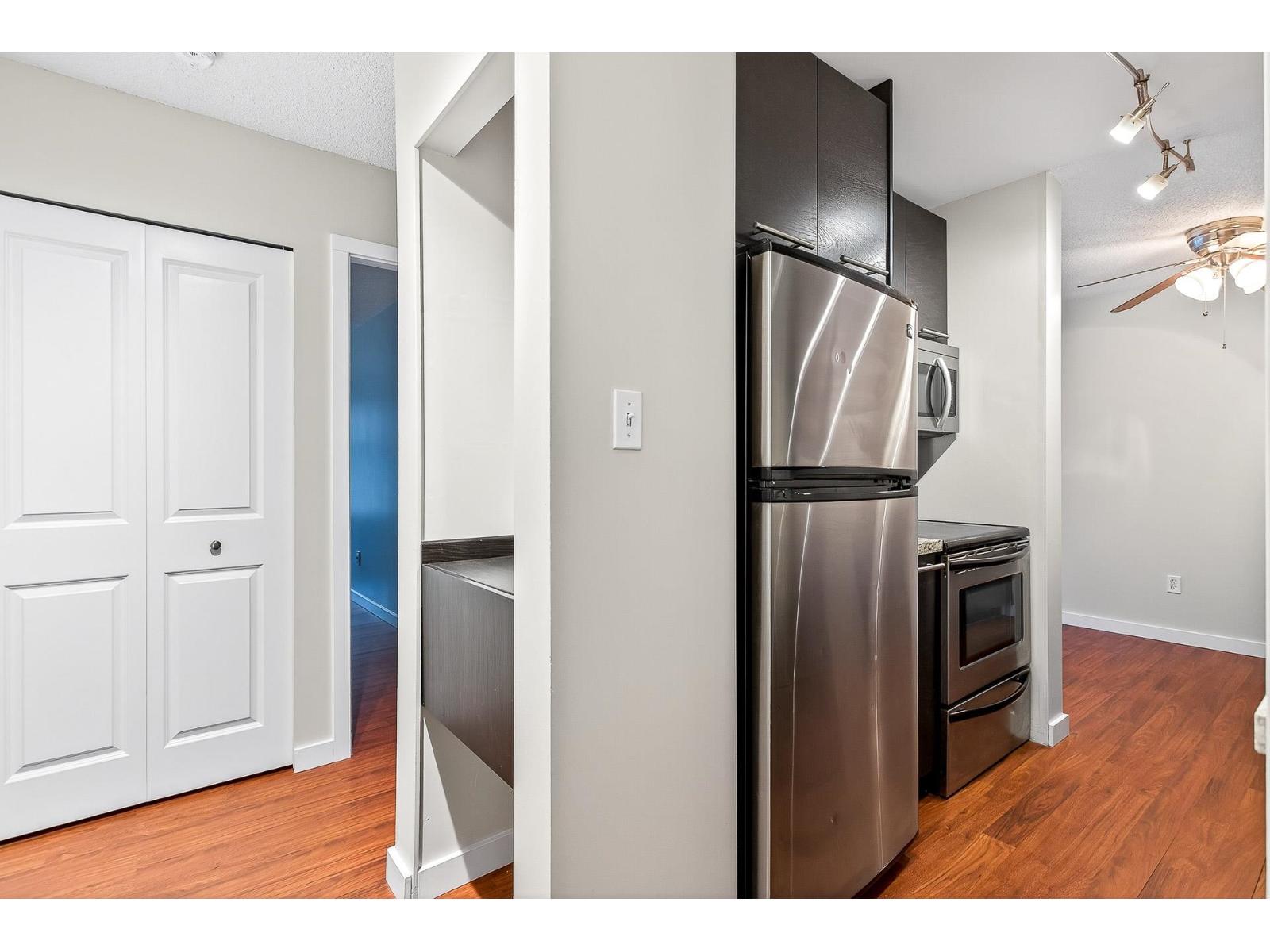 $410 MonthlyINVESTORS and FIRST TIME BUYERS alert!! One of the best values in South Surrey. This tastefully renovated 1 bedroom 1 bathroom condo just minutes from Semiahmoo mall is the one you have been waiting for. 670 sq/ft with a huge primary bedroom, bright living room and a galley kitchen with modern dark kitchen cabinets, Stainless steel appliances and granite countertops. There is even a large in-suite storage room as well as a storage locker, 1 parking space and an outdoor pool to enjoy in the summer months. This central location is an easy walking distance to great shopping, dining and transit too. (Some pictures are digitally staged) (id:52823)