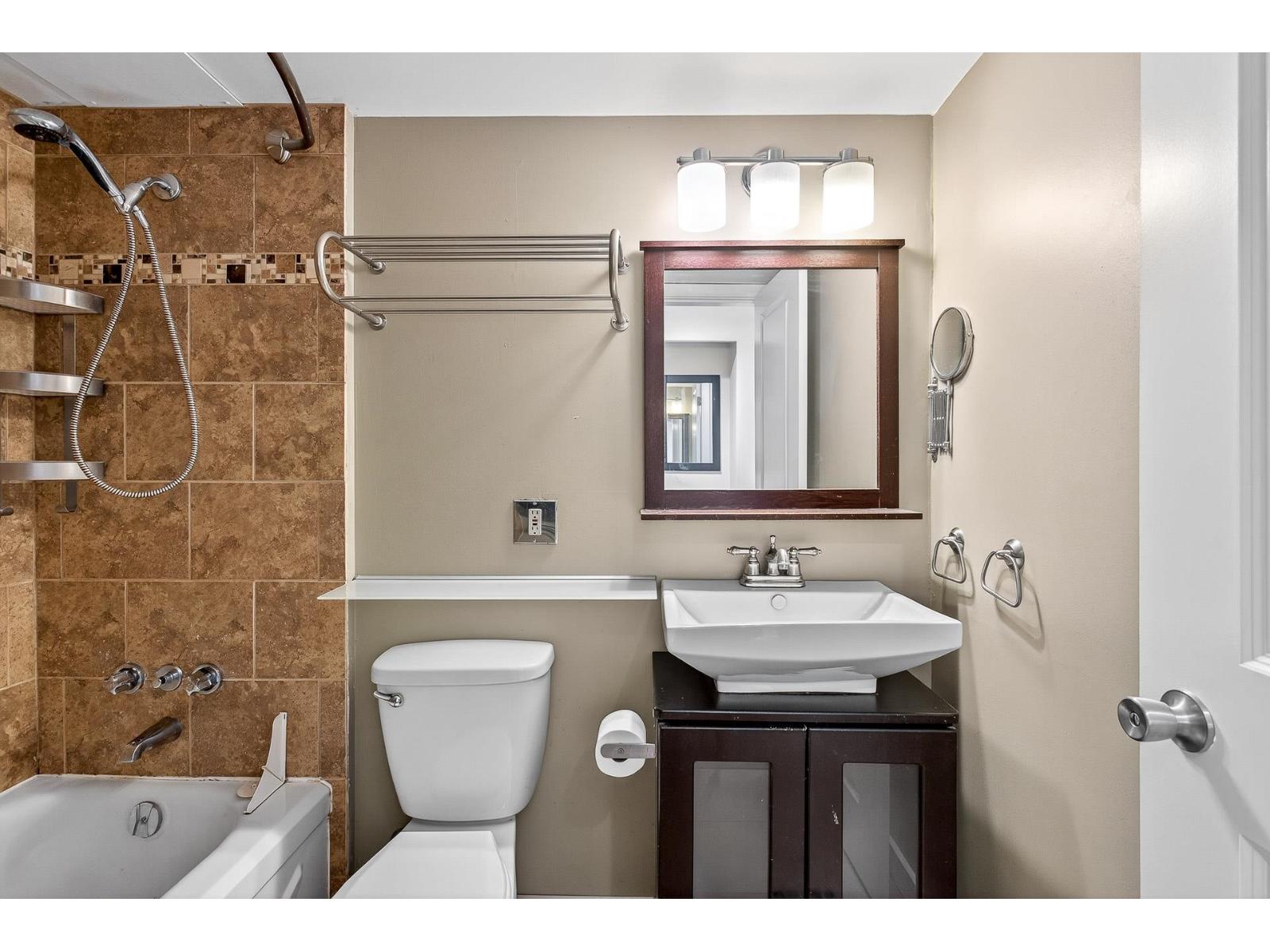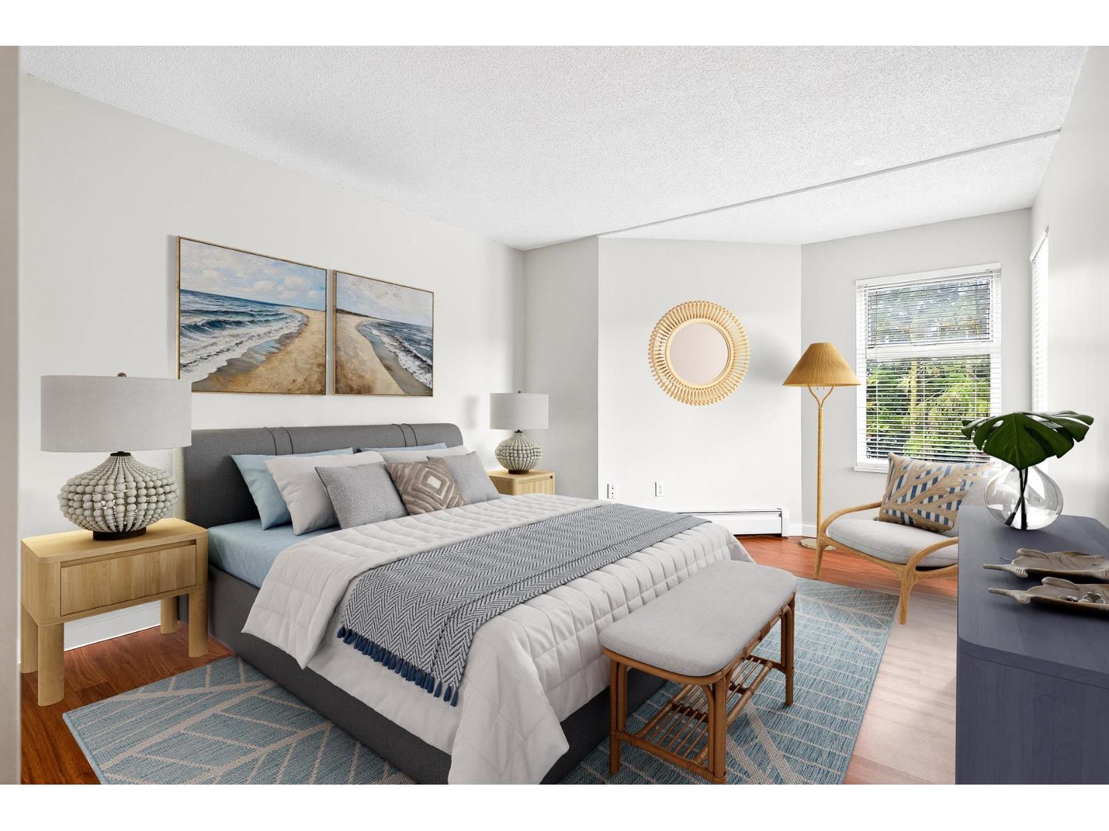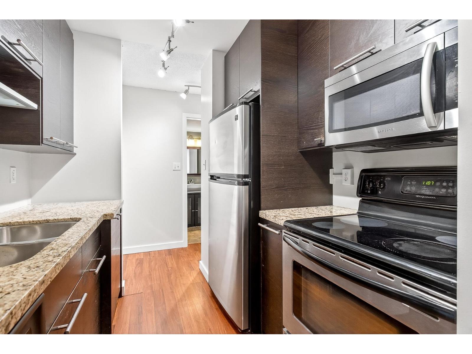 $410 MonthlyINVESTORS and FIRST TIME BUYERS alert!! One of the best values in South Surrey. This tastefully renovated 1 bedroom 1 bathroom condo just minutes from Semiahmoo mall is the one you have been waiting for. 670 sq/ft with a huge primary bedroom, bright living room and a galley kitchen with modern dark kitchen cabinets, Stainless steel appliances and granite countertops. There is even a large in-suite storage room as well as a storage locker, 1 parking space and an outdoor pool to enjoy in the summer months. This central location is an easy walking distance to great shopping, dining and transit too. (Some pictures are digitally staged) (id:52823)