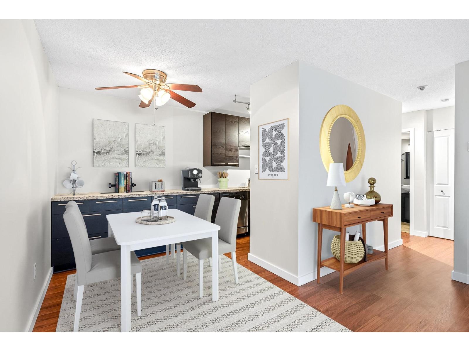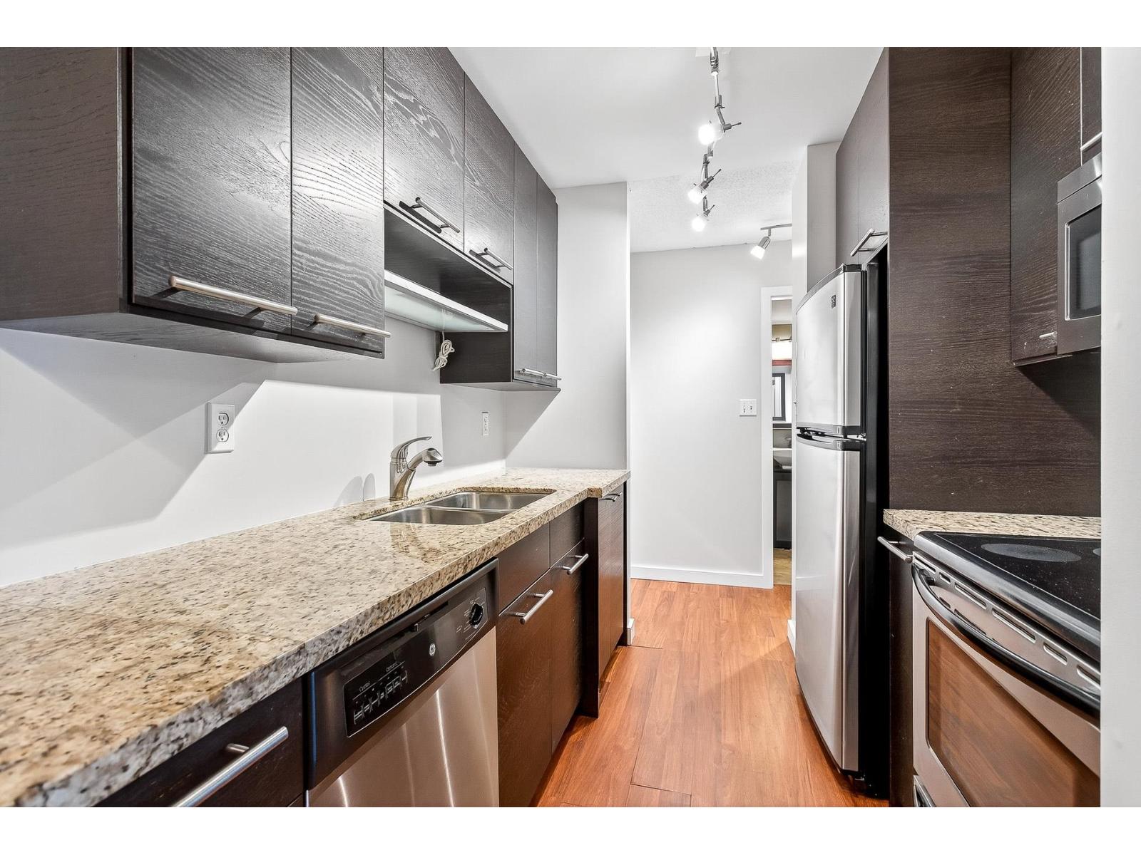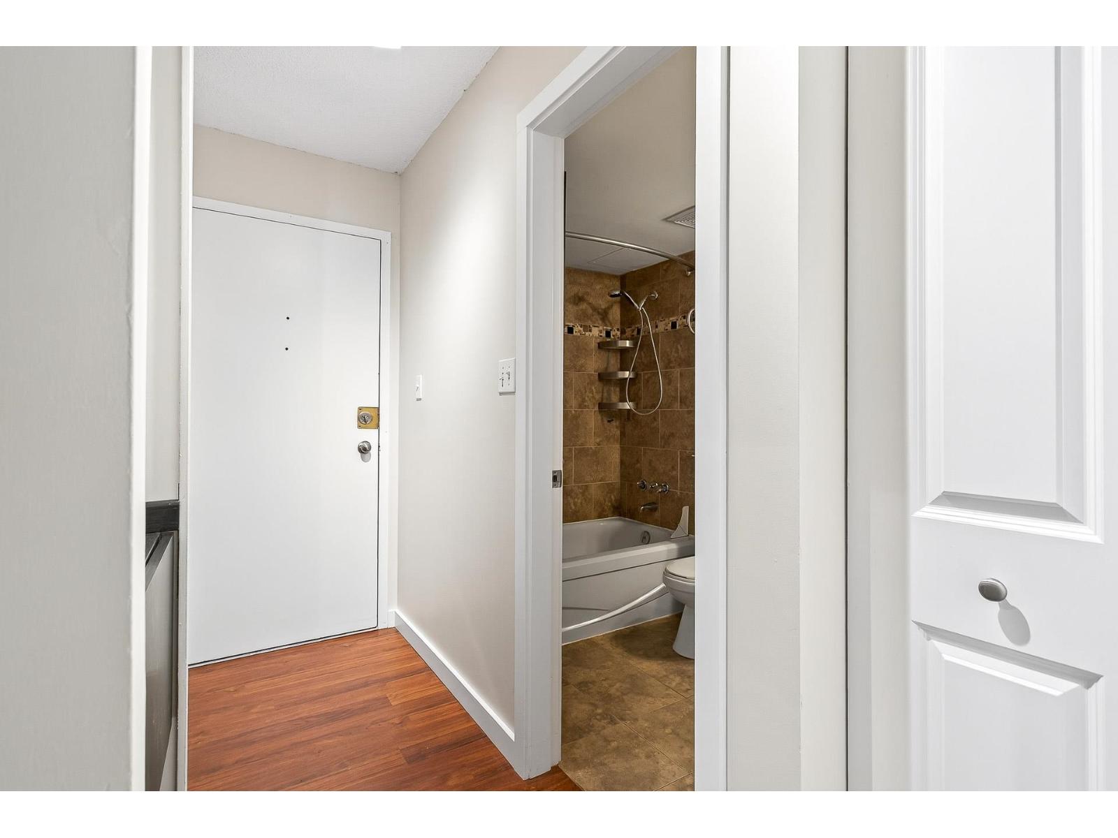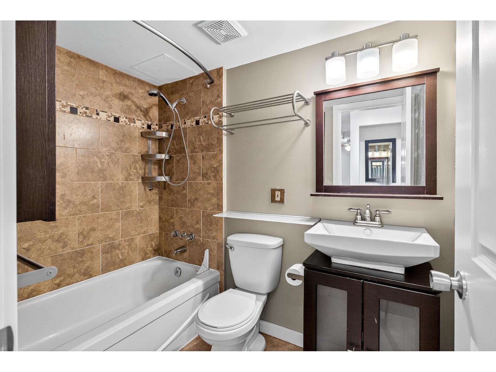 $410 MonthlyINVESTORS and FIRST TIME BUYERS alert!! One of the best values in South Surrey. This tastefully renovated 1 bedroom 1 bathroom condo just minutes from Semiahmoo mall is the one you have been waiting for. 670 sq/ft with a huge primary bedroom, bright living room and a galley kitchen with modern dark kitchen cabinets, Stainless steel appliances and granite countertops. There is even a large in-suite storage room as well as a storage locker, 1 parking space and an outdoor pool to enjoy in the summer months. This central location is an easy walking distance to great shopping, dining and transit too. (Some pictures are digitally staged) (id:52823)