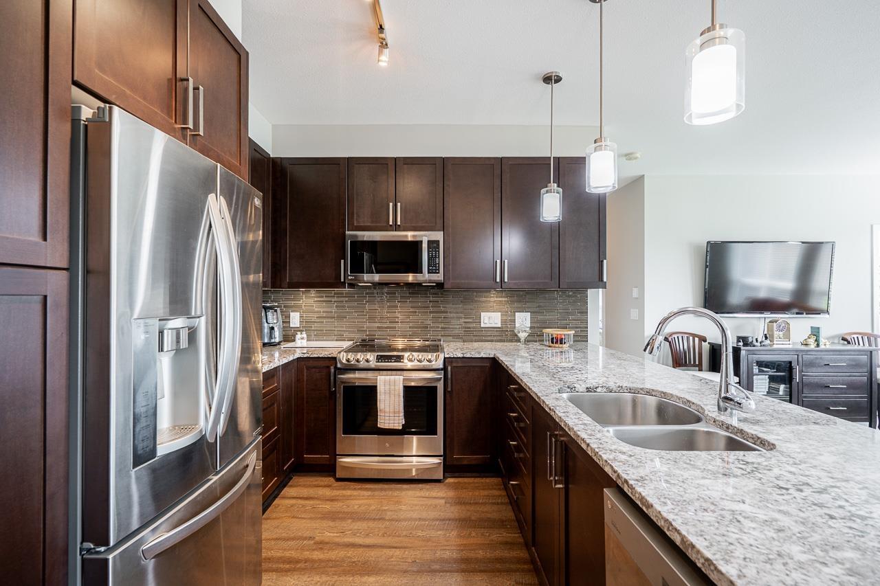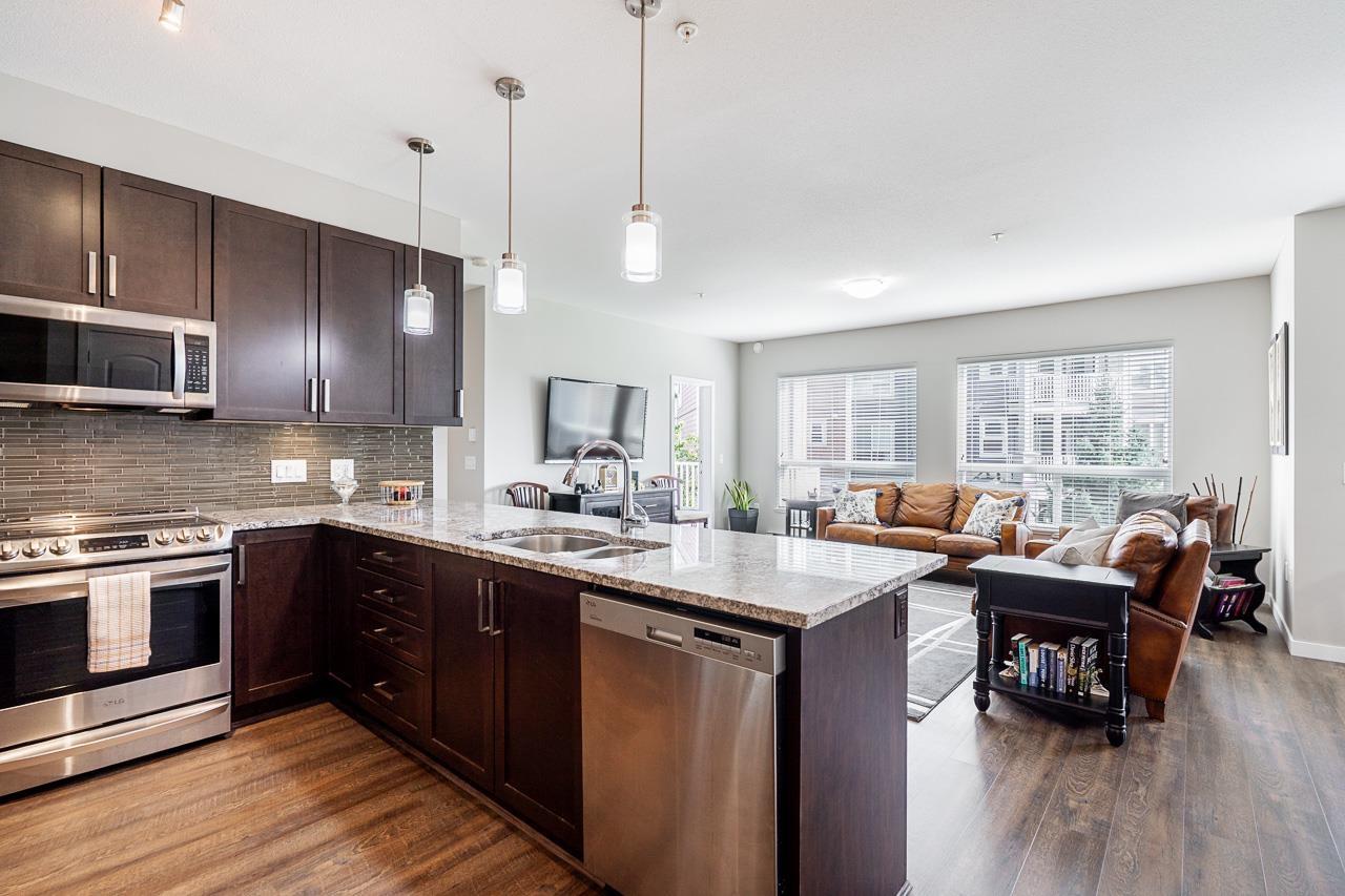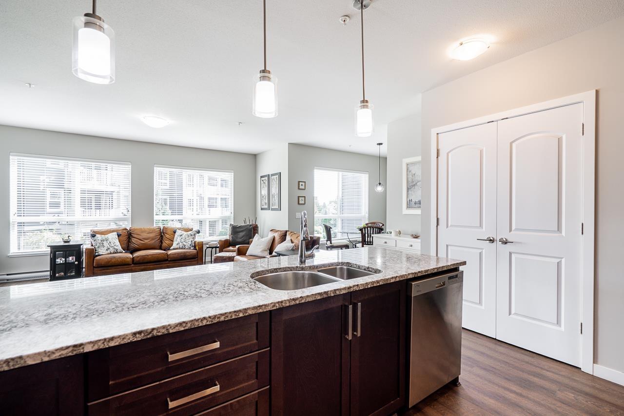 $655.77 MonthlyAward winning 'WATERSTONE' with deluxe facilities including pool & full gym! CORNER UNIT, 2 bedrooms + den, 2 bathrooms with wrap around deck facing greenspace! Oversized windows, high end kitchen featuring granite counters, S/S appliances and kitchen island with eating bar. Primary bedroom w/huge walk-in closet, 2nd 'corner' bedroom w/windows on 2 walls, huge wrap around deck, 2 underground secured parking spots & storage locker. 15,000 sq. ft. clubhouse, 60' indoor swimming pool, hot tub and saunas as well as pool table, 17 seat movie theater room, full gym! Great location close to future skytrain, Langley shopping, schools, and more. This is the one! (id:52823)