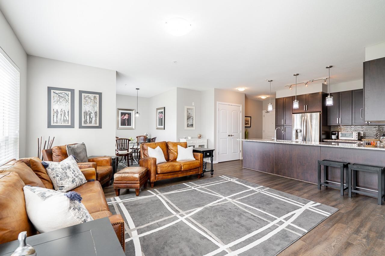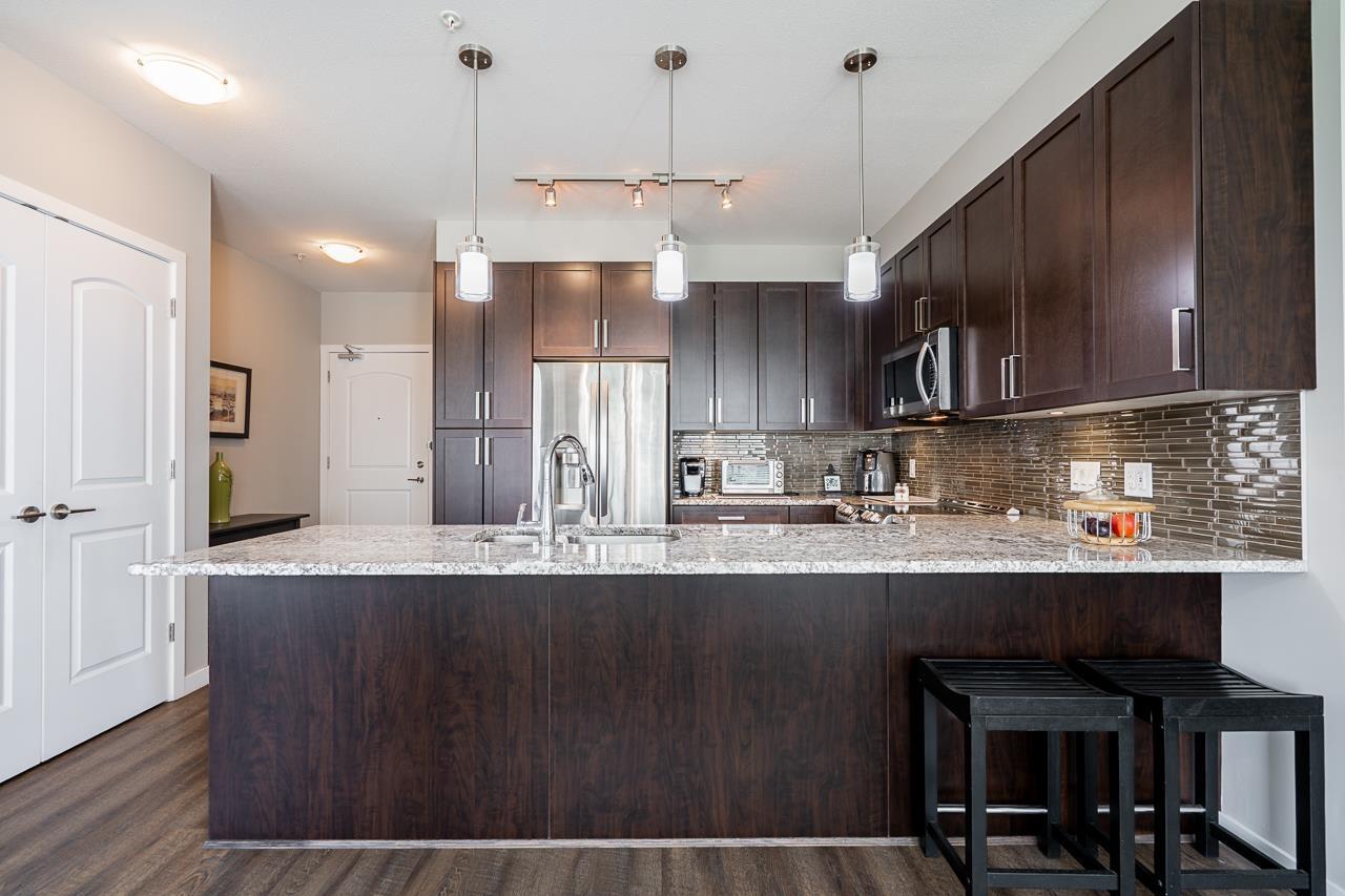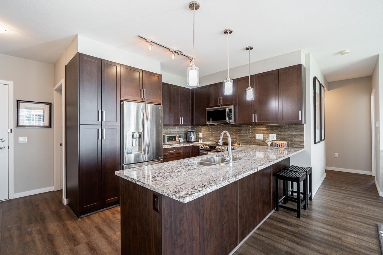 $655.77 MonthlyAward winning 'WATERSTONE' with deluxe facilities including pool & full gym! CORNER UNIT, 2 bedrooms + den, 2 bathrooms with wrap around deck facing greenspace! Oversized windows, high end kitchen featuring granite counters, S/S appliances and kitchen island with eating bar. Primary bedroom w/huge walk-in closet, 2nd 'corner' bedroom w/windows on 2 walls, huge wrap around deck, 2 underground secured parking spots & storage locker. 15,000 sq. ft. clubhouse, 60' indoor swimming pool, hot tub and saunas as well as pool table, 17 seat movie theater room, full gym! Great location close to future skytrain, Langley shopping, schools, and more. This is the one! (id:52823)