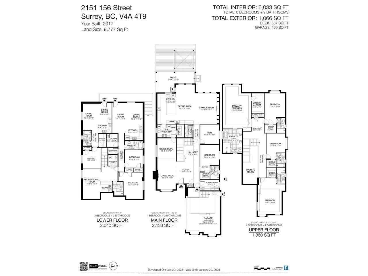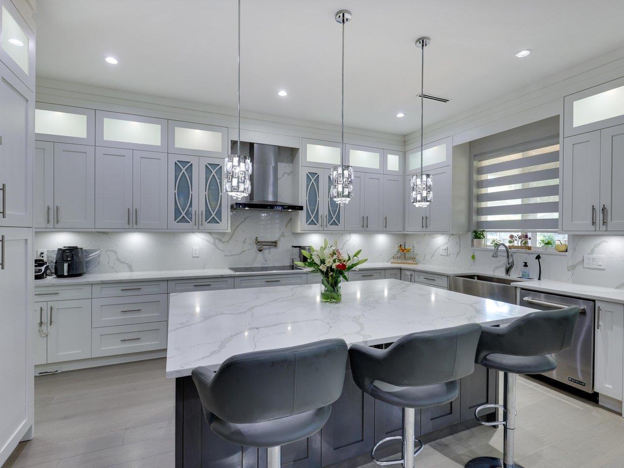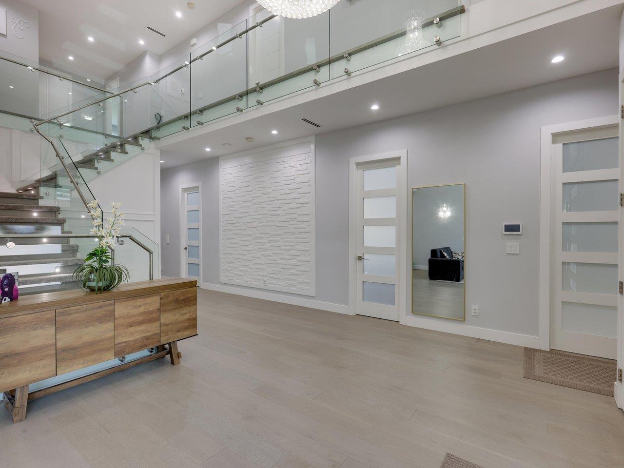 Breathtaking home in South Surrey's King George Corridor! This nearly 6,200+ sq ft, 8-bed, 8.5 bath masterpiece sits on a 9,700+ sq ft lot just minutes from White Rock Beach, top schools, and shopping. Features include a chef's kitchen with JennAir & Samsung appliances, wok kitchen, main-floor guest suite, office, and formal living/dining. Upstairs offers 4 bedrooms with ensuite and 1 bed with Ensuite on Main Level which is separate from the home office. The basement boasts a home theatre, wet bar, steam shower, rec room, and a 2-bed legal suite and a bonus separate 1 bed suite. Extras: radiant heat, A/C, smart home system, EV plug, and room for a backyard pool. Luxury, comfort, and income potential in one exceptional home! (id:52823)
