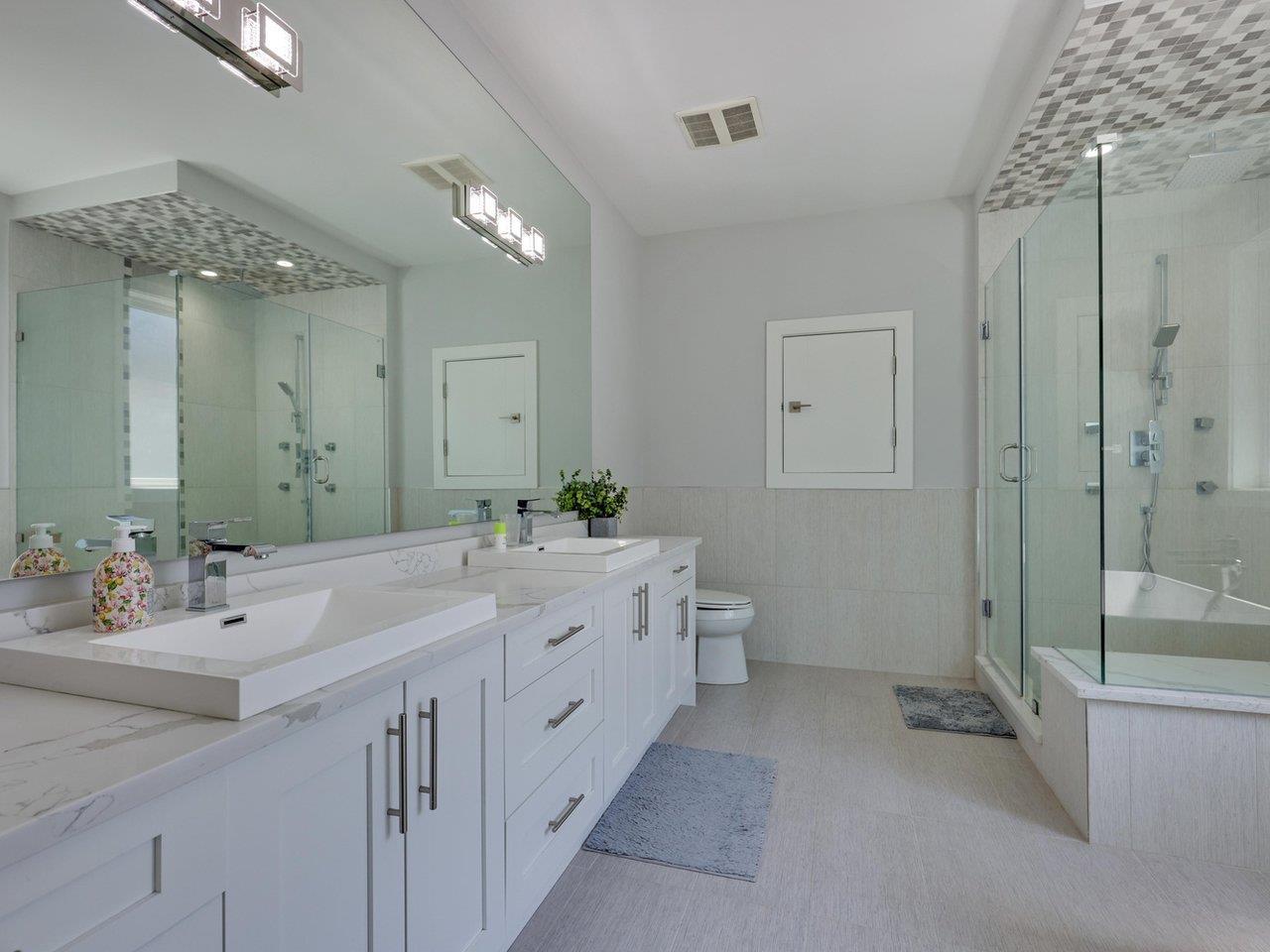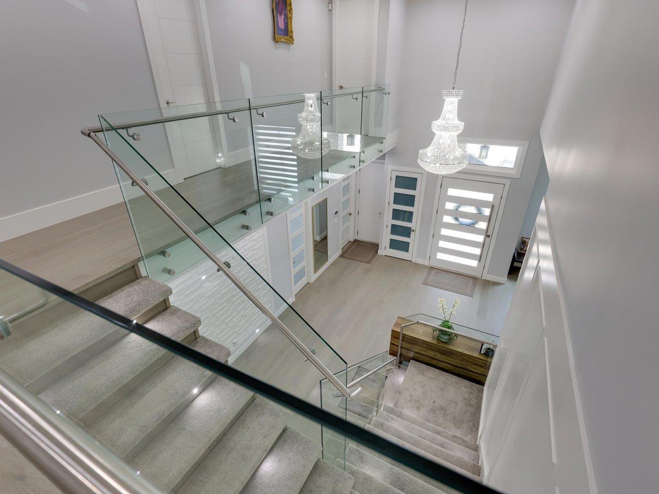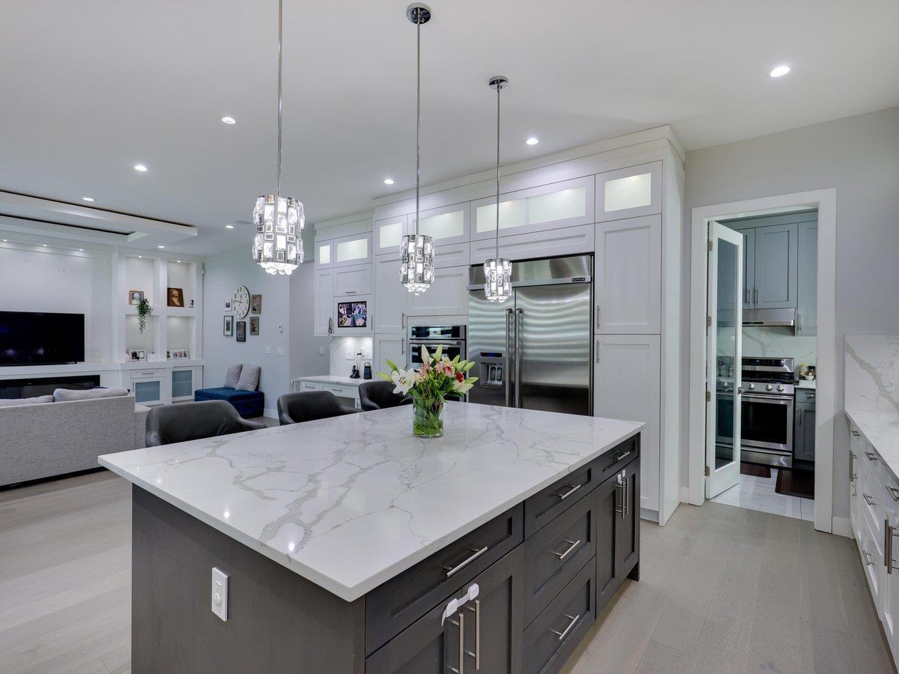 Breathtaking home in South Surrey's King George Corridor! This nearly 6,200+ sq ft, 8-bed, 8.5 bath masterpiece sits on a 9,700+ sq ft lot just minutes from White Rock Beach, top schools, and shopping. Features include a chef's kitchen with JennAir & Samsung appliances, wok kitchen, main-floor guest suite, office, and formal living/dining. Upstairs offers 4 bedrooms with ensuite and 1 bed with Ensuite on Main Level which is separate from the home office. The basement boasts a home theatre, wet bar, steam shower, rec room, and a 2-bed legal suite and a bonus separate 1 bed suite. Extras: radiant heat, A/C, smart home system, EV plug, and room for a backyard pool. Luxury, comfort, and income potential in one exceptional home! (id:52823)