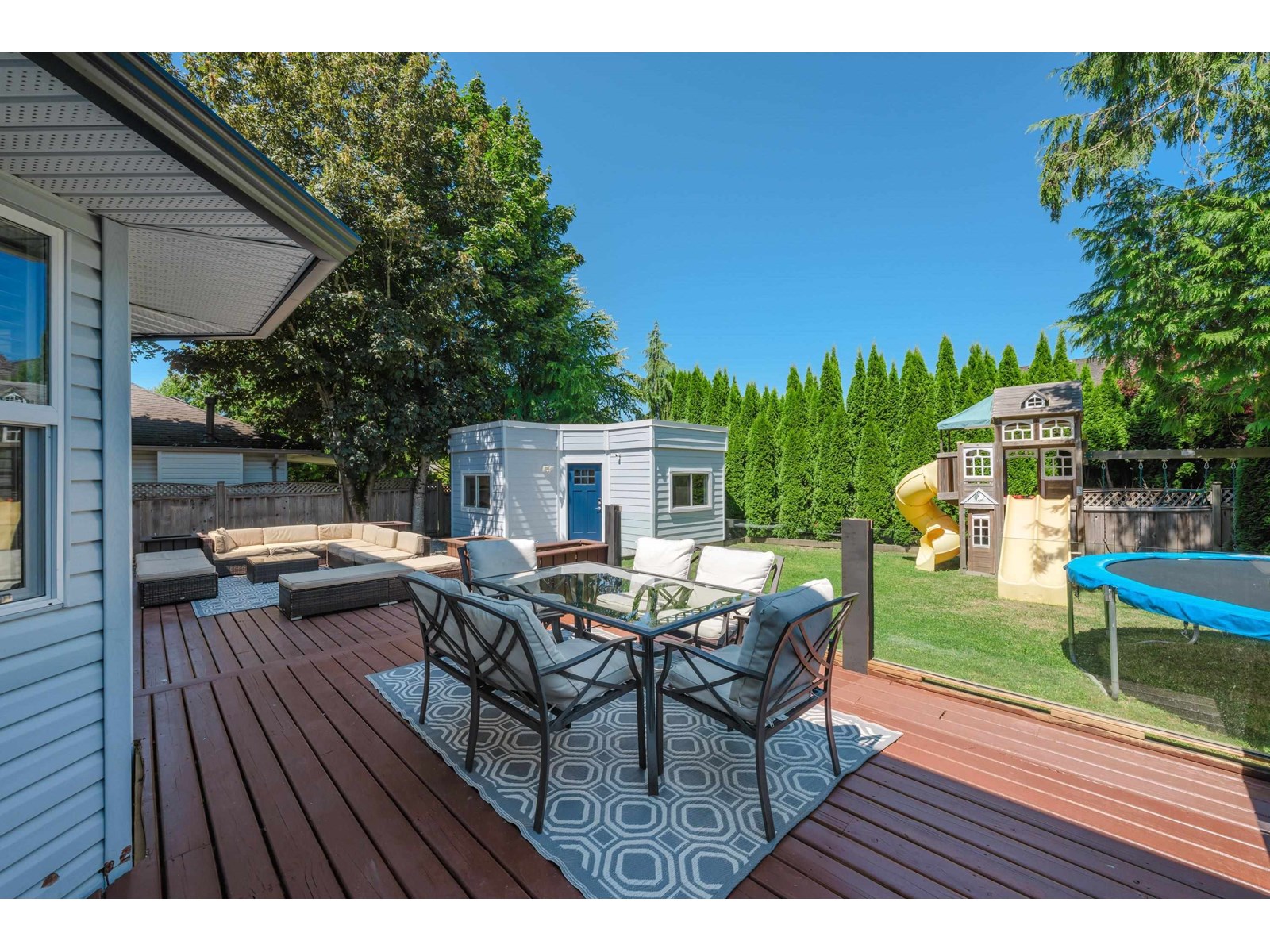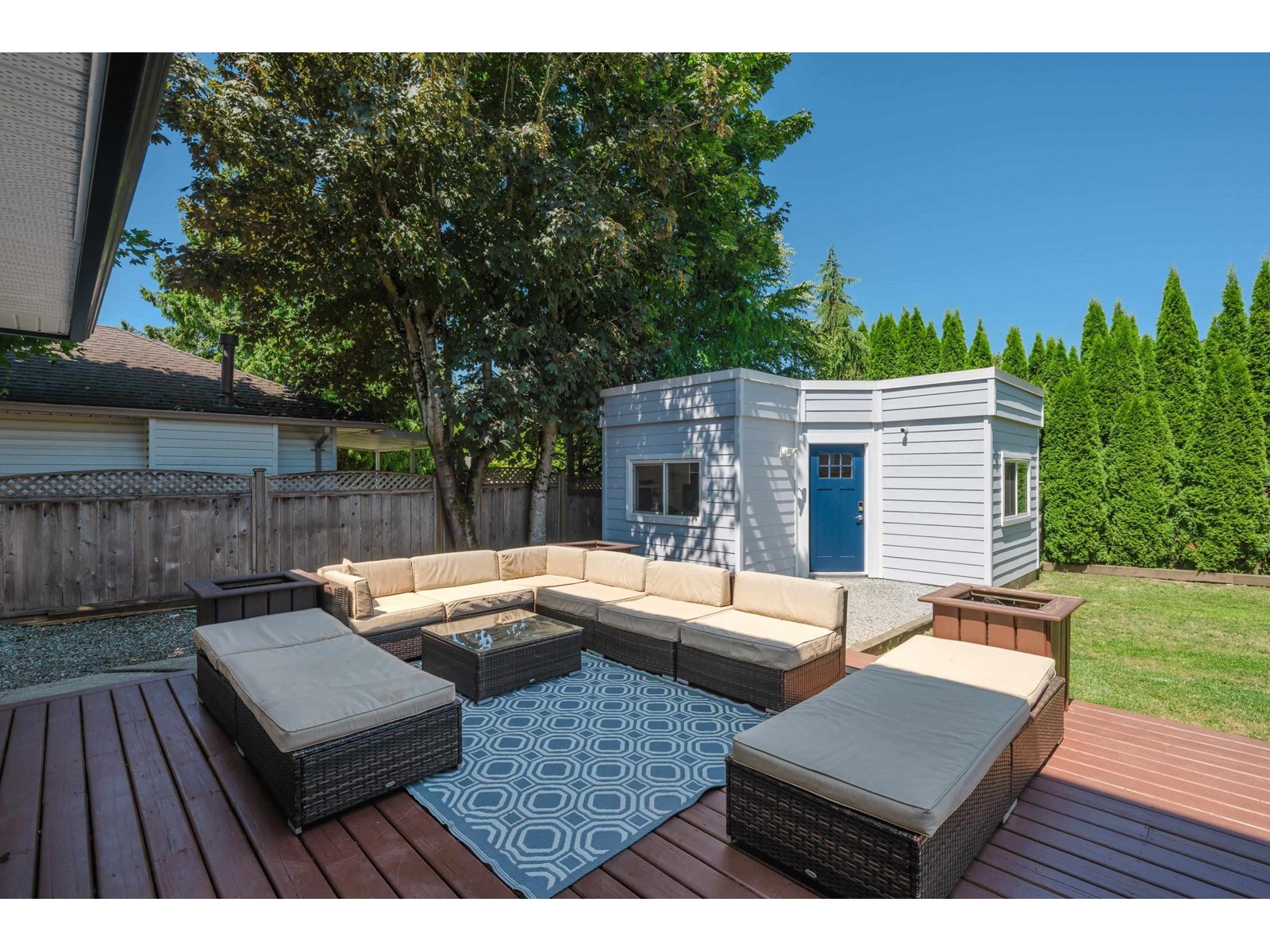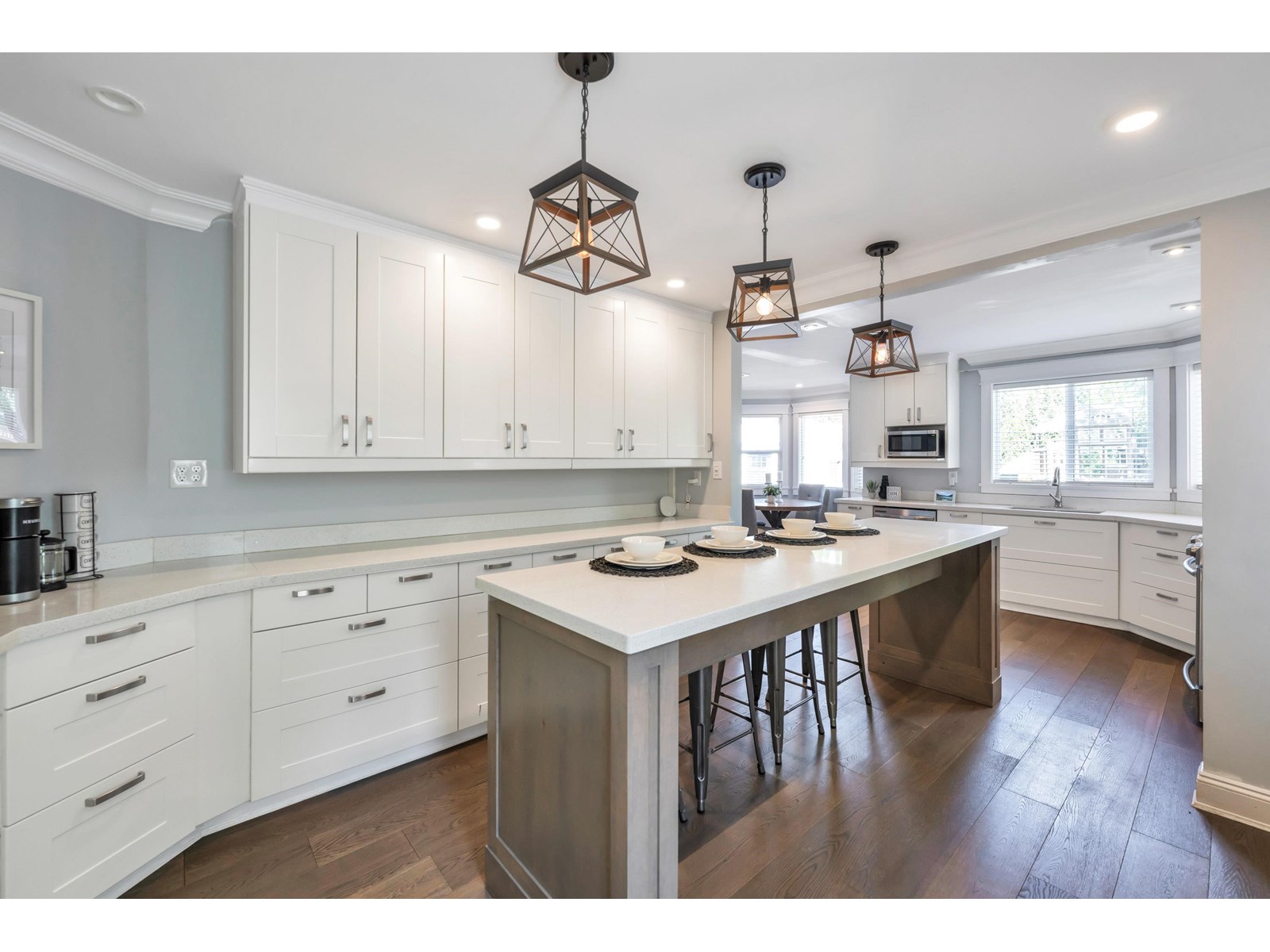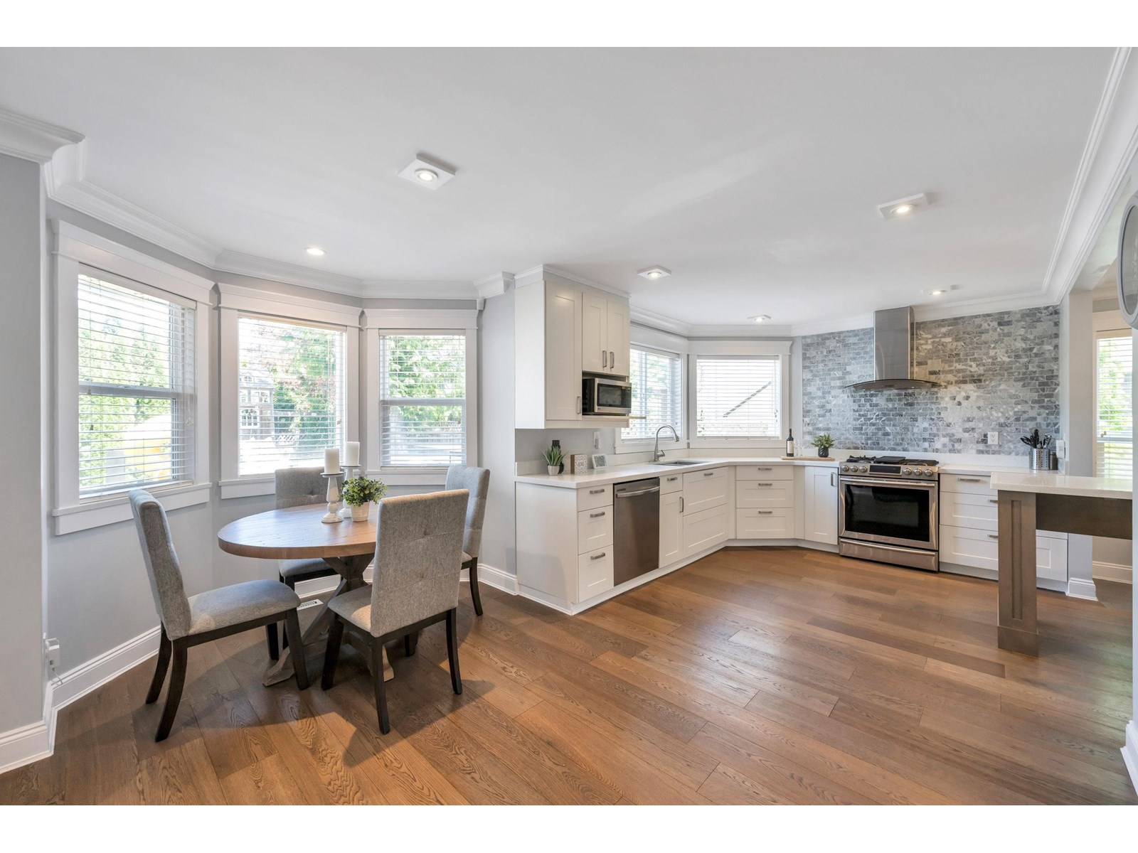 Beautiful 2-storey home on a quiet, tree-lined street in upper Murrayville. Main floor boasts wide plank hardwood flooring, crown moldings, a gorgeous renovated & expanded kitchen featuring extensive white shaker cabinetry, quartz counters, breakfast bar with pendant lighting, & stainless appliances incl double-wide fridge/freezer. Eating area w/ bay windows, and adjacent family room w/ glass doors leading to huge rear decks, private yard, and detached 230 sq ft rec room/flex space (ideal for teens or private office). Bdrm/flex rm, powder rm, and laundry. 3 spacious bedrooms up incl primary bdrm w/ sitting area and gorgeous ensuite. Bathrooms tastefully updated. Double garage, & RV parking! Great family neighbourhood close to parks, cafes, shops, schools, hospital, & WC Blair Rec Centre. (id:52823)