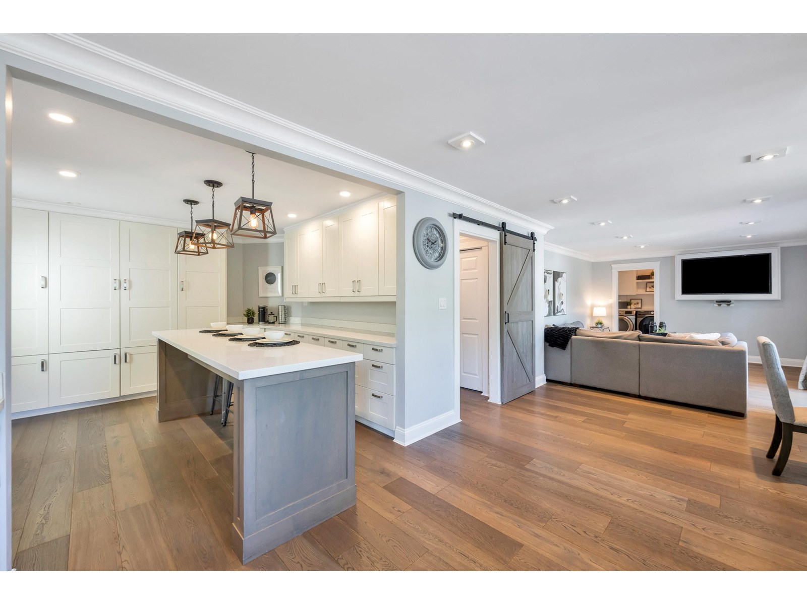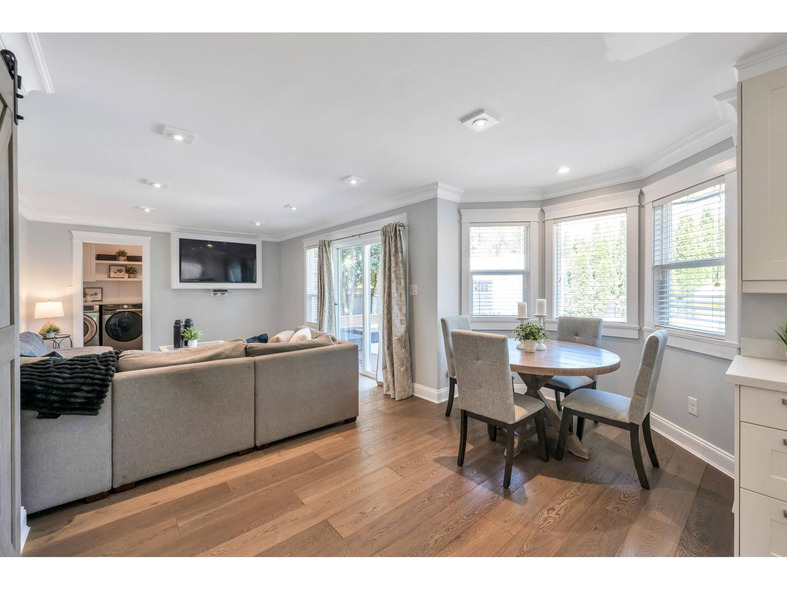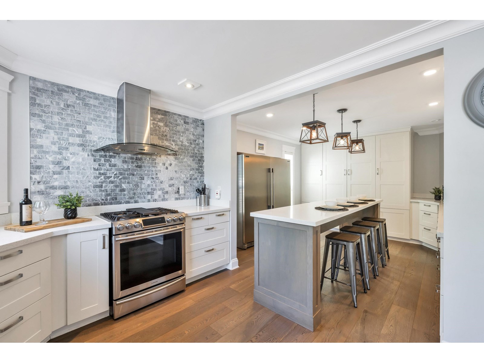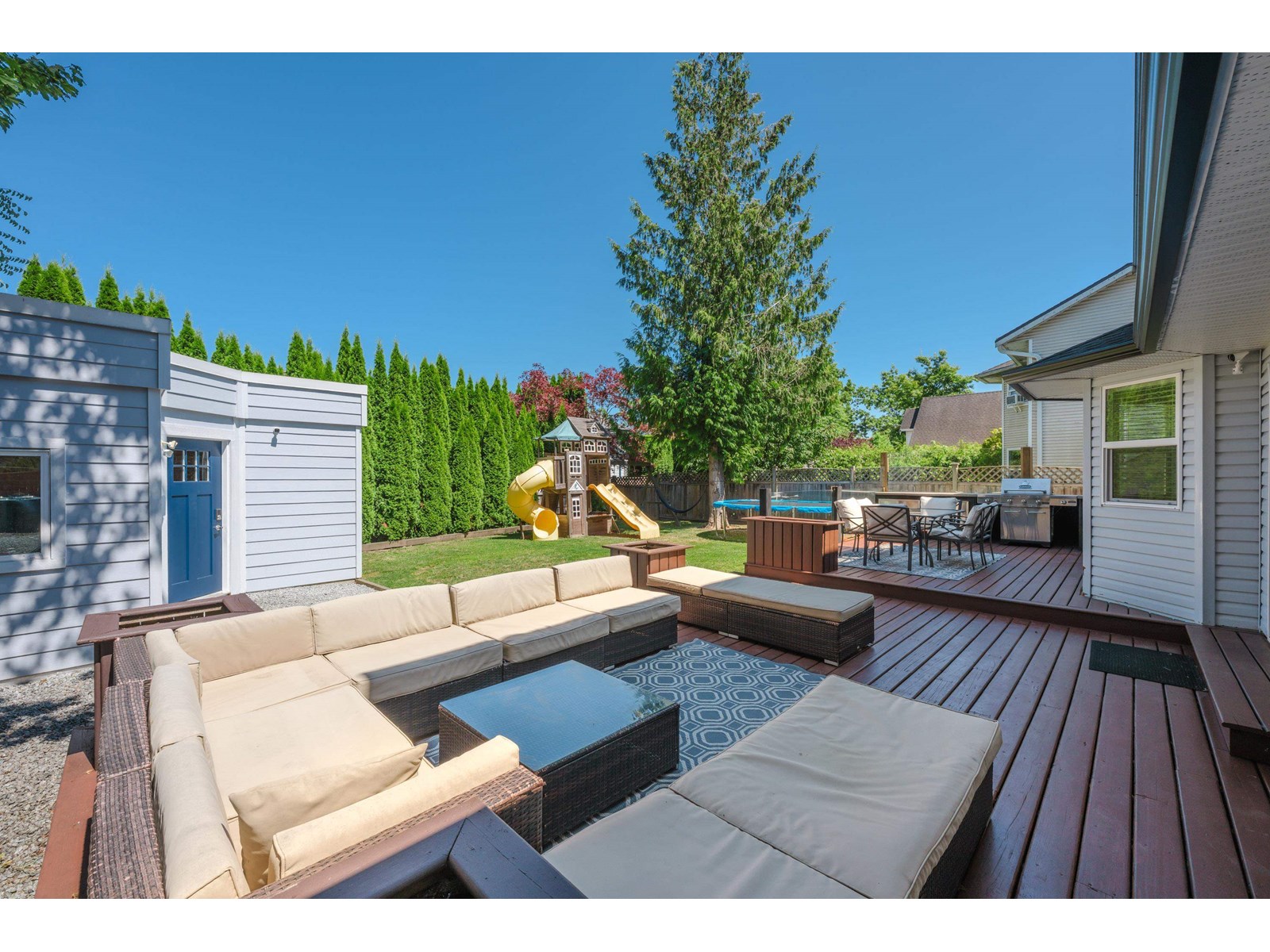 Beautiful 2-storey home on a quiet, tree-lined street in upper Murrayville. Main floor boasts wide plank hardwood flooring, crown moldings, a gorgeous renovated & expanded kitchen featuring extensive white shaker cabinetry, quartz counters, breakfast bar with pendant lighting, & stainless appliances incl double-wide fridge/freezer. Eating area w/ bay windows, and adjacent family room w/ glass doors leading to huge rear decks, private yard, and detached 230 sq ft rec room/flex space (ideal for teens or private office). Bdrm/flex rm, powder rm, and laundry. 3 spacious bedrooms up incl primary bdrm w/ sitting area and gorgeous ensuite. Bathrooms tastefully updated. Double garage, & RV parking! Great family neighbourhood close to parks, cafes, shops, schools, hospital, & WC Blair Rec Centre. (id:52823)
