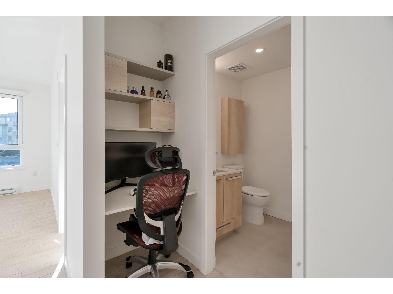 $461.95 MonthlyWelcome to Silva, a brand-new development in the heart of Newton, Surrey. This spacious 2-bedroom, 2-bath condo offers a bright open layout with stylish modern finishes. The sleek kitchen is a chef's delight with quartz countertops, gas stove, and stainless steel appliances, while the living area extends to a solarium-style balcony, ideal for year-round enjoyment. The primary bedroom boasts a walk-in closet and spa-inspired double-sink ensuite, plus a bonus mini-office that can double as storage. Wide-plank flooring, in-suite laundry, and ample closets add everyday convenience. Residents enjoy top-tier amenities including a fitness centre, co-working space, landscaped courtyard, children's play area, and social lounges. Gas and hot water are included in the strata fees. Complete with 2 secure parking stalls and a storage locker, this move-in-ready home combines modern living with an unbeatable location. (id:52823)
