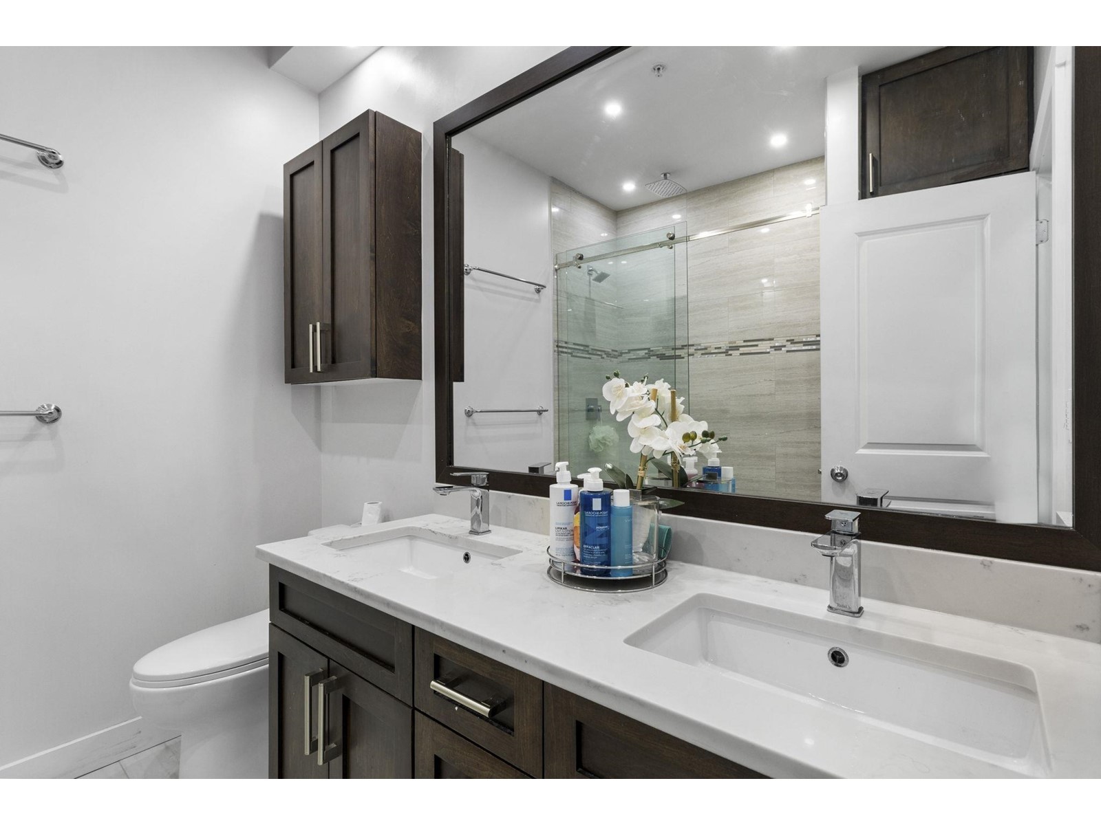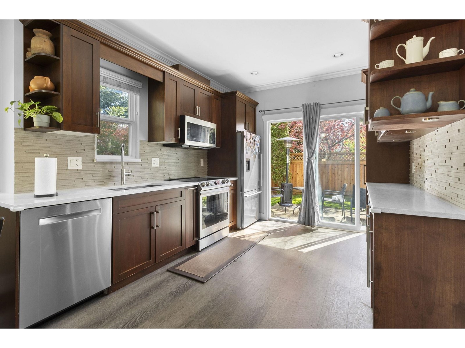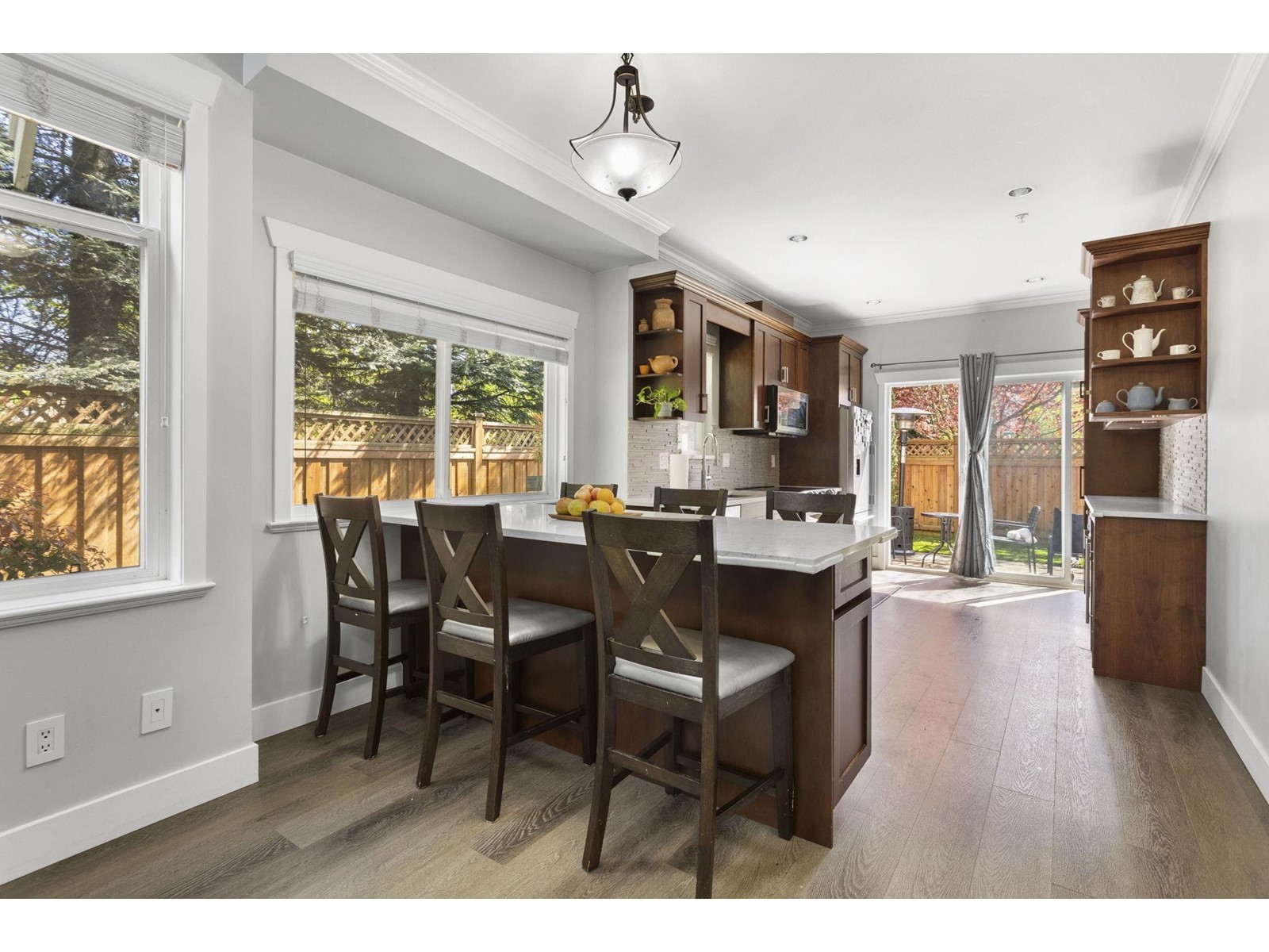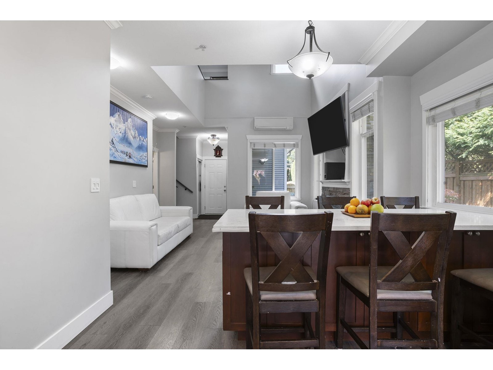 $408.93 MonthlyExperience refined living in this renovated 4-bedroom, 2.5-bathroom duplex-style townhouse offering 1,672 sq ft in the heart of Willoughby. This corner unit features an open-concept design with vaulted ceilings, crown molding, and vinyl plank flooring. Enjoy a fully fenced yard with elegant landscaping and artificial turf - perfect for pets and summer entertaining. The gourmet kitchen boasts a built-in island, Caesarstone countertops, and newer appliances. The primary suite offers a luxurious ensuite with dual sinks and a rain shower. Located near parks, schools, shopping, and with low strata fees, this home combines luxury, comfort, and convenience. (id:52823)