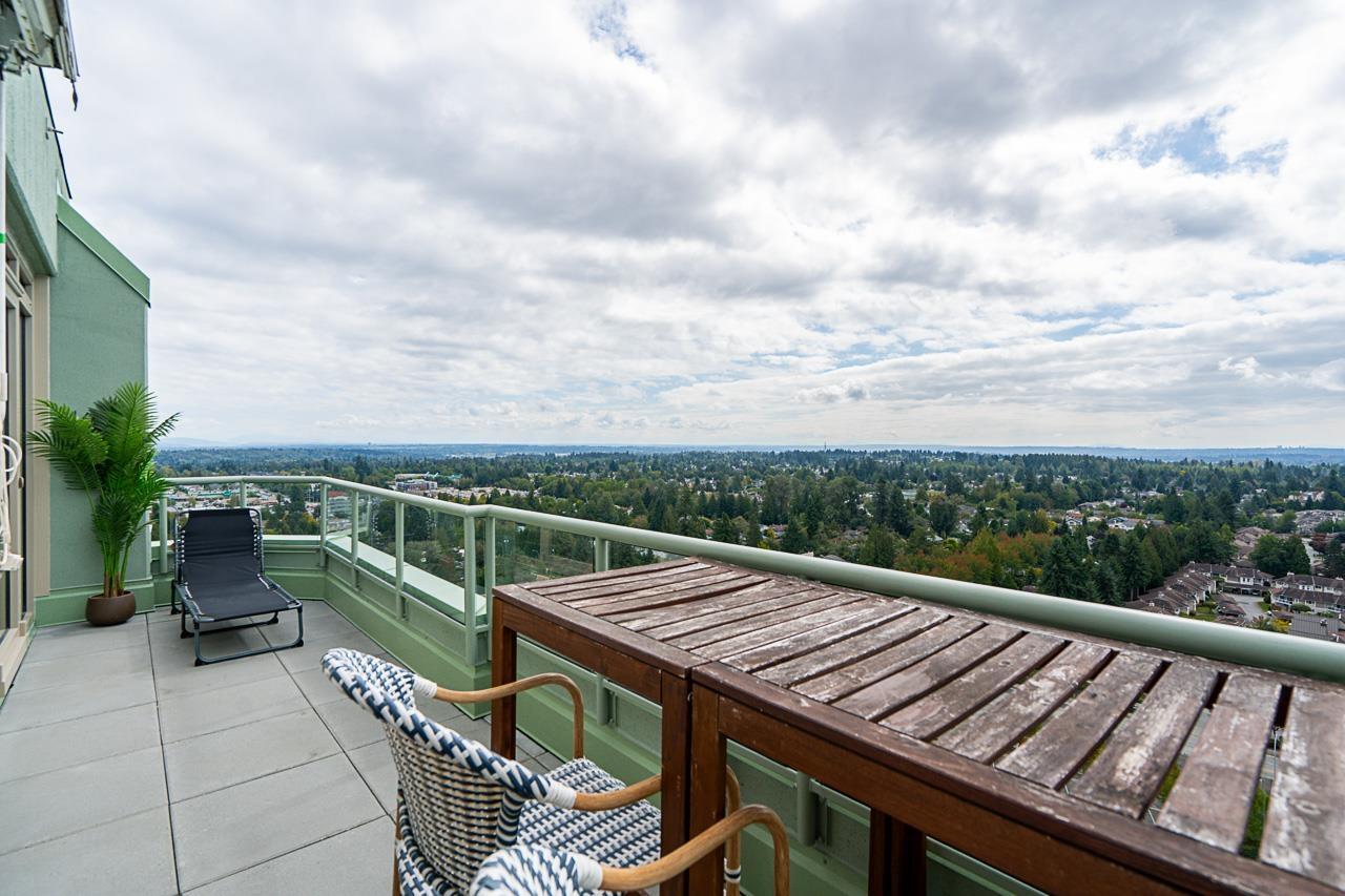 $1,386 MonthlySpectacular 1,733 sq ft penthouse at The Stanley with 3 bedrooms plus den, 2 bathrooms, and 2 parking. Enjoy breathtaking 180° views of Mount Baker, Golden Ears, and the city from massive windows and over 400 sq ft of patio space accessible from multiple rooms. Bright open layout with 9 ft ceilings, luxury vinyl plank flooring, granite counters, crown mouldings, gas fireplace, and updated appliances. Strata has recently replaced windows & patio doors/screens; patio membranes, patio stones, and ext painting; plus both elevators, with all special levies paid and $2m in the CRF. Resort-style amenities include 2 outdoor pools, hot tub, sauna, fitness centre, tennis courts. Centrally located near Guildford Town Centre, Surrey Central, Superstore, transit routes, and steps to Green Timbers Park. (id:52823)