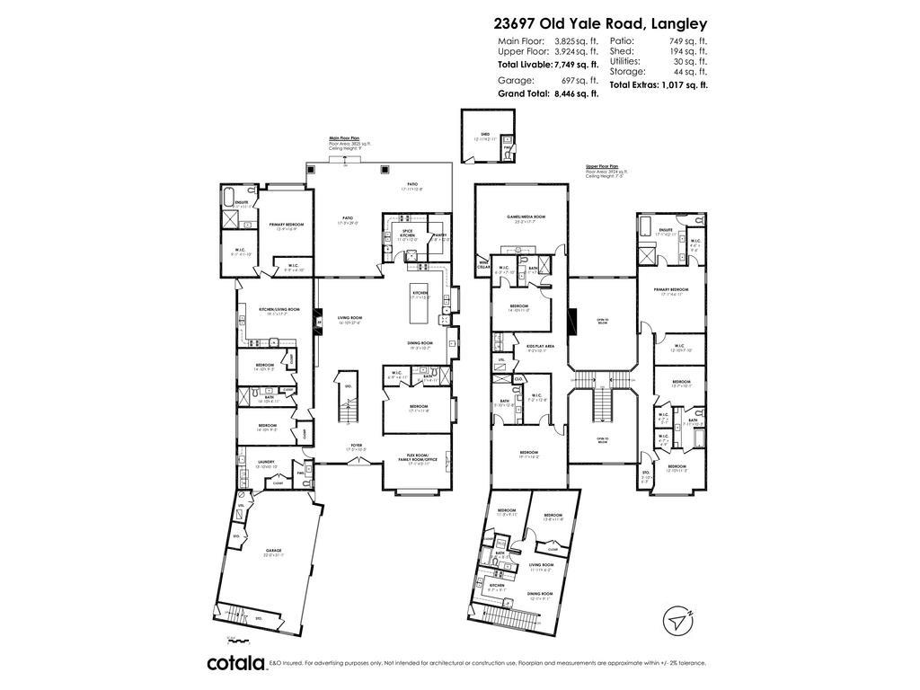 PRICED TO SELL! Priced $989,000 below assessed value! Exceptional custom 7749 sqft 2 storey offers a perfect blend of luxury & versatility. Ideal for multi-generational living or income-generation with a 2-bedroom suite above the garage (with own meter) & a spacious 3 bedrm, 2 bathrm side suite. The main home boasts 6 large bedrooms all with walk-in closets & ensuites - one on the main. Grand living & dining area with soaring ceilings, seamlessly connected to a huge gourmet kitchen with breakfast bar island, separate spice kitchen & large walk-in pantry. Flex/family/office room. Upstairs - games/media room with a bar & wine cellar, kids play area & 5 bedrooms. Large covered patio with gas & plumbing, perfect for year-round entertaining. 4 zone Kef speaker Sonos system, camera system, Generac generator, A/C, shed with bathroom & so much more. 16,509 sqft property on city sewer. Loads of parking - room for your tuck, massive RV & all your toys. One-of-a-kind property that offers endless possibilities. A MUST SEE (id:52823)