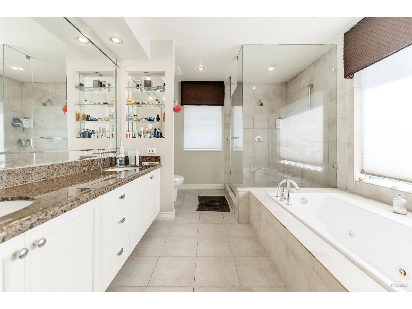 Prime location in Sherbrooke Estates-one of South Surrey's most desirable neighborhoods! This spacious 4 bed, 3 bath home sits on a large lot and offers 2,595 sq ft of functional living. The main floor features a bright, open layout with high ceilings, formal dining, cozy family room with electric fireplace, plus a versatile living room/office and a full bath with guest bedroom. Updated kitchen with quartz counters, island, new fridge, and newer gas stove. Upstairs includes 3 generous bedrooms, including a luxurious primary suite with jetted tub, heated floors, and granite counters. Bosch on-demand hot water, new paint, roof (2015). Walk to Elgin Park Secondary & Semiahmoo Trail Elementary. (id:52823)
