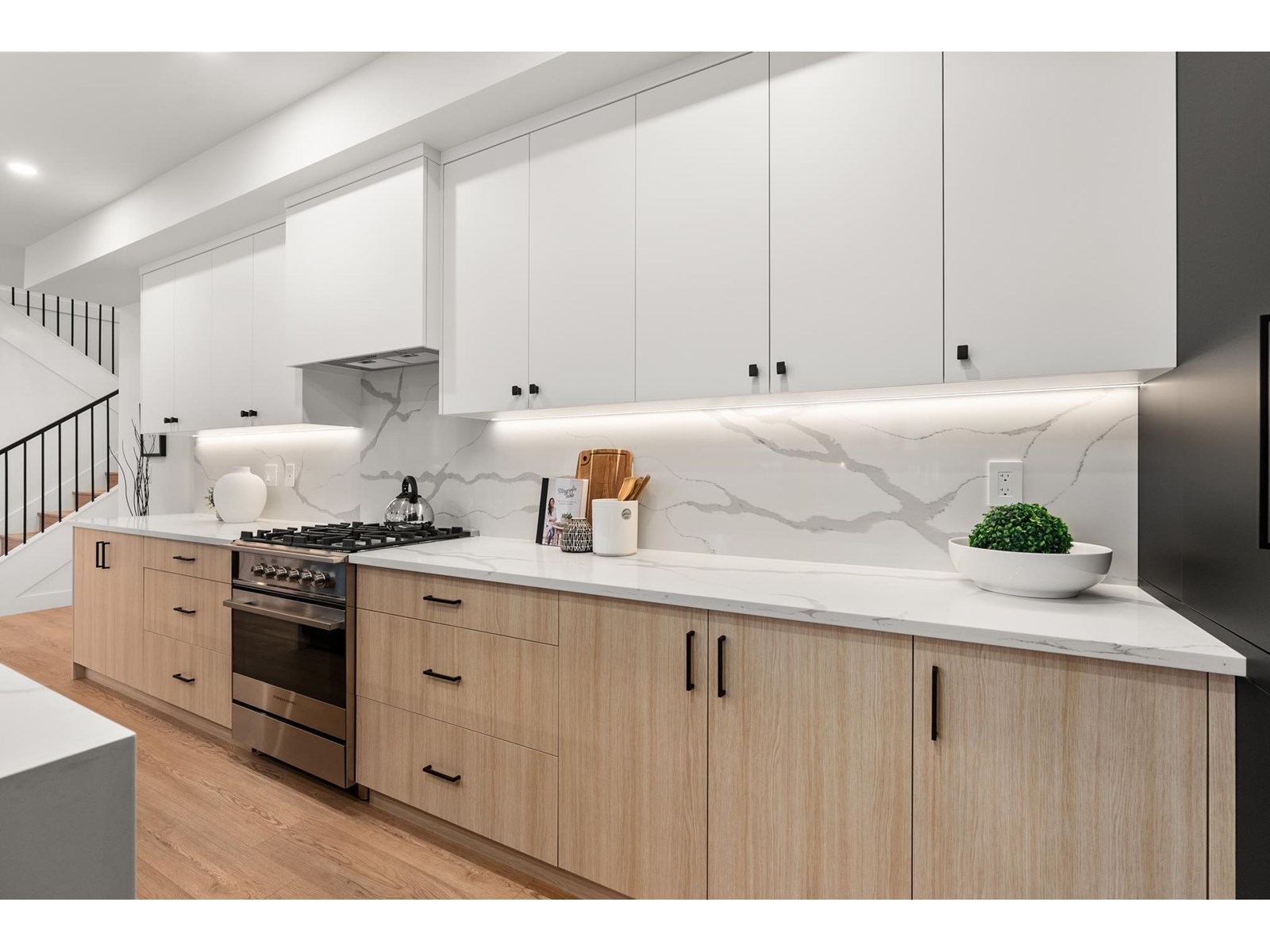 $153.64 MonthlyA move-in ready 3 bed END-unit townhouse (south-facing) with all of the bells and whistles of a detached home! Fenced yard, dbl garage, low strata fees. Onyx & Ivory: Set in a prestigious neighbourhood of Fleetwood, surrounded by greenery. High-end finishes incl: European appliances, gas stove, large island w/ waterfall, quartz counters/backsplash, LED pot lights, designer light fixtures & e-poxy in garage. Open kitchen/living/dining & powder room + balcony on 2nd level. Wide-plank oak laminate throughout, forced air heating, hot water on demand + central A/C & millwork incl. Est. This home is an F4 plan in the Ivory (light) colour scheme. Photos are of A2 plan (Show Home). Under the GST threshold for FTHB. Ask our Sales Team to show OPEN DAILY 12-5PM (except Fridays) #7 - 16358 90TH AVE. (id:52823)