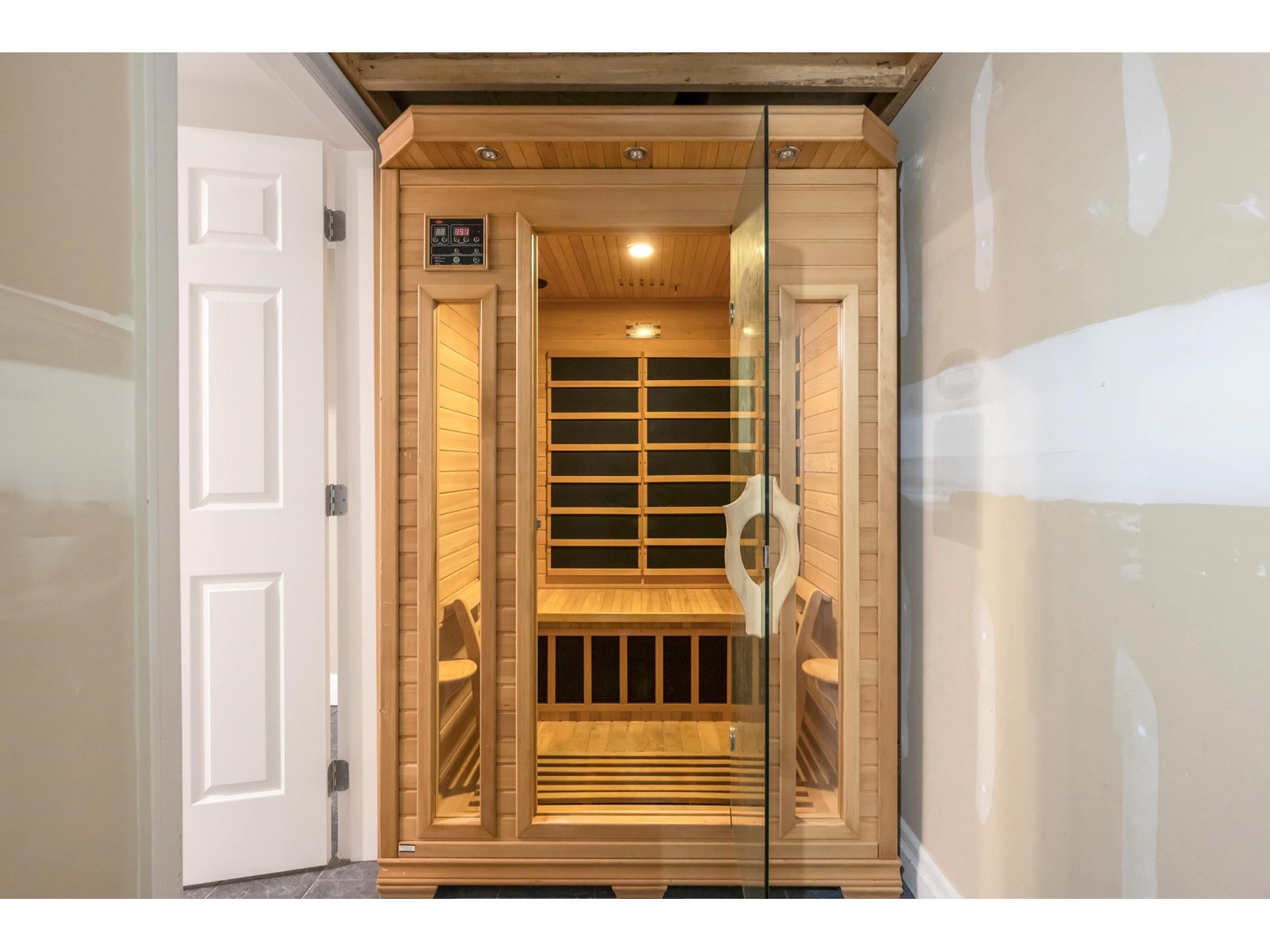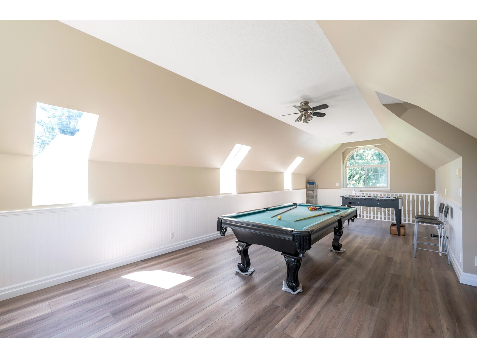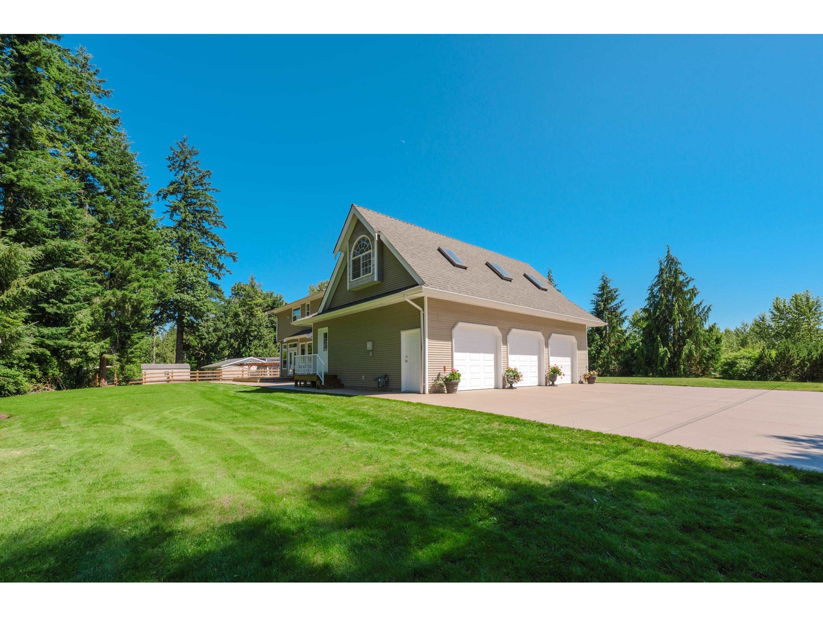 Front veranda welcomes you to this Gorgeous Custom-built 4382 sqft 2-storey with fully finished basement (roughed in for a suite or wet bar) on a Private parklike acre backing onto greenbelt. Quiet street. Oversized 810 sqft triple garage, loads of parking. New in 2025 - high-efficiency furnace, central air conditioning, hot water on demand, flooring & fresh paint. Custom maple kitchen with island & pantry open to bay window eating area & family room with gas fireplace & french doors to large patio & yard. Cross hall living & dining room/office. Upstairs - primary bedroom w/walk-in closet & soaker tub & separate shower ensuite. 2nd oversized bedroom (easy 3rd bedroom). Huge games room over the garage with separate entrance (easy nannies quarters). Daylight basement with separate entrance (easy suite), large rec room, 2 bedrooms & a sauna. Quick access to Hwy 1. Room for everyone! A perfect blend of comfort & location - a must see! (id:52823)