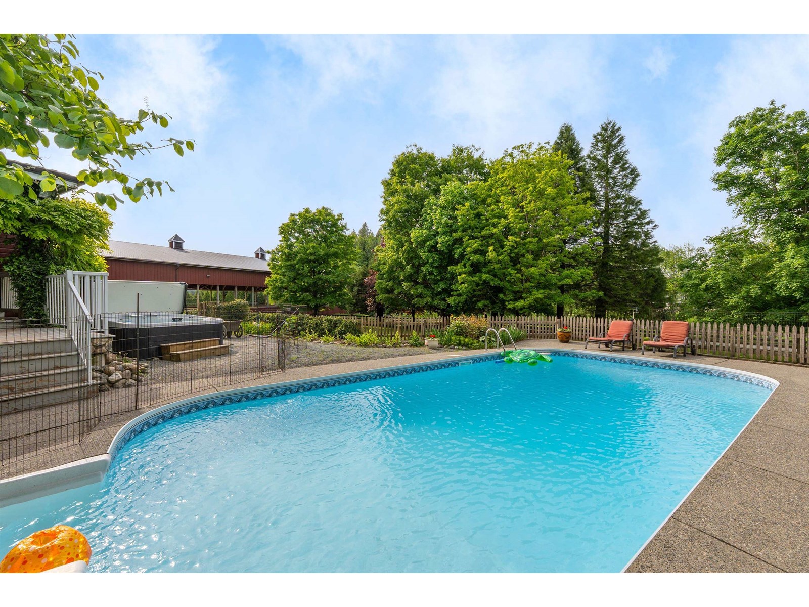 Cobblestone Farm - a premier equestrian property in Glen Valley, just 10 min from Thunderbird Show Park. Spanning 8.3 acres, it features a pristine hunter/jumper facility w/ a renovated country house, a Gambrel-style barn for 15 horses & extensive turnout. A charming brook crossed by multiple bridges that enhances the serene landscape. The fully renovated home offers a unique layout w/ covered verandahs, grand foyer, spacious living areas & a luxurious master suite. High-end appliances, outdoor pool, & a hidden loft to add to its charm. The barn includes oversized stalls, heated facilities, & a legal loft apartment. Add'l amenities include a 5-horse exerciser, covered indoor arena, oversized outdoor ring, & shelters/paddocks. Thoughtfully designed for horse welfare, an extremely rare find. (id:52823)