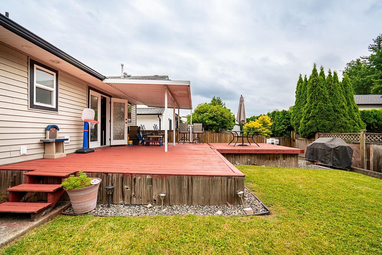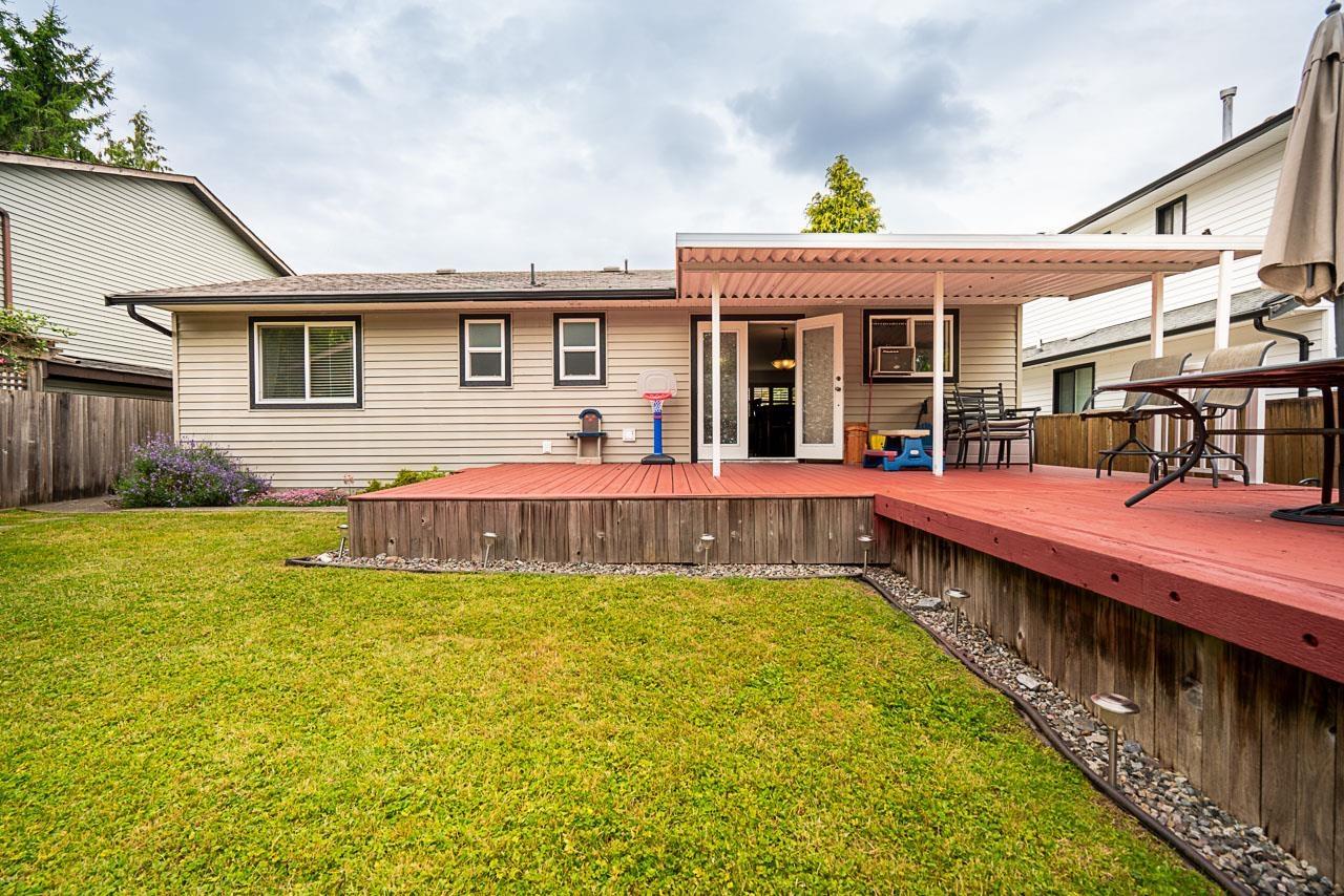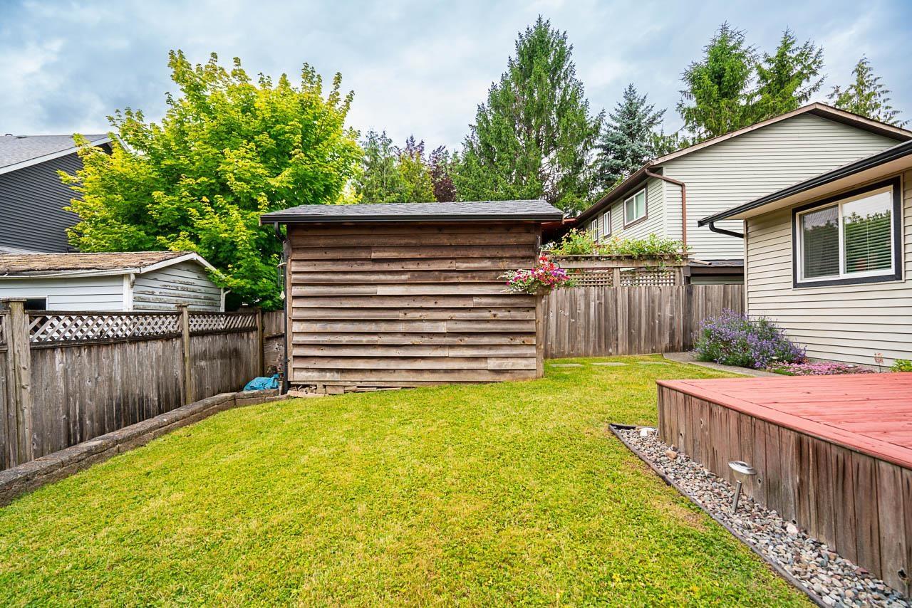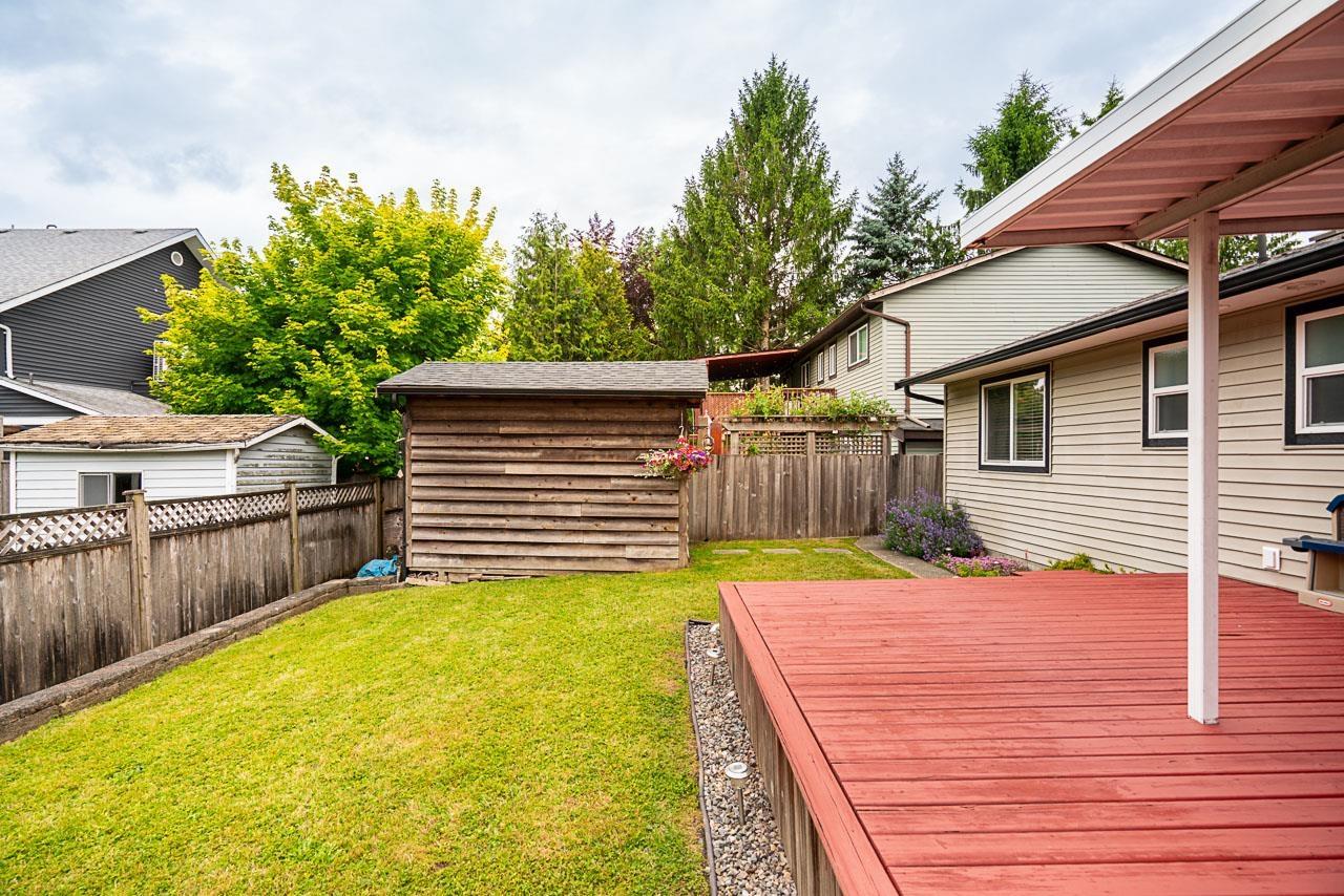 CUTE RANCHER with three bedrooms and an open plan ready to pass from one long-time owner to the next. The large eat-in kitchen has tons of storage, stone countertops, breakfast bar and space for your dining table. Double doors off the kitchen lead to 460 square feet of deck with partial cover and a fully fenced yard. Ready for summer BBQs and morning coffee. The cozy living room has a roughed-in gas fireplace that needs to be hooked up and finishing touches applied. The primary bedroom has a 2 piece ensuite and large closet with access to a full crawl space that offers over 1100 square feet of storage. The garage is 282 square feet and has space for a car as well as lots of storage. The driveway has space for your RV. Located next to a small park and greenspace! Call for a private showing. (id:52823)