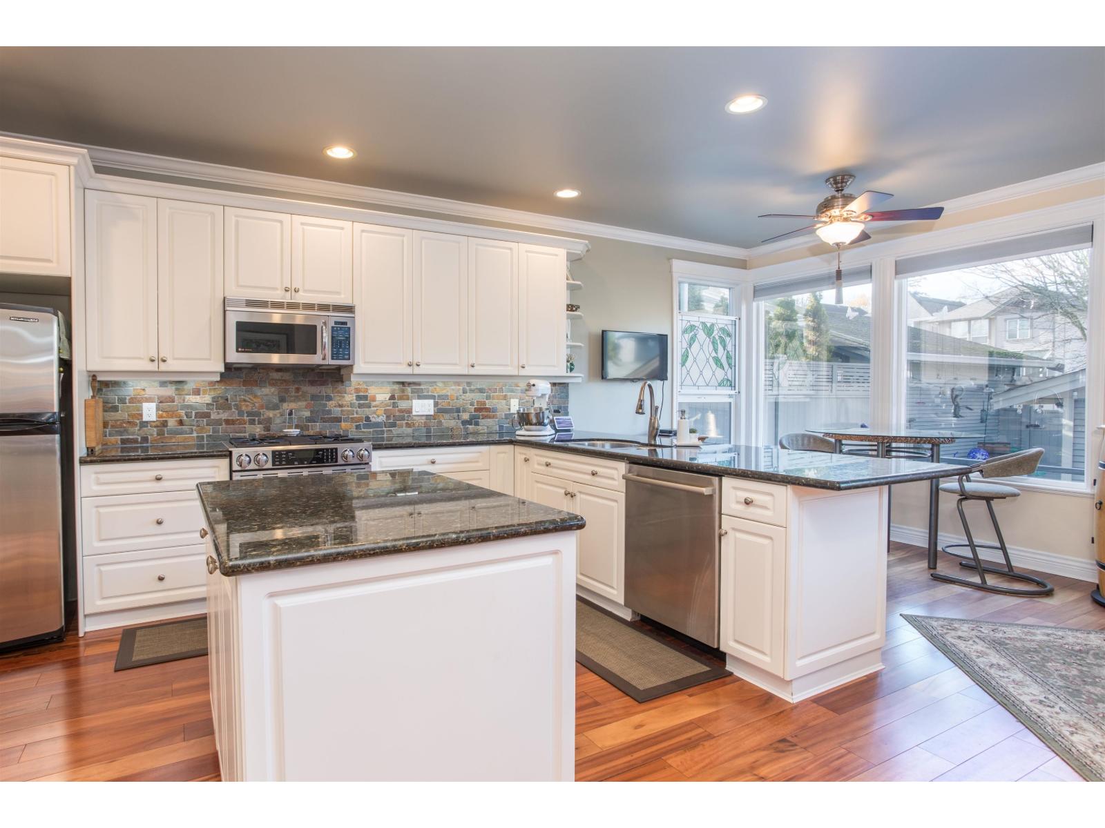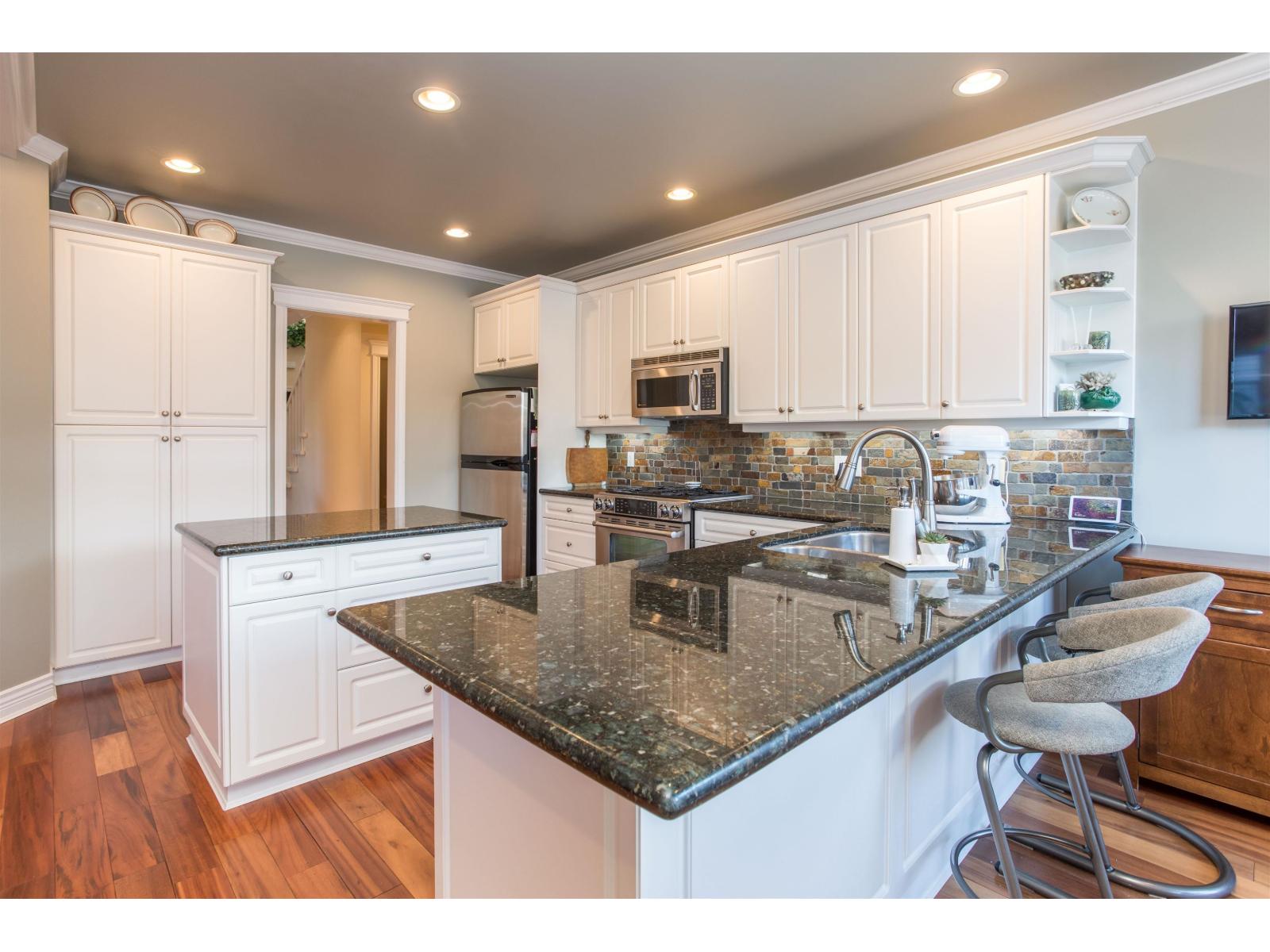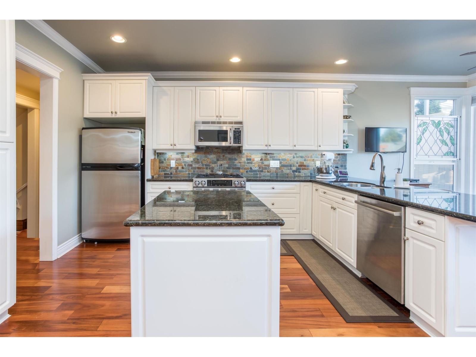 Craftsman Family home ready for you to move right in. Close to shopping, recreation, parks and easy access to hwy. 99. Bright home with efficient floor plan, impressive millwork, coffered ceiling and hardwood floors showcase the quality. Downstairs has its own entrance, recreation room, bedroom and full bathroom easy to suite. Perfect for Nanny, Granny or student returning home. West facing backyard has Trek deck leading to a double car garage with lane access. (id:52823)