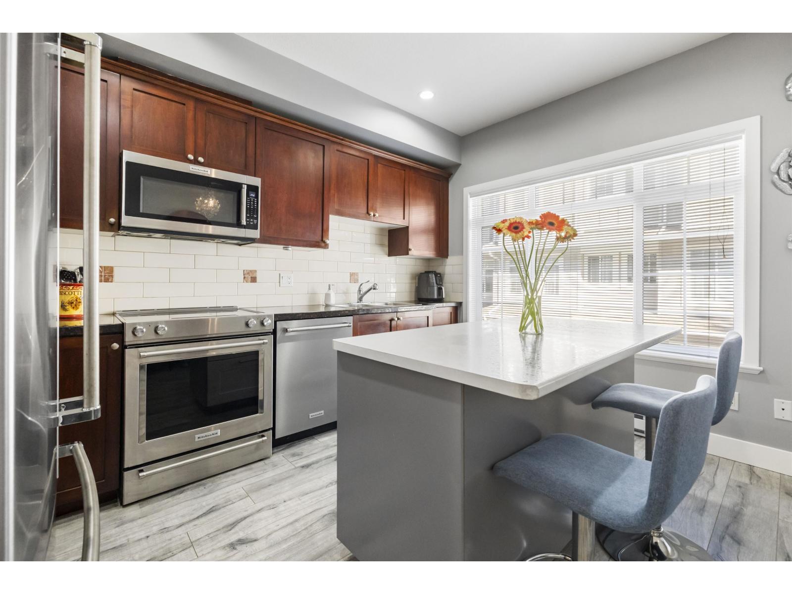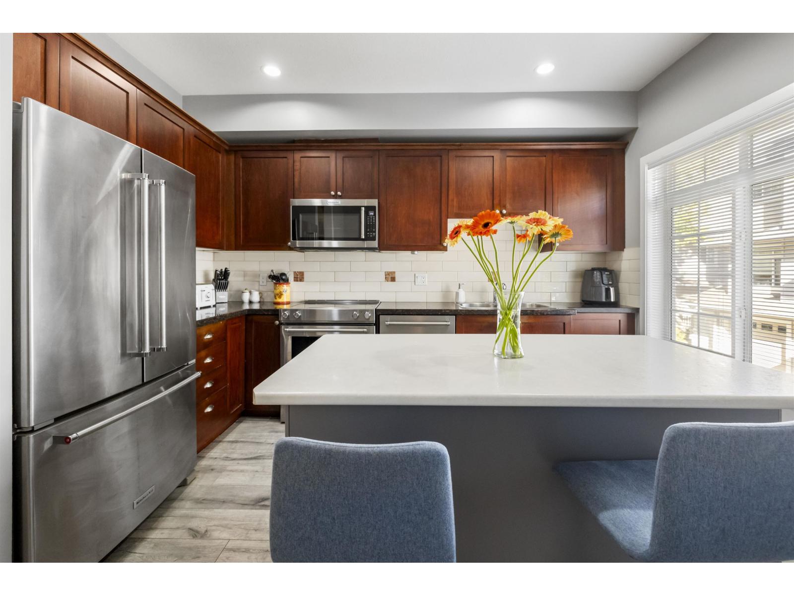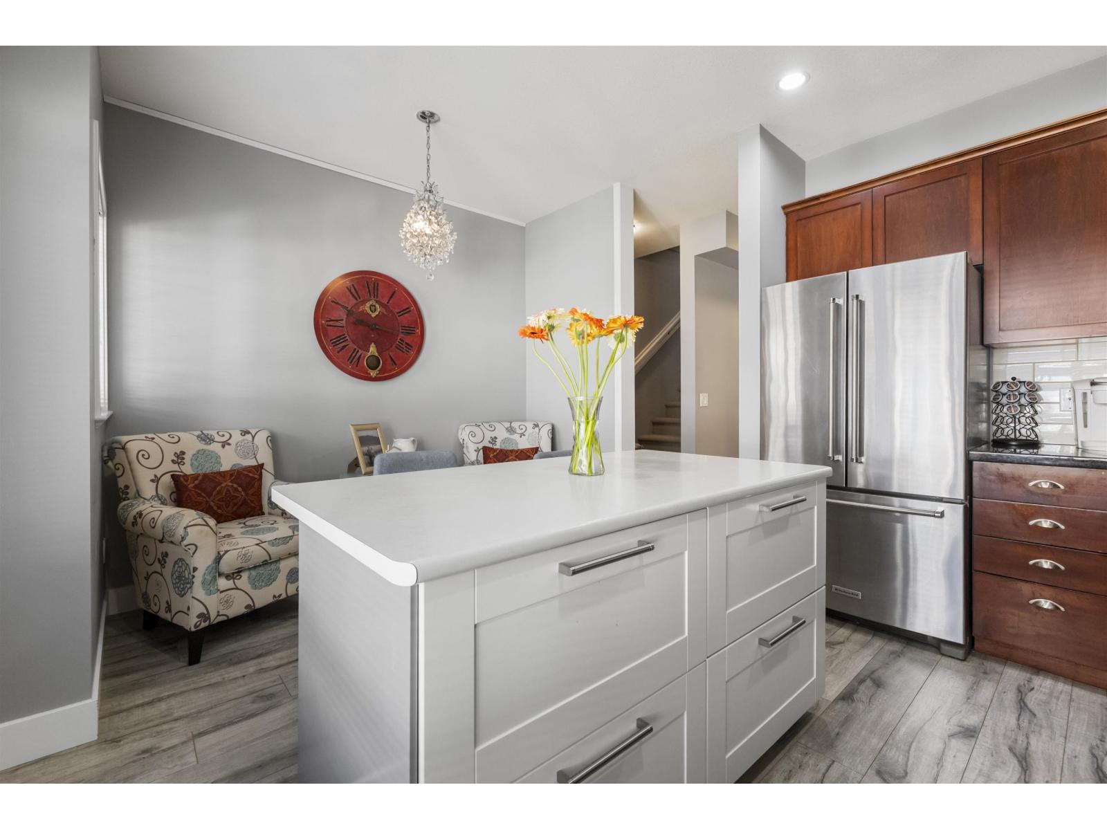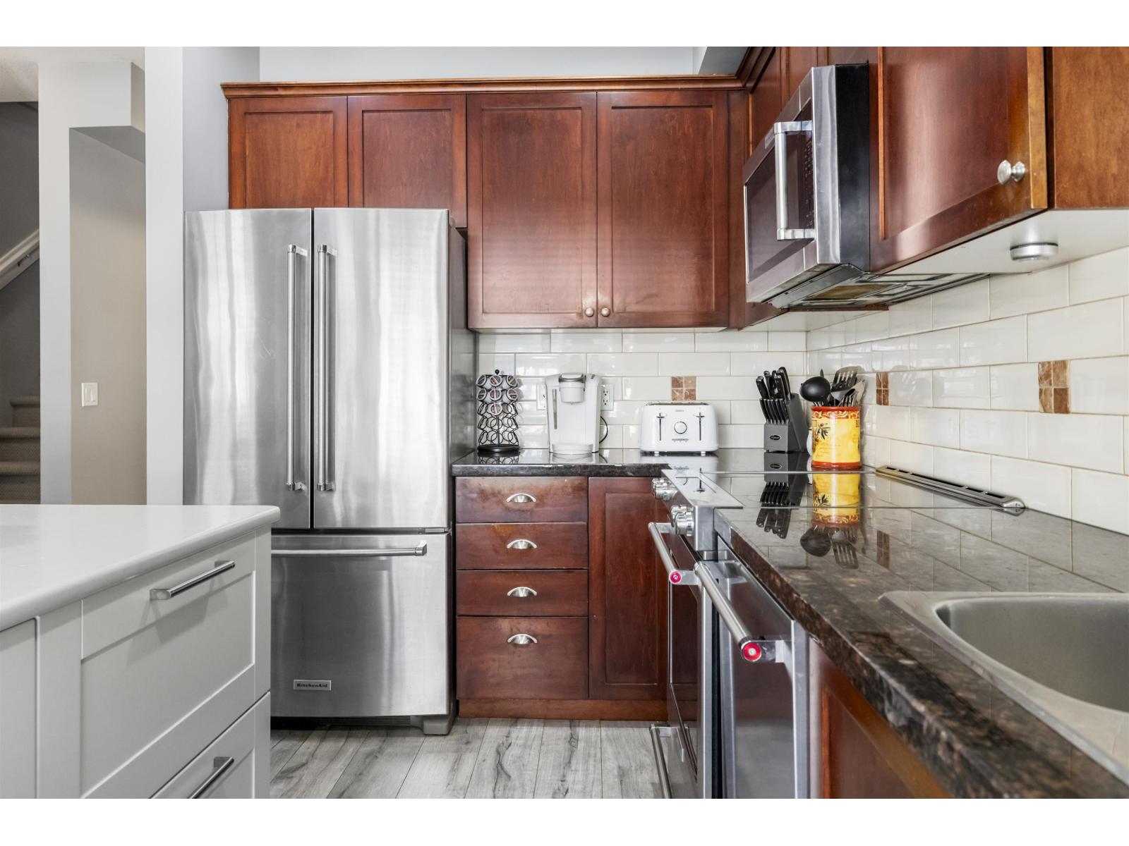 $312.73 MonthlyWelcome to INDIGO in the heart of Clayton! This well-kept 3 bedroom townhome backs onto the quiet courtyard and is located in the one of the best locations in complex. 9' ceilings, a maple kitchen with granite counters, island to entertain & stainless steel appliances. Bright living& dining areas open to a fenced backyard to watch the kids play or enjoy a glass of wine. Laminate floors & updated lighting on main. Upstairs offers 3 bedrooms including a primary with 3-piece ensuite and walk through closets. 2 car Tandem garage with extra storage. Amenities include gym & clubhouse with kitchen/lounge. Close to Katzie Elementary, shopping & recreation ! A great family oriented complex in the heart of it all! (id:52823)